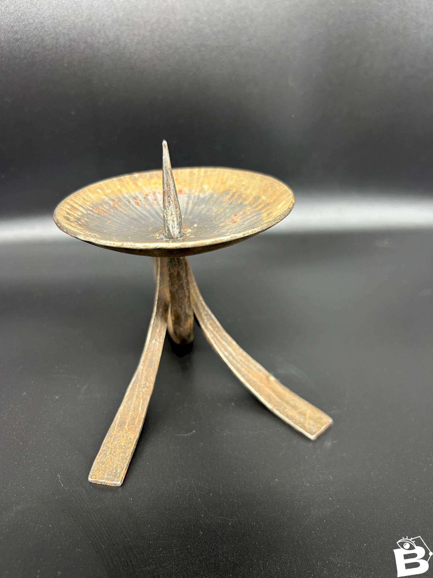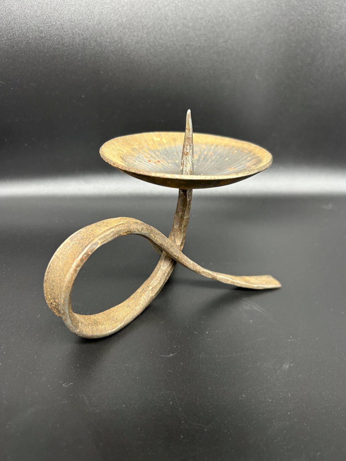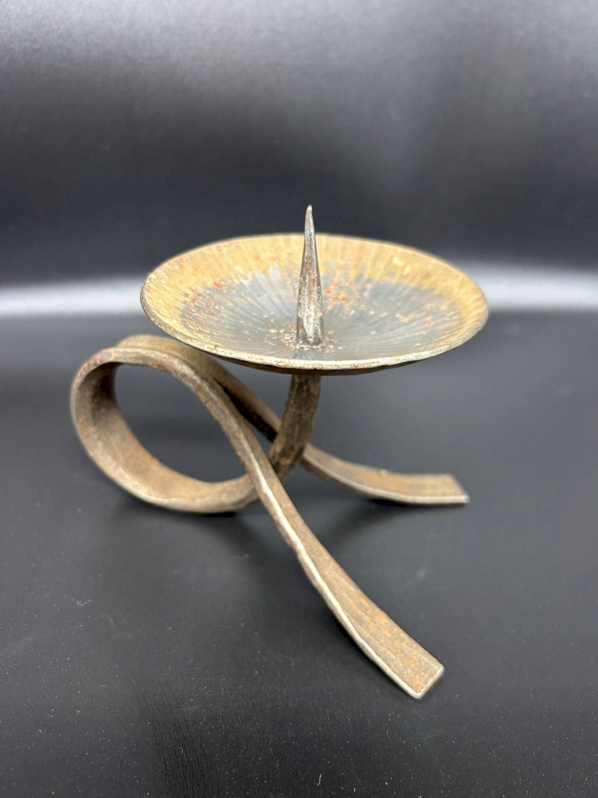 small vintage brutalist iron candle holder in good condition
