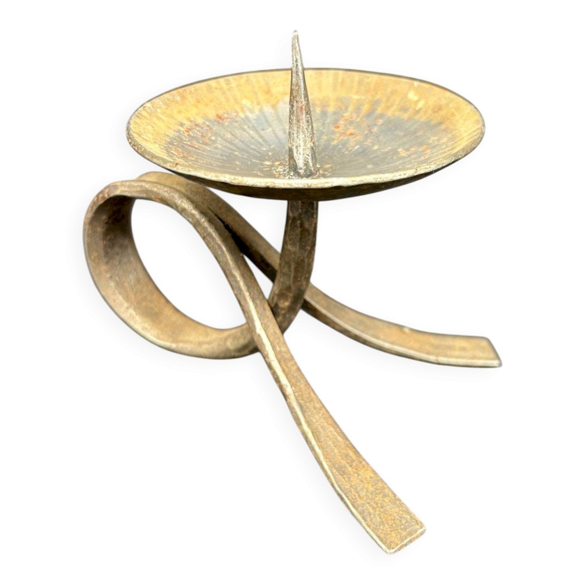 Candleholder Tripod Iron Forged Brutalist Design Vintage Folk Art