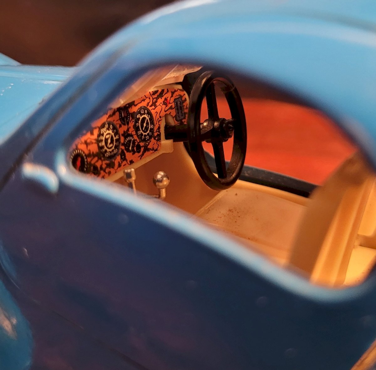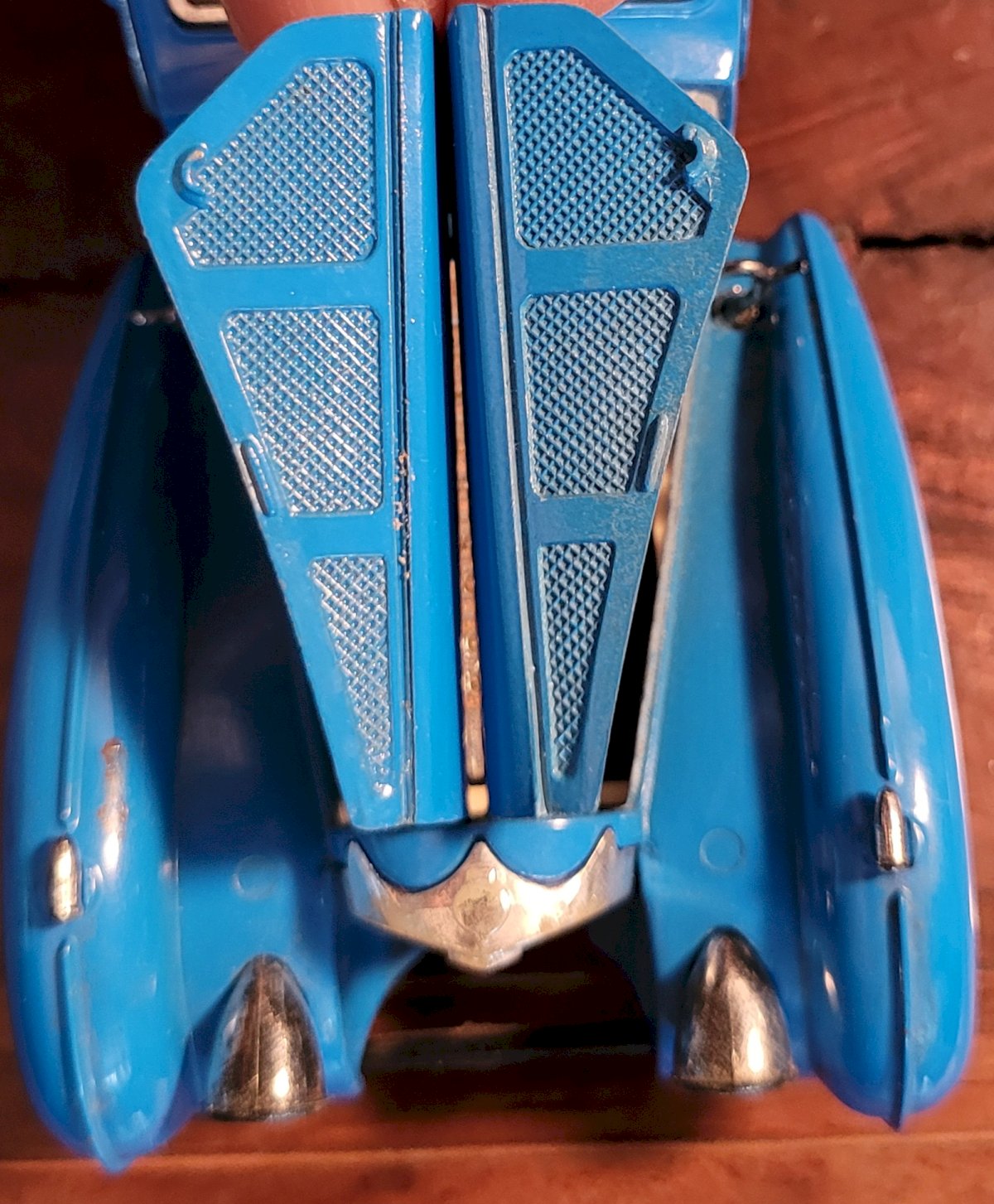 Details: Die-cast metal model. The hood and doors open, revealing a detailed interior and engine.