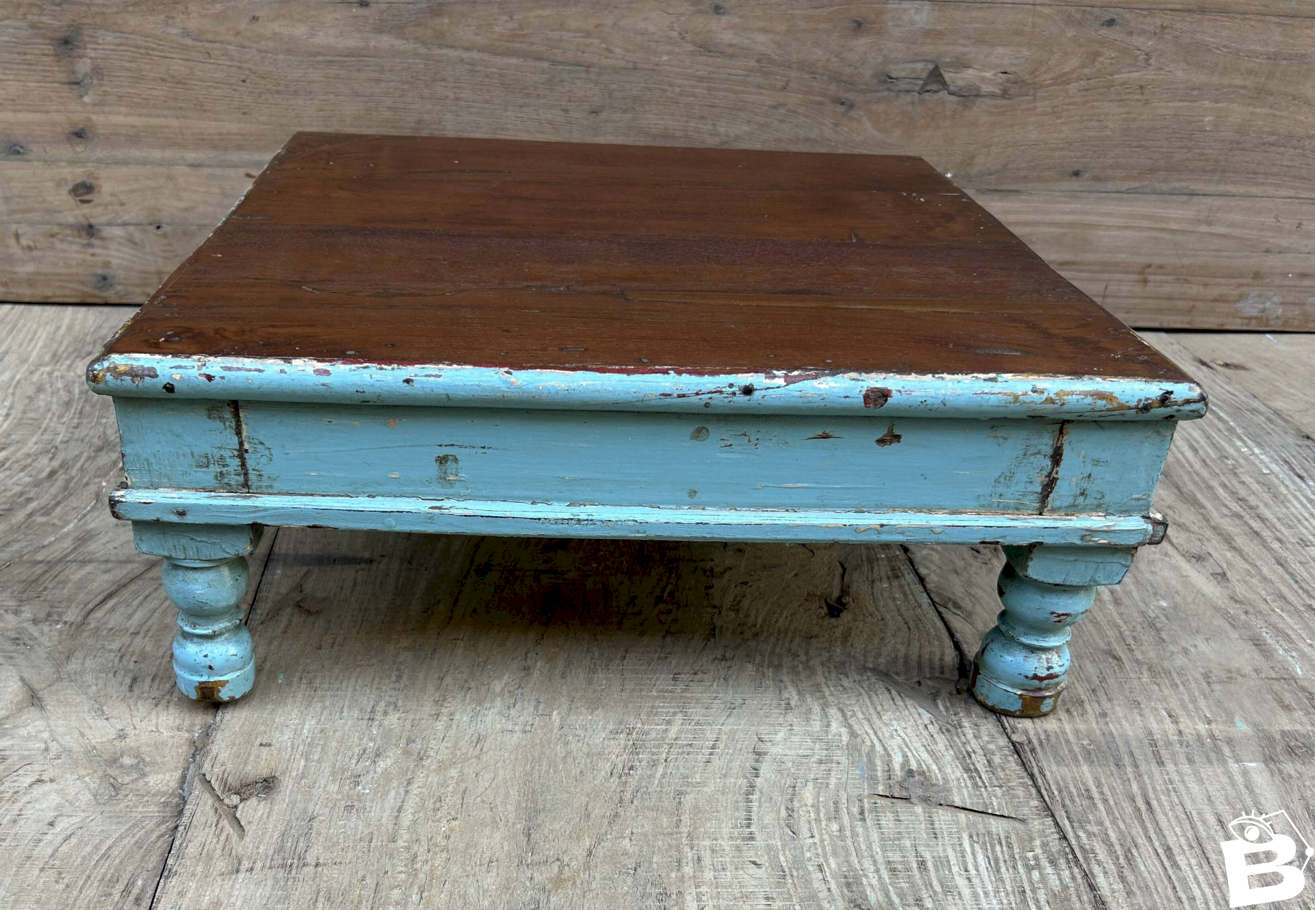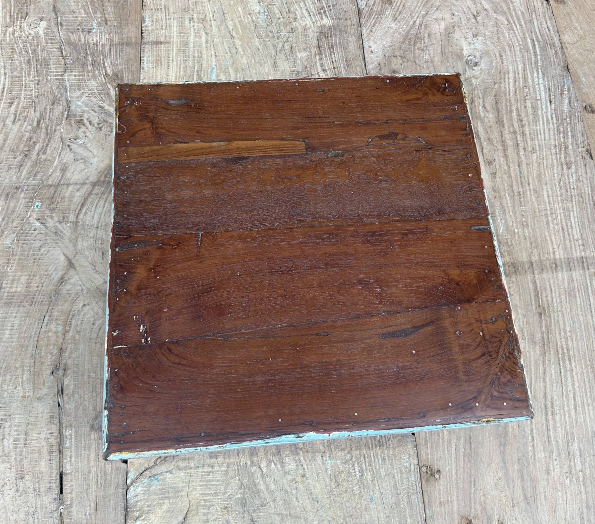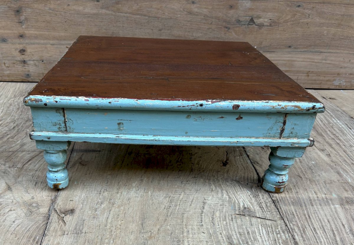 Burmese teak tea table with original turquoise patina / 45 x 45 x 18 cm - 5 kg