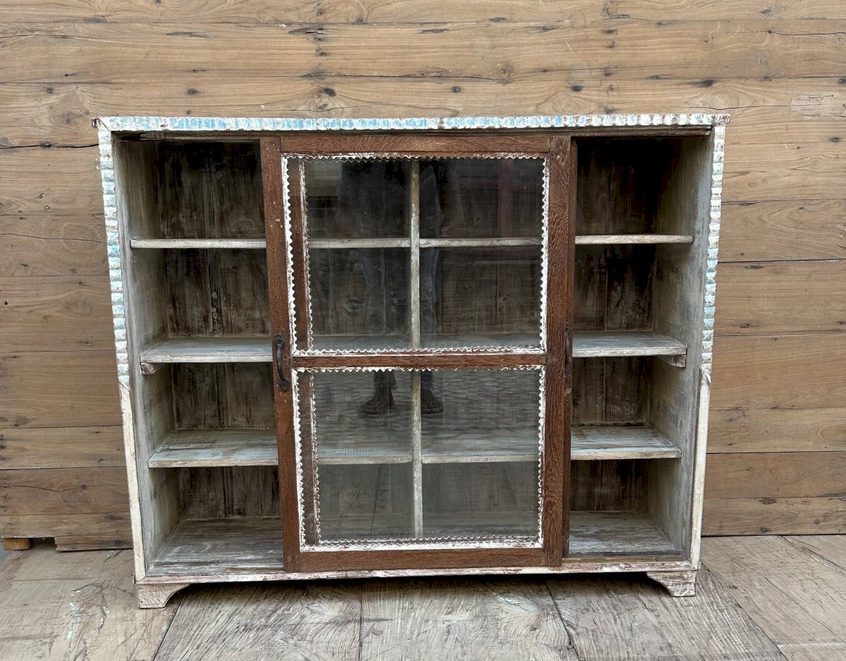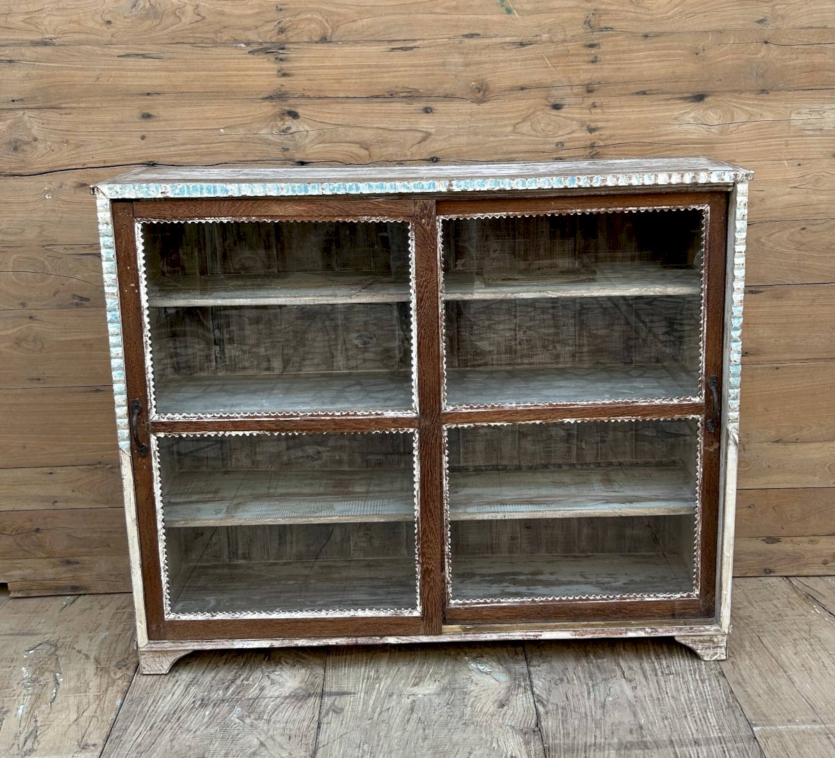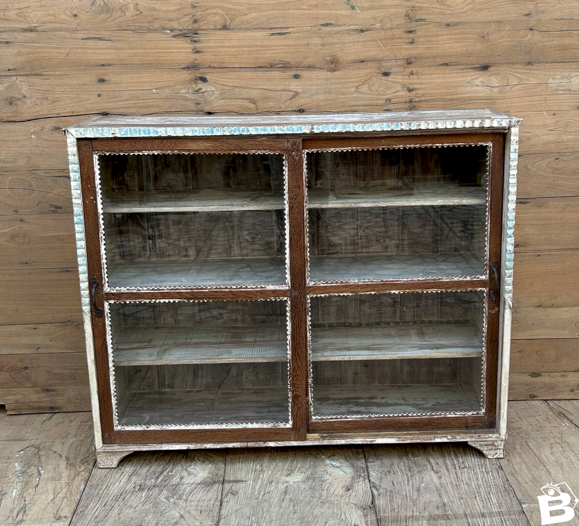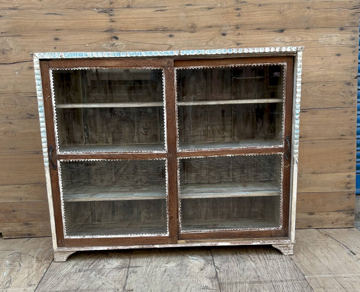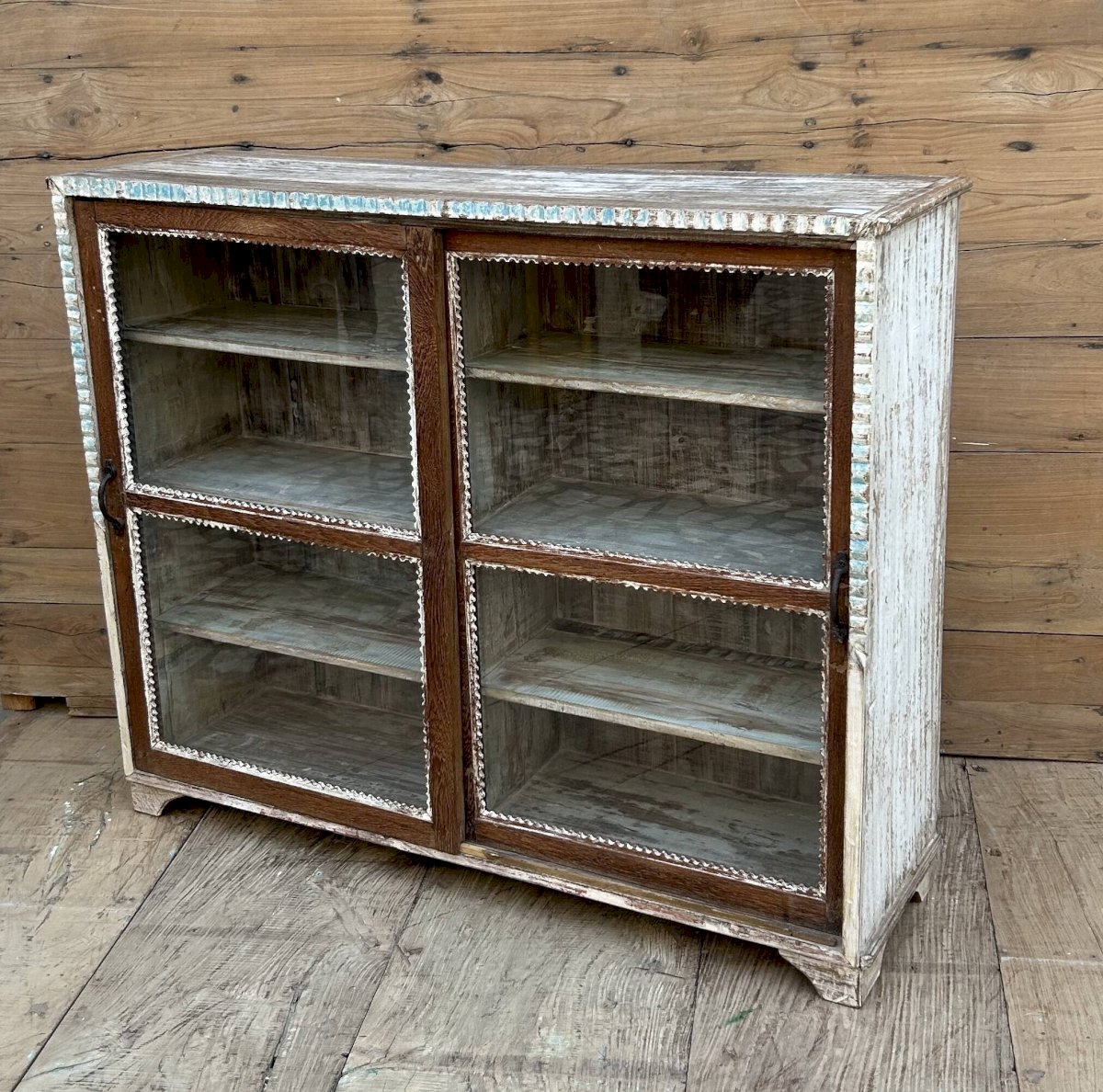Burmese teak display cabinet with sliding doors Ethnic White Wood