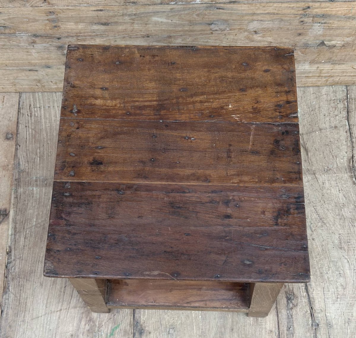 Burmese teak workshop stool / 43 x 43 x 56 cm - seat: 40 x 40 cm - height under seat: 35 cm - 9 kg