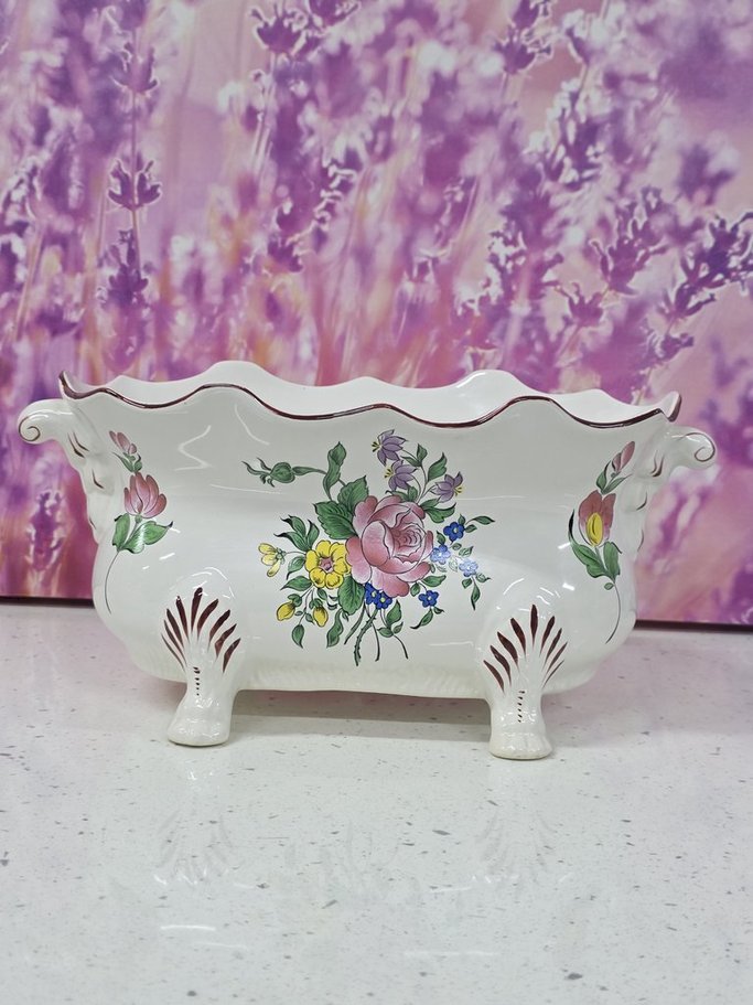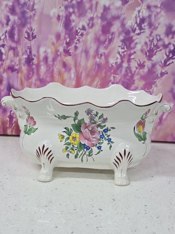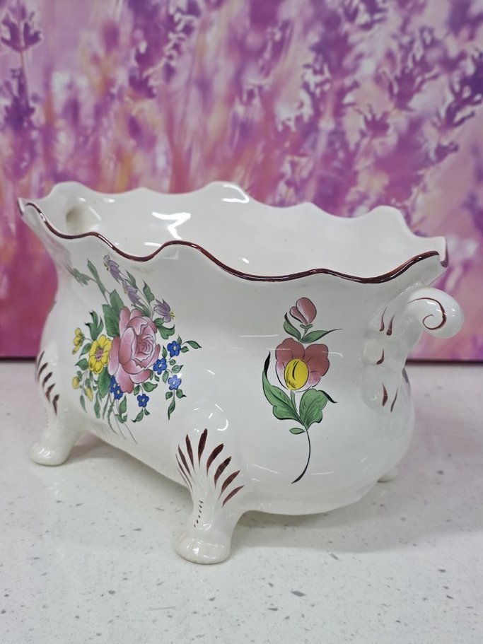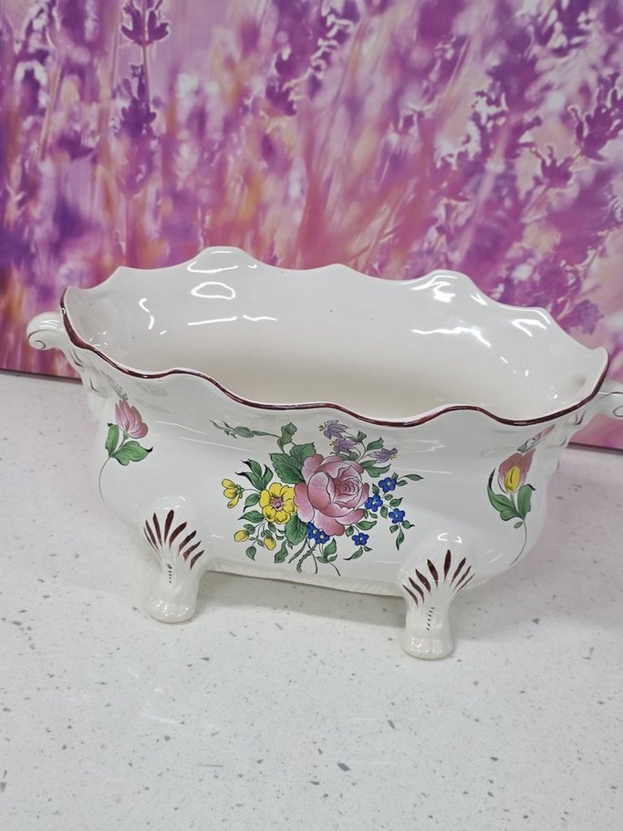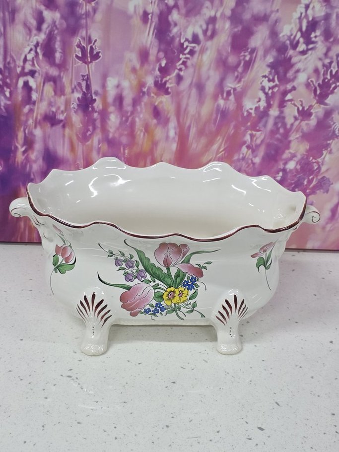 ceramic planter cache pot, KG Lunéville street lamp pattern, in very good condition, length 28cm, height 15cm