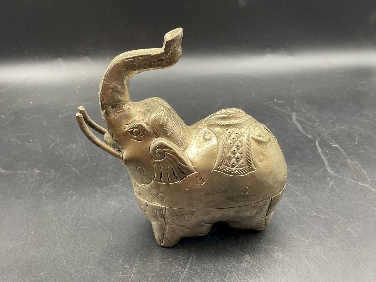 Cambodia lime box betel silver elephant Indochina Height: 11 cm Width: 5.4 cm Length: 10.2 cm