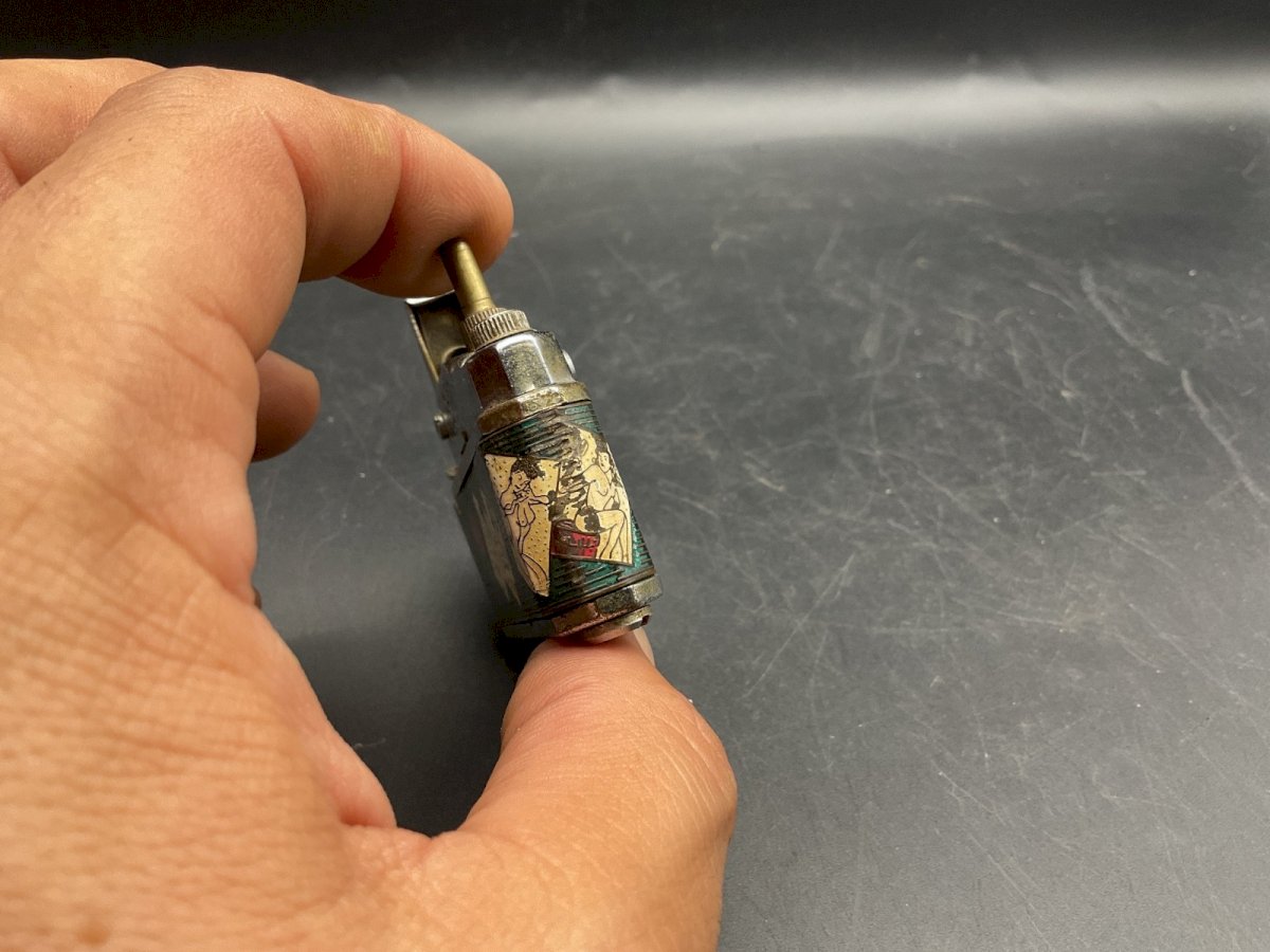 Camera Lighter - KKW - ESSENCE - 1940's Japan - Erotic Model Lighter Sold as is for parts It does not close Condition: Used: Item that has been used. See the seller's description for more details... Used: Item that has been used. any possible imperfections.