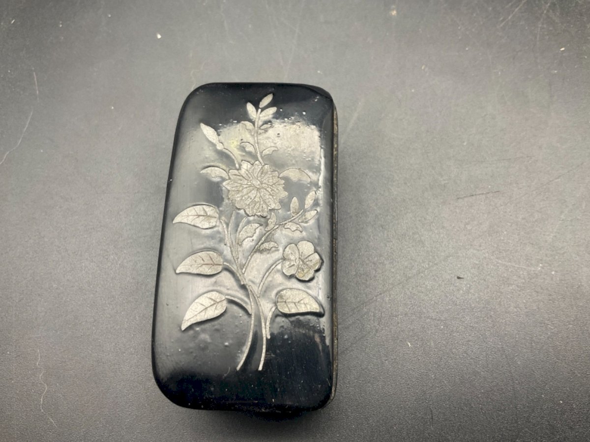 Boiled cardboard box with partitioned decoration Napoleon III snuff box. Length: 6.5 cm Authenticity: Original Type: Showcase item, Decorative Origin: France Sub-type: Box Style: Napoleon III Material: boiled cardboard