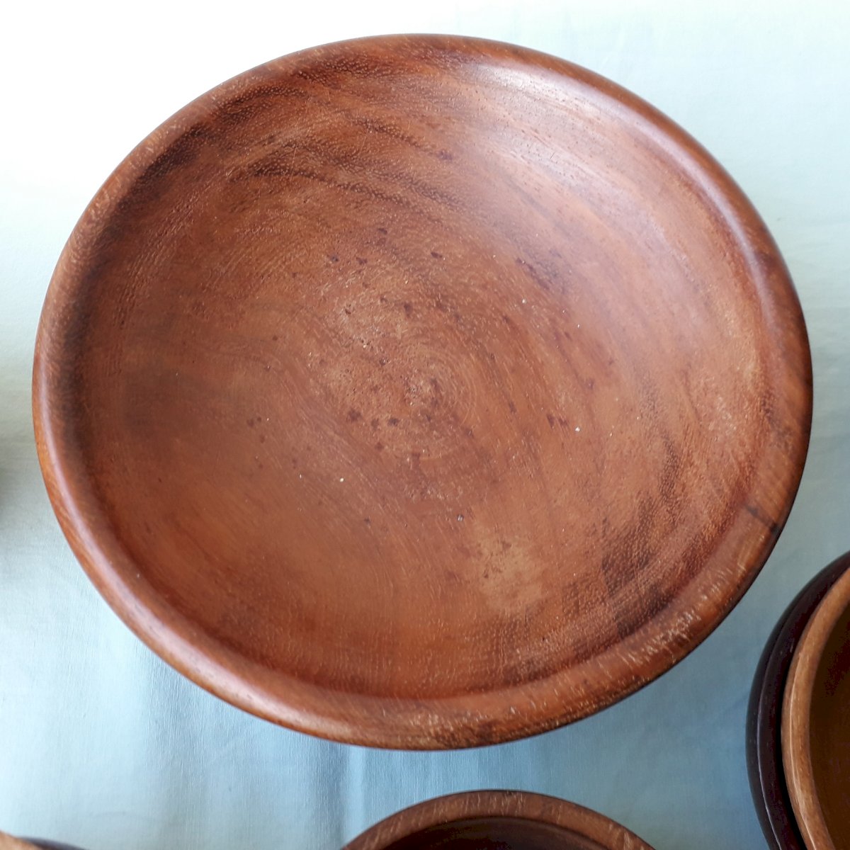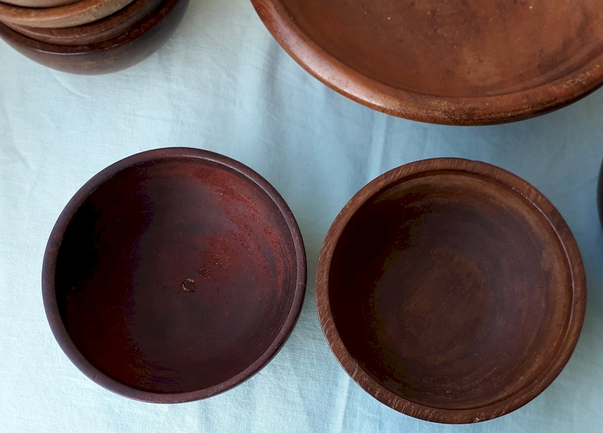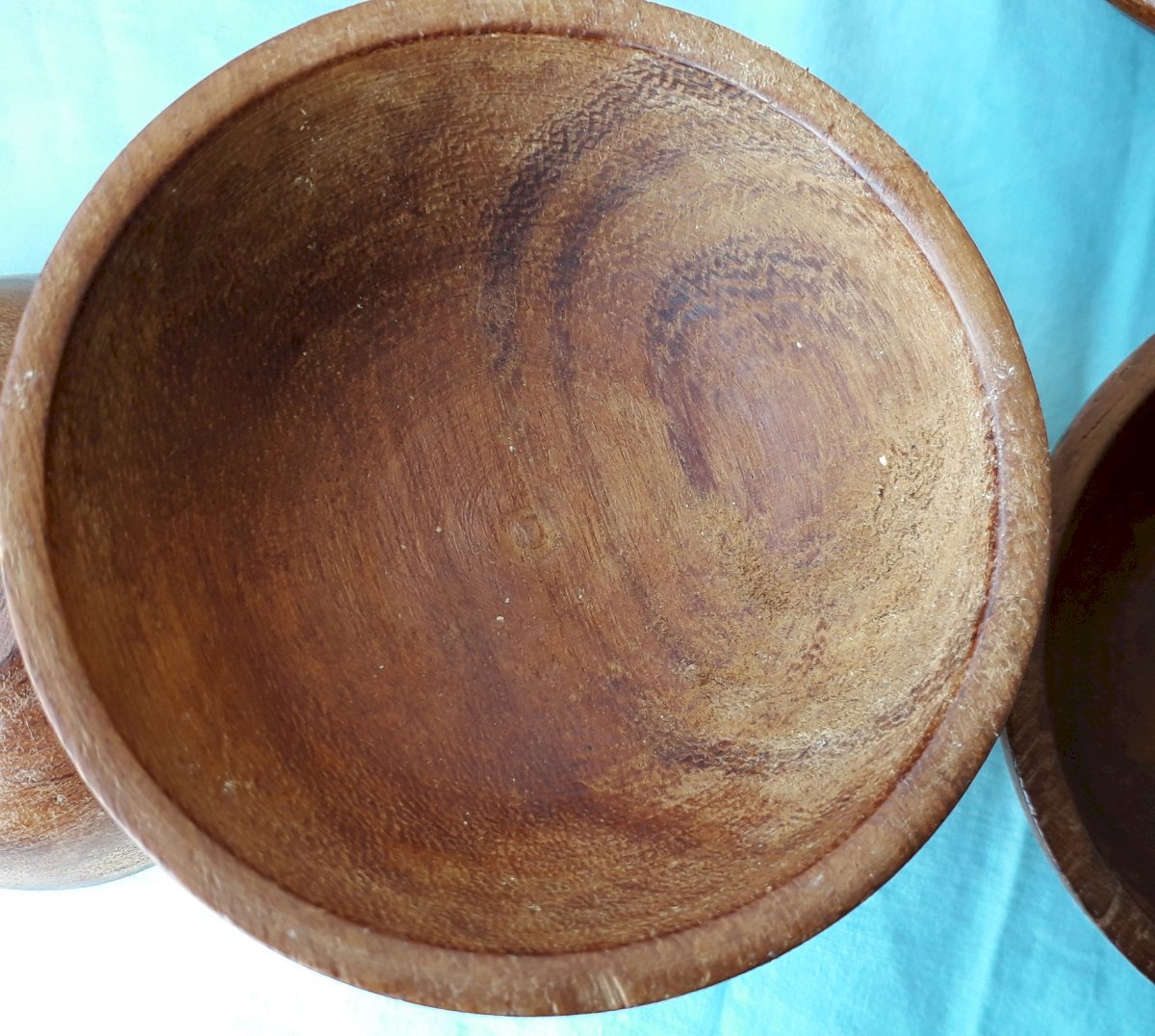 Set for appetizers, carved wood, handcrafted from Cameroon, including 12 small bowls and a salad bowl.
