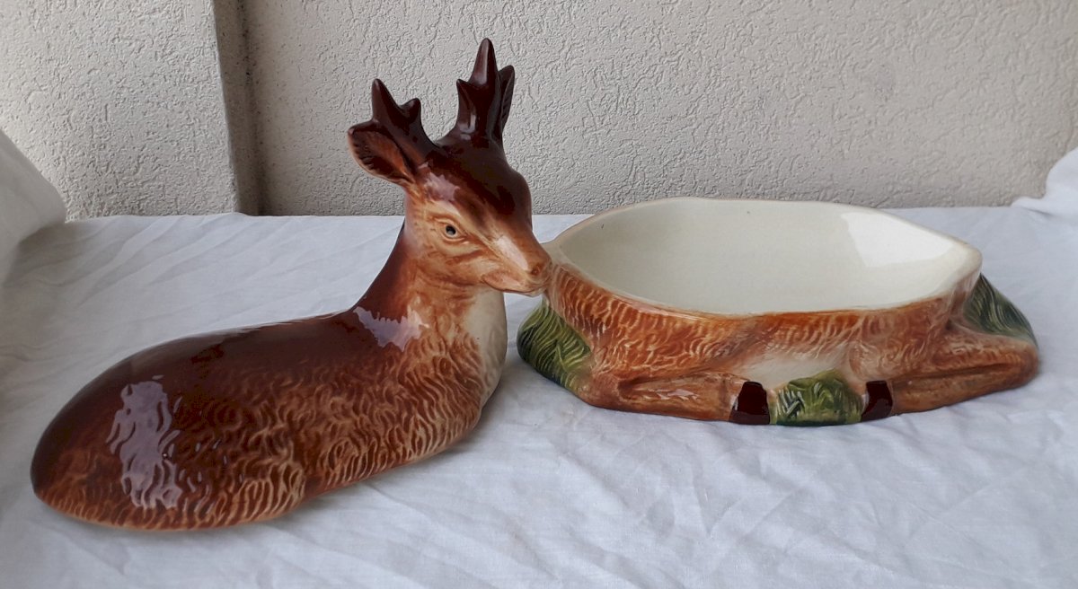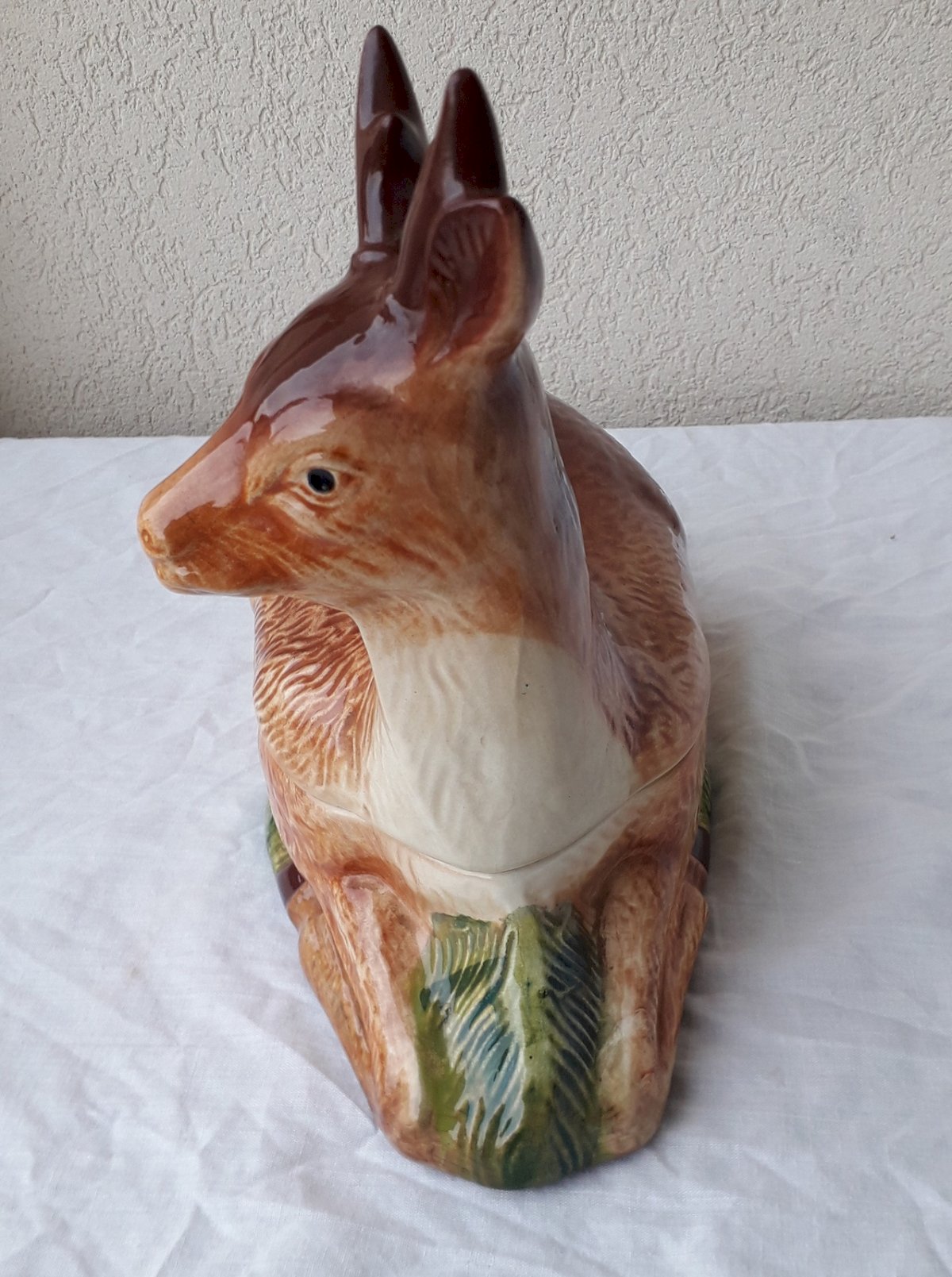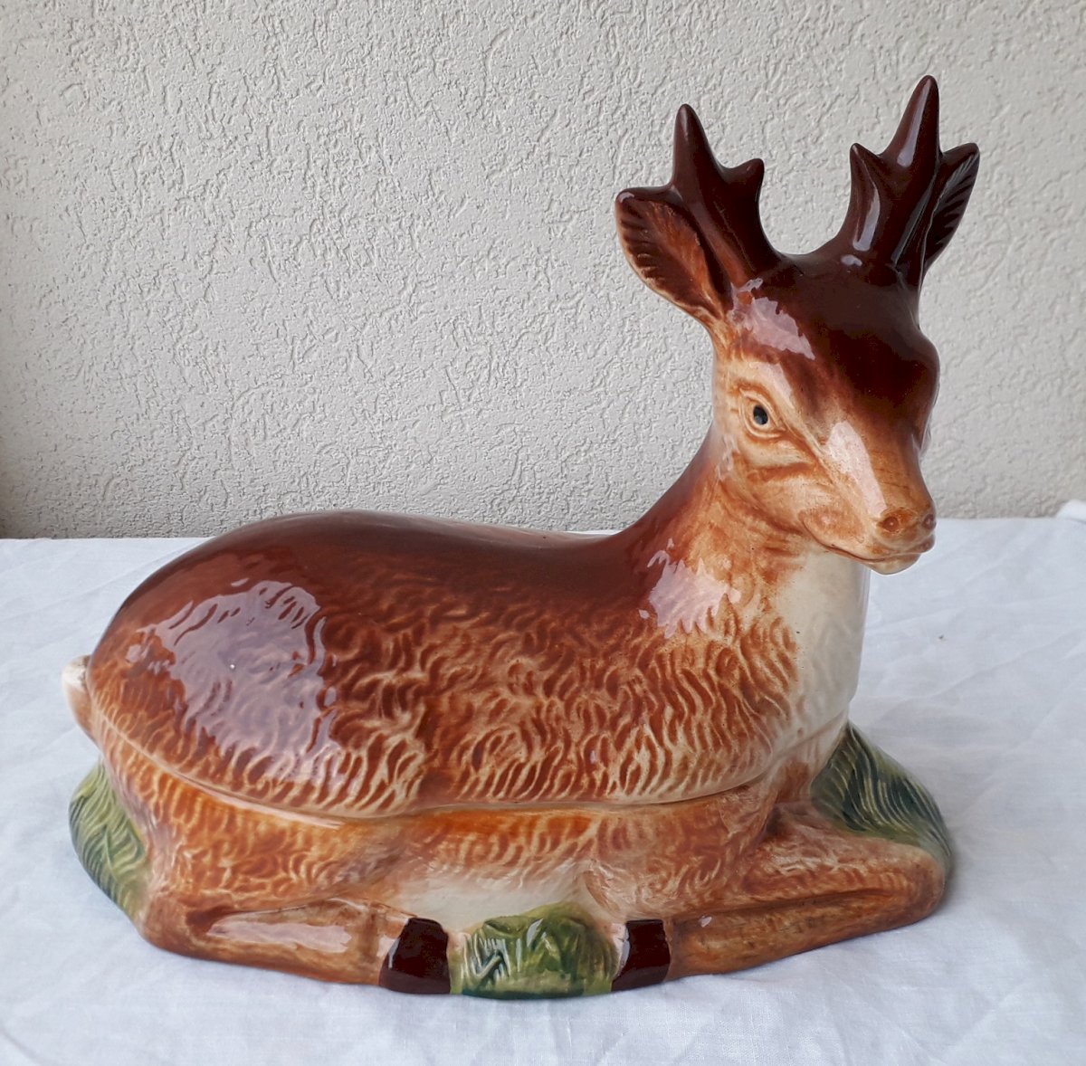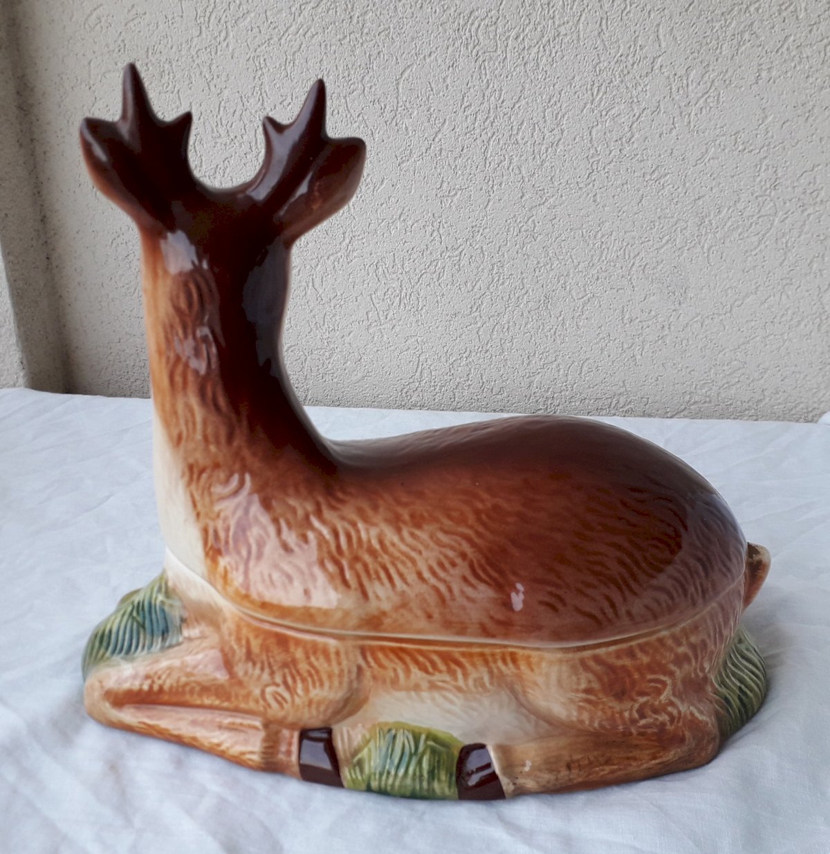 Ceramic terrine in the shape of a deer, made by Michet Caugant.