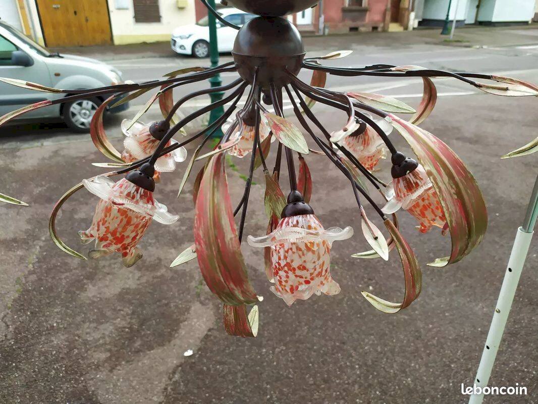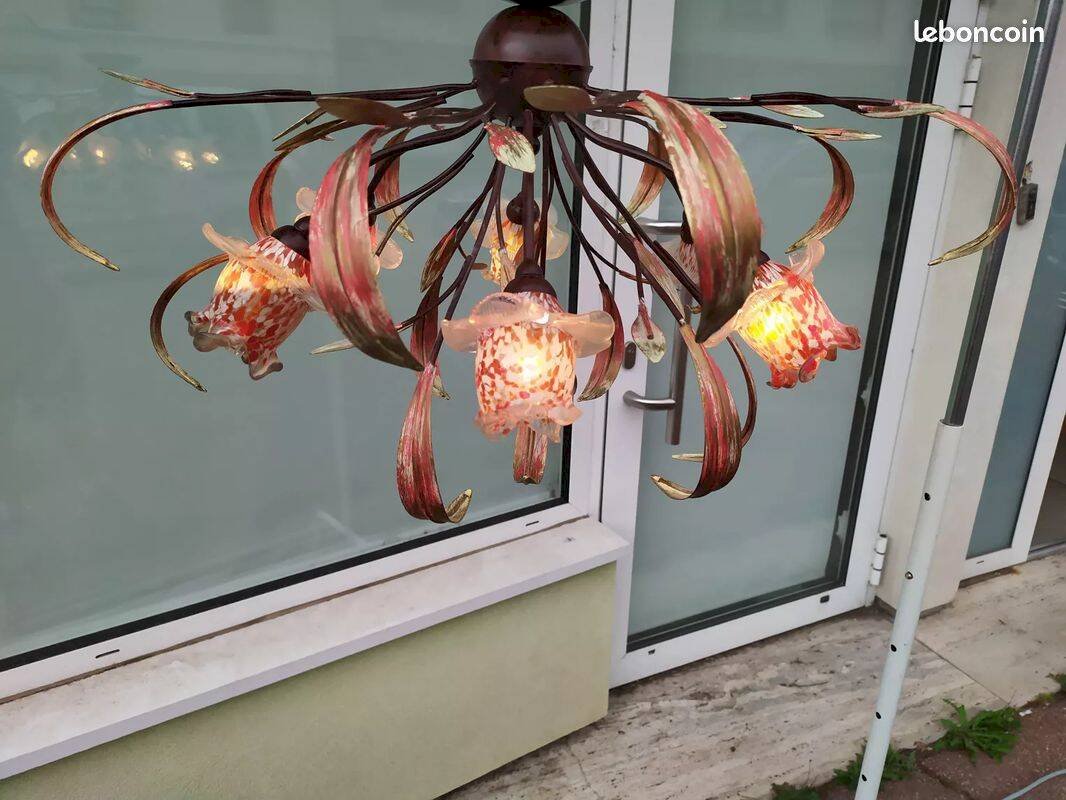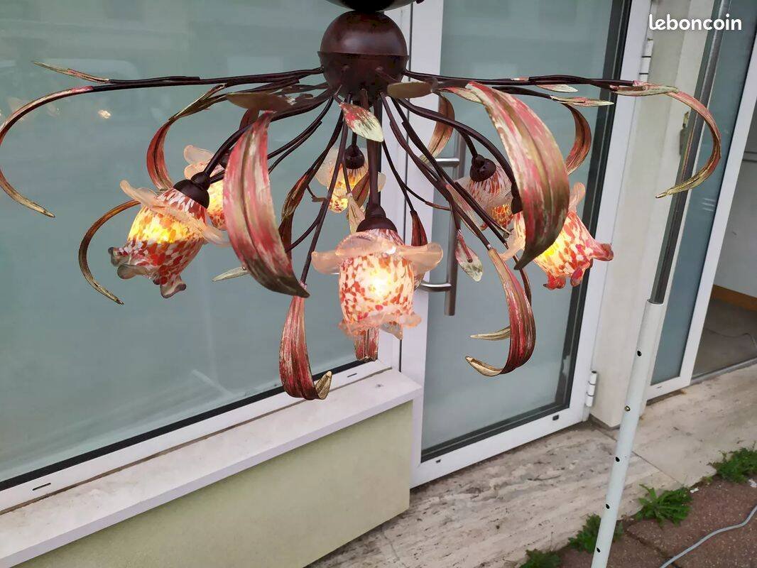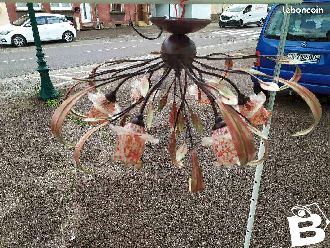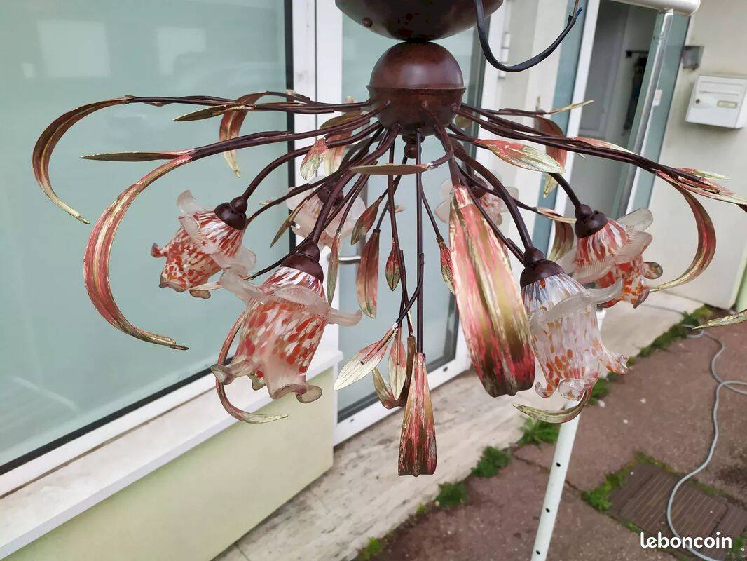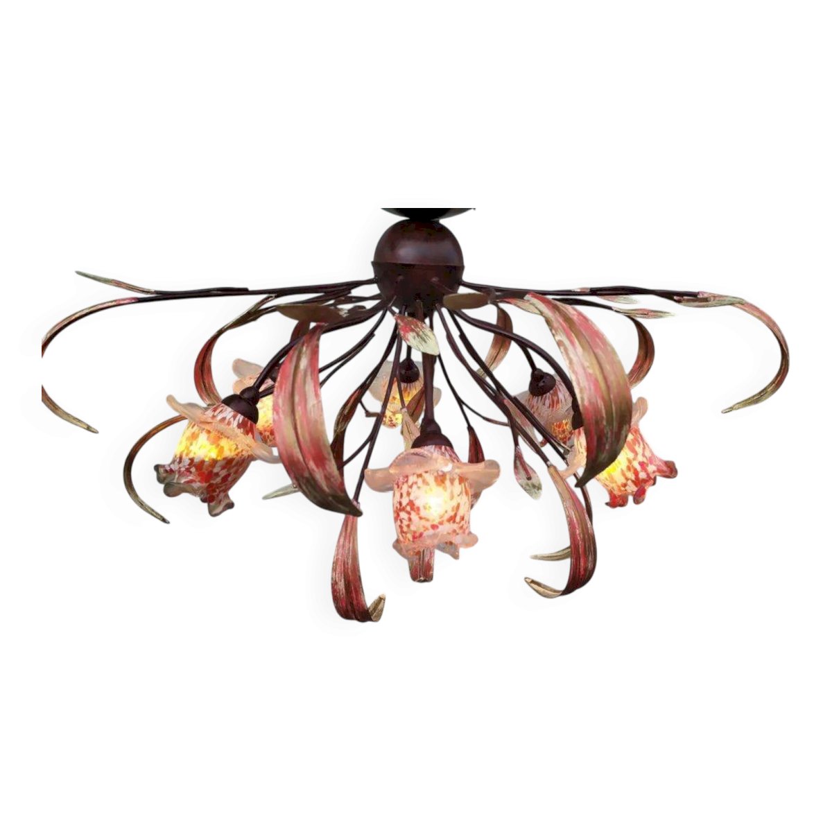 Ceiling lamp pink flowers blown glass floral Artdeco Iron