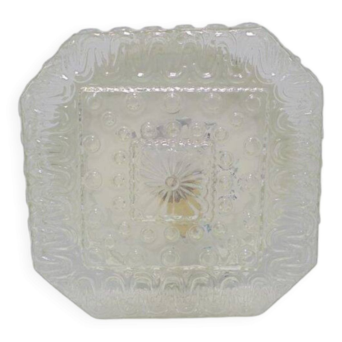 Large ceiling light or square wall lamp, made of glass. E27 socket. Dimensions: 27 X 27 X 12 cm. Weight: 1.530 kg. L: 27 W: 12 H: 27