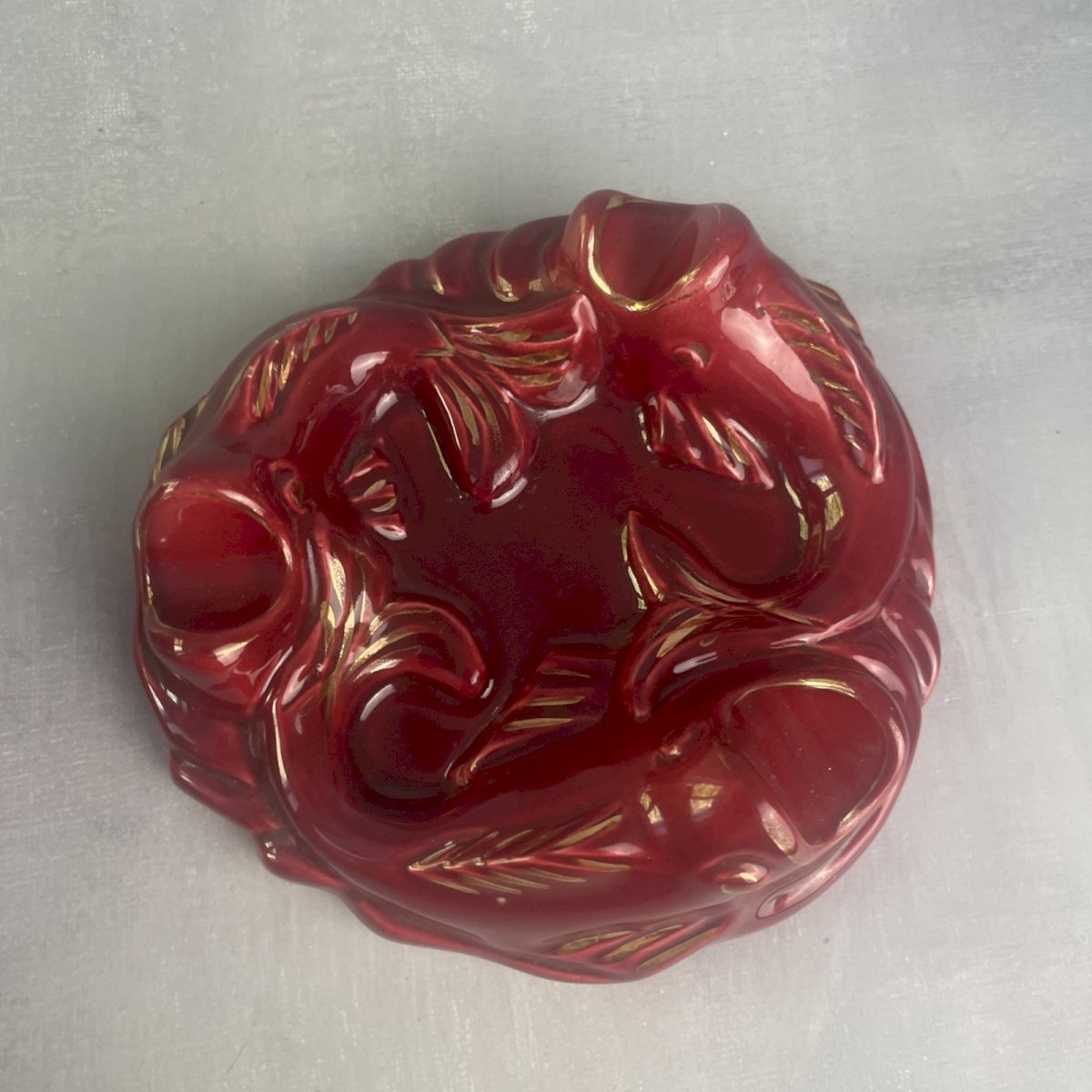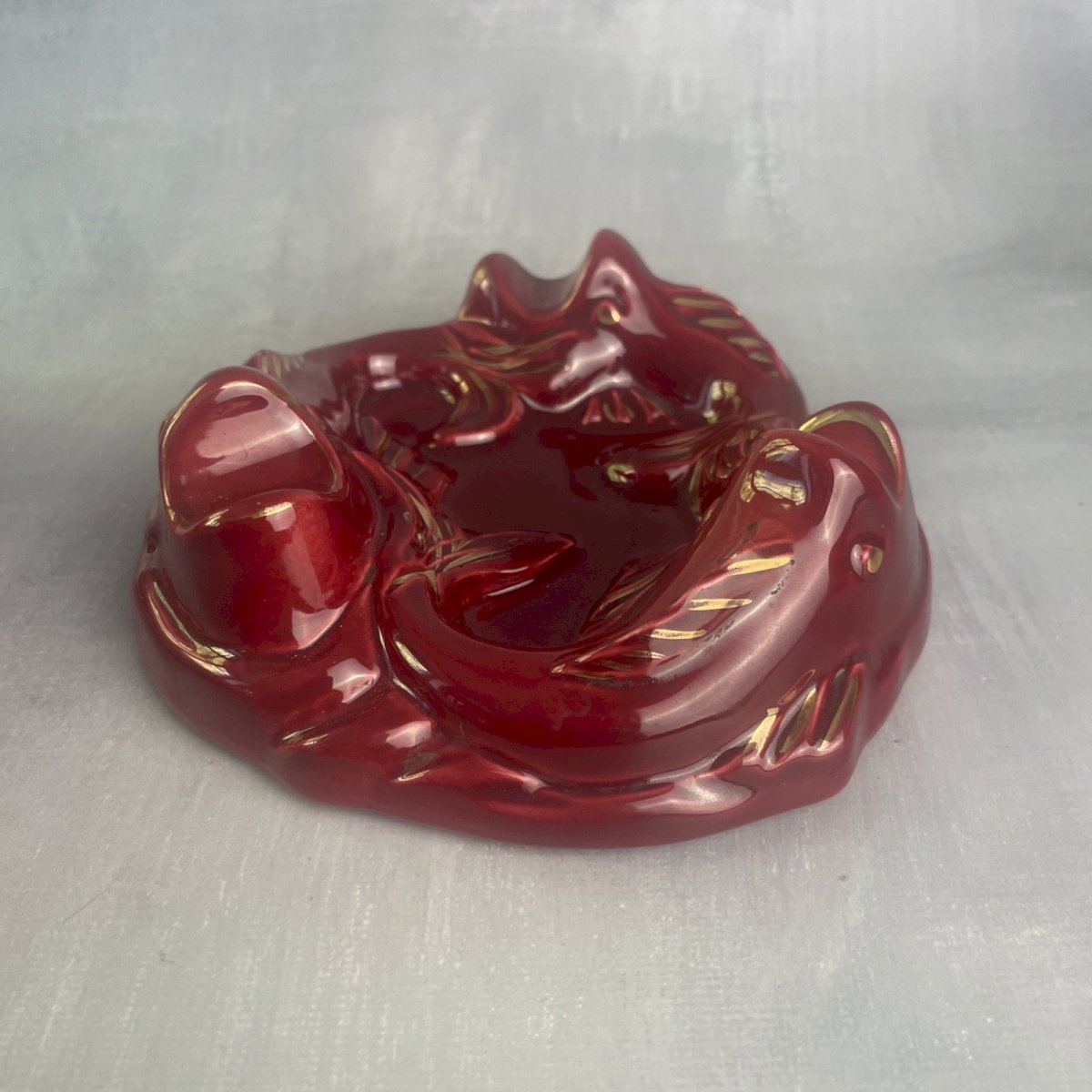 Ceramic ashtray VERCERAM 4825 red goldfish and carp? Diameter ~ 13 / 14 cm Weight ~ 0.3 kg Good condition, several nicks, see photos Remember to group your purchases to reduce shipping costs! Condition: Used Item that has been used. any imperfections. Type: Ashtray Brand: verceram Subtype: Decorative ashtray Country of manufacture: France Material: Ceramic Style: Fancy shape