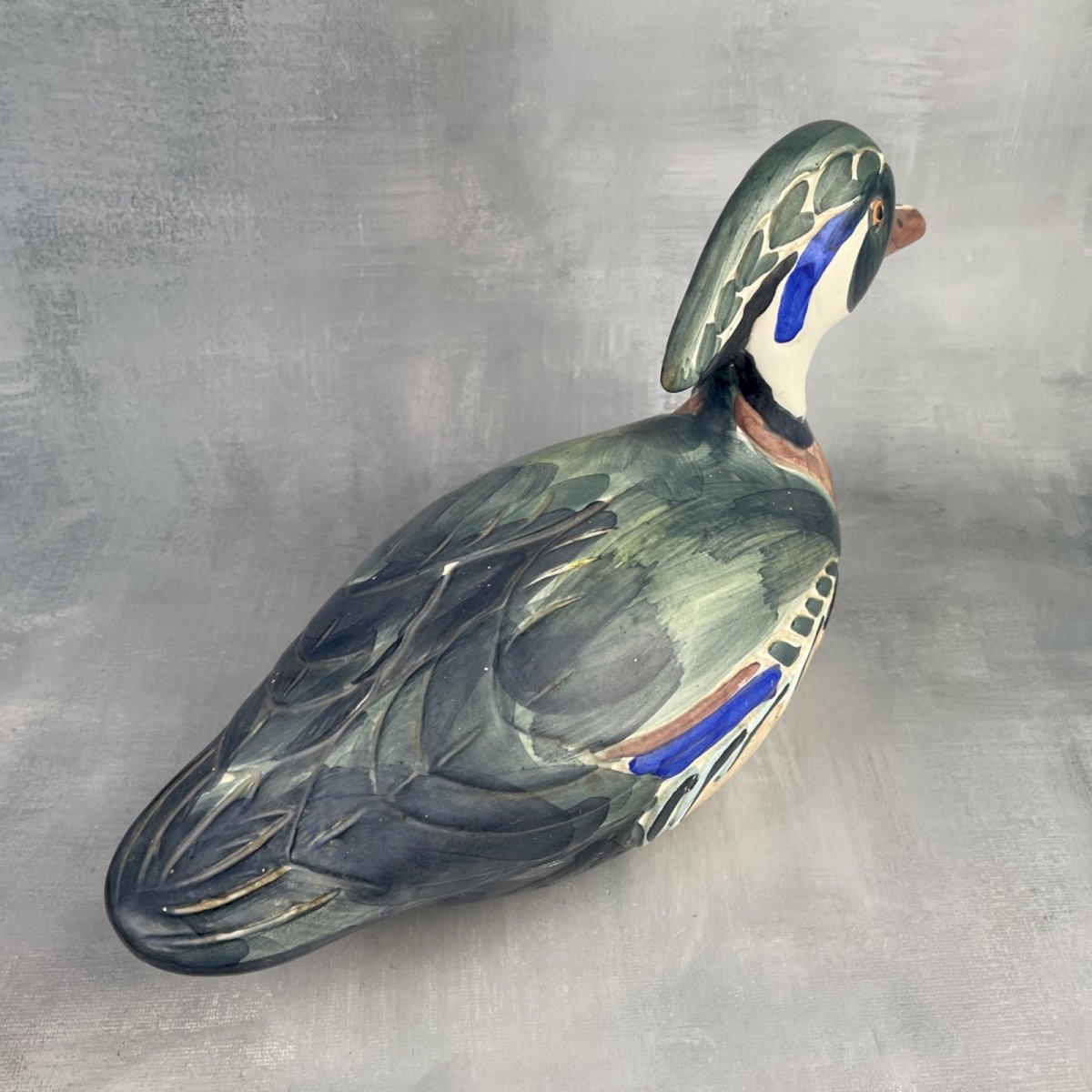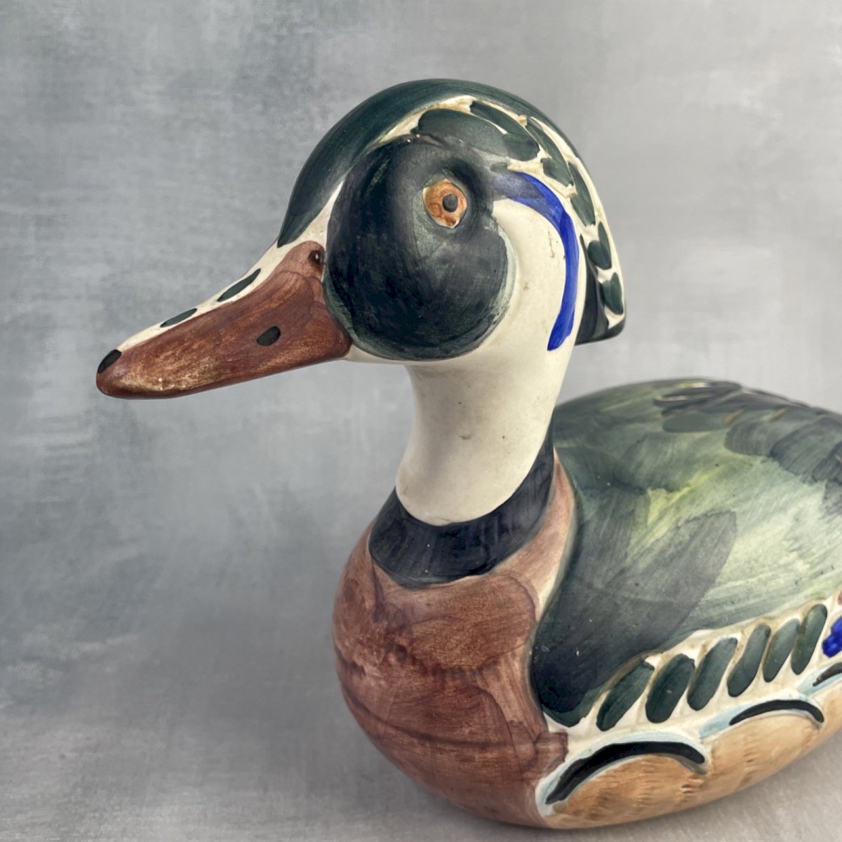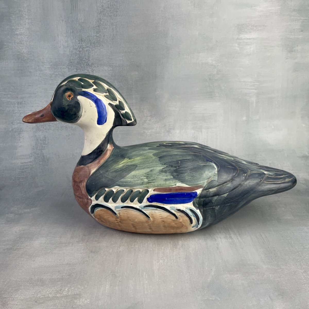 Hand-painted ceramic duck figurine from WEISS, Brazil Height ~ 17.5 cm Dimensions ~ 32 x 12 cm Weight ~ 0.8 kg Very good condition, a few small color losses, a chip in the glaze at the tail, see photos Remember to group your purchases to reduce shipping costs!