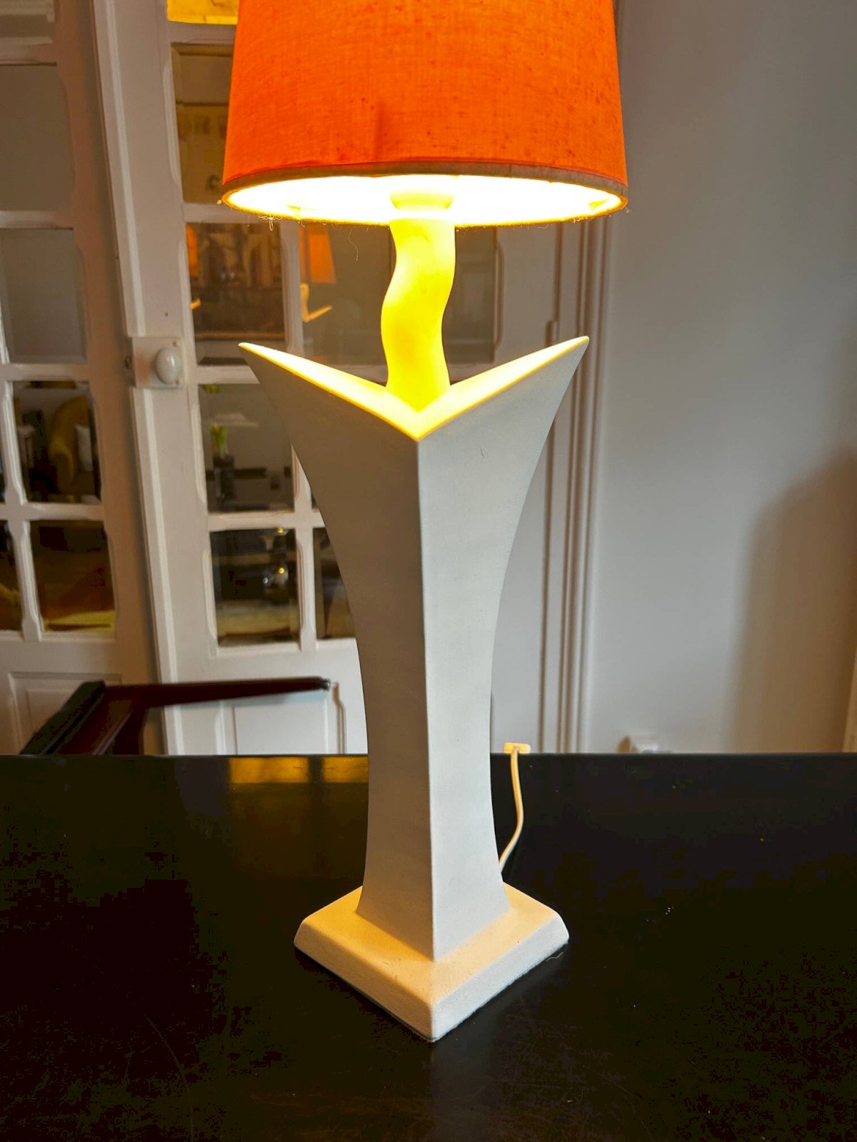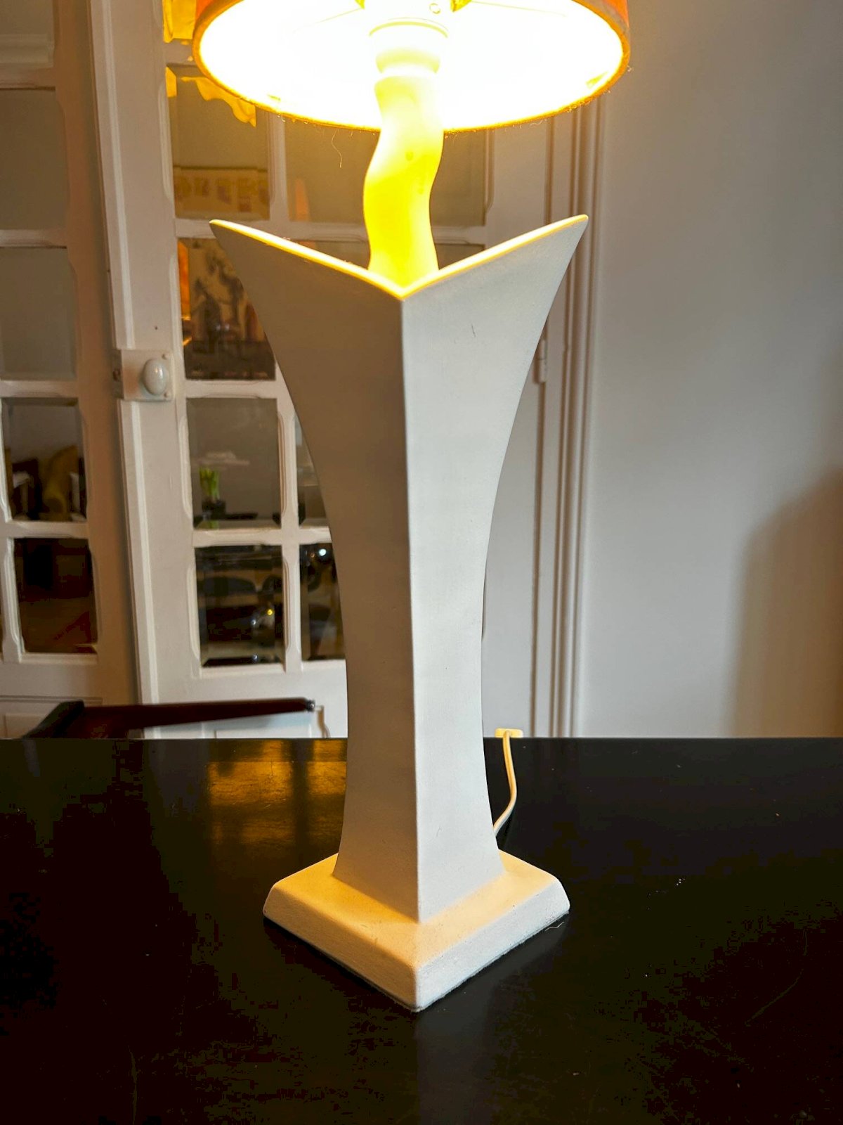 Very Large Vintage White Ceramic Lamp/Designer François Chatain