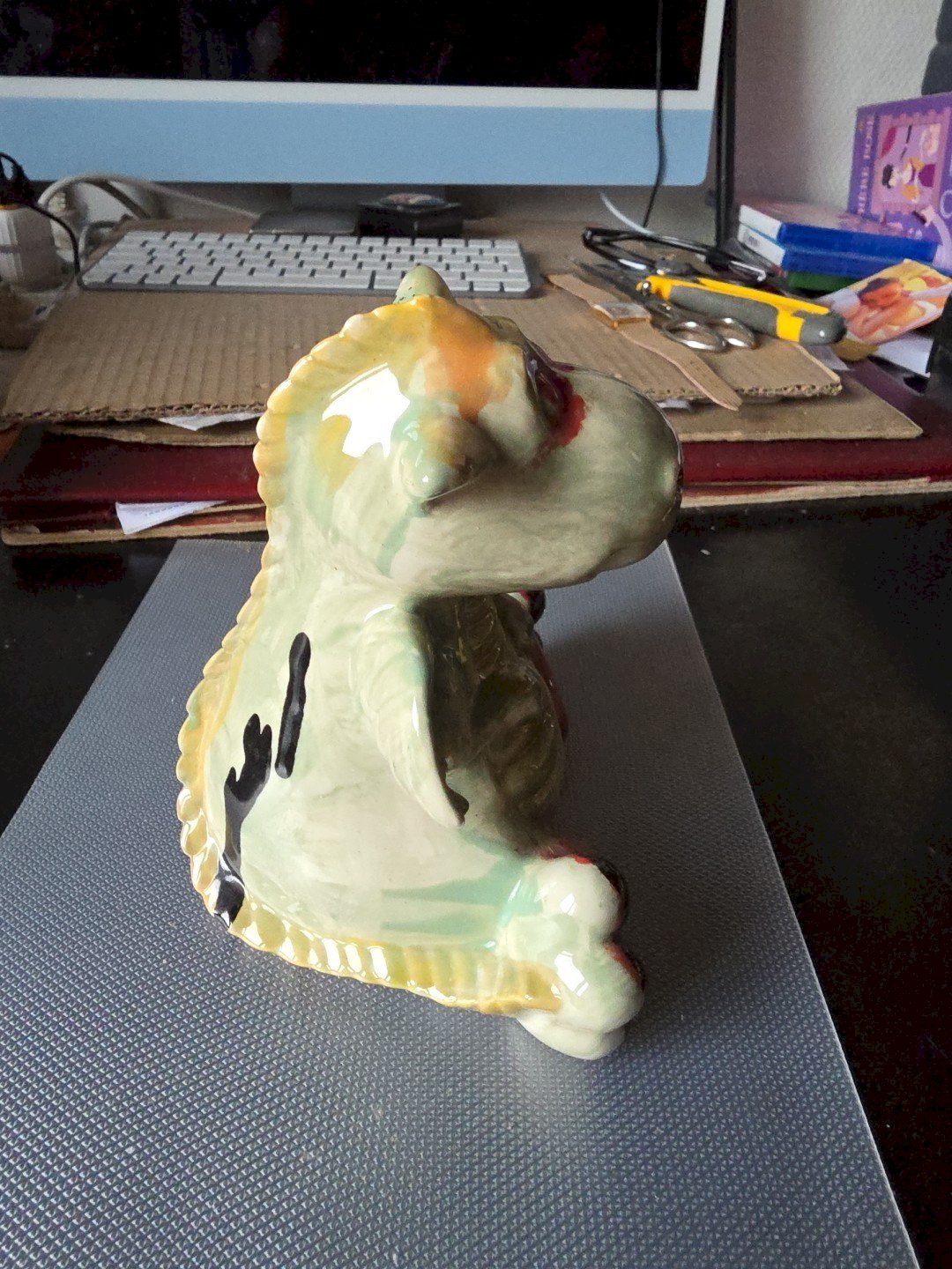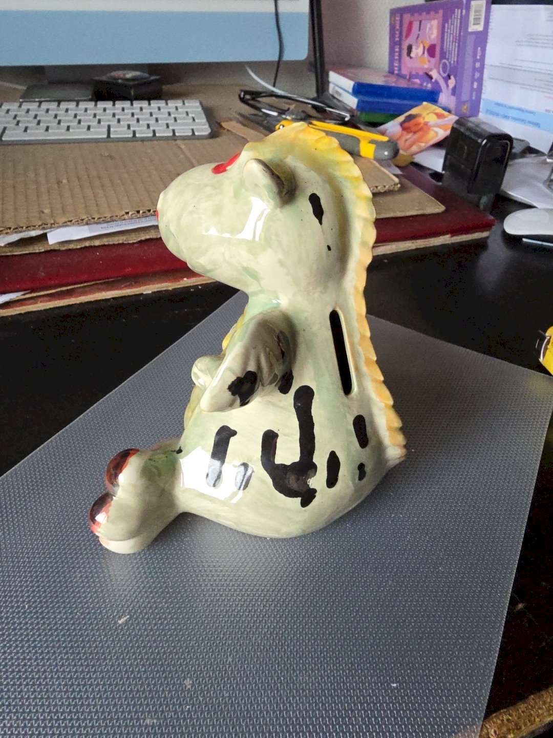 Ceramic Piggy Bank. Dragon. Approximately 17 cm. In very good condition. Missing the plastic stopper. Condition: Used; item has been previously used. Item shows some signs of superficial wear. Fully operational and functioning correctly. It may be a demonstration model or an item returned to the store after a short period of use. Possible imperfections. Material: Ceramic. Theme: Dragons. Type: Home Decor. Manufacturer Part Number: 9406.