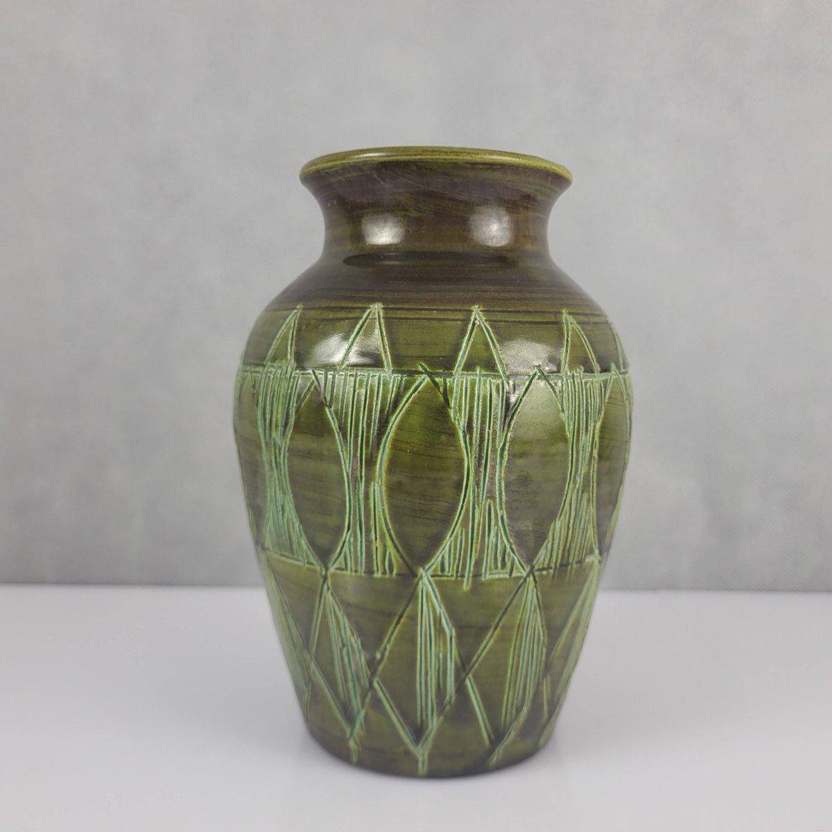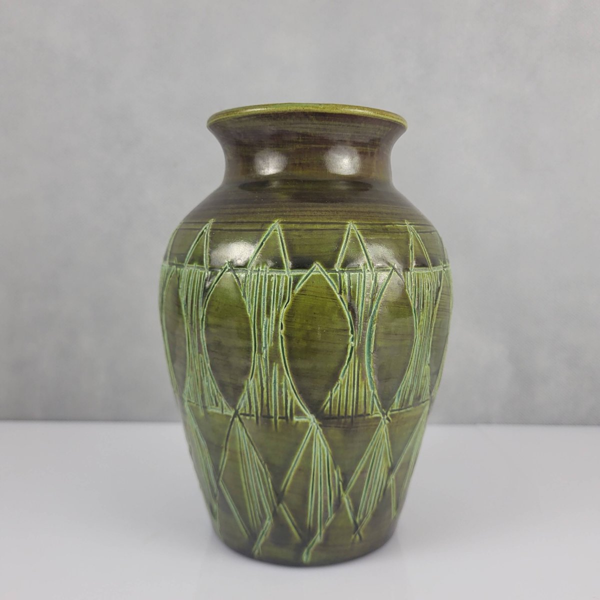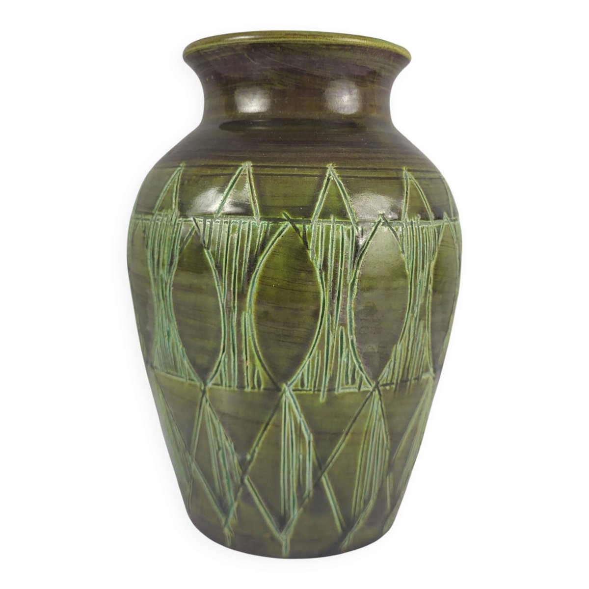 - Large round ceramic vase in Art Deco style, shade of green, vintage