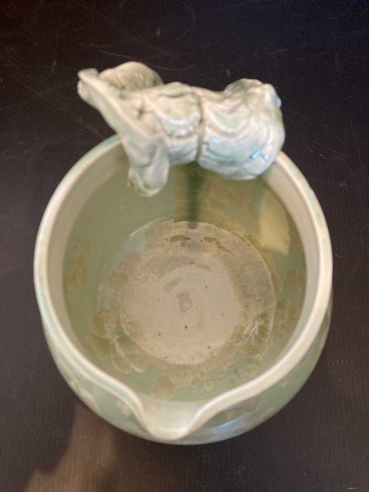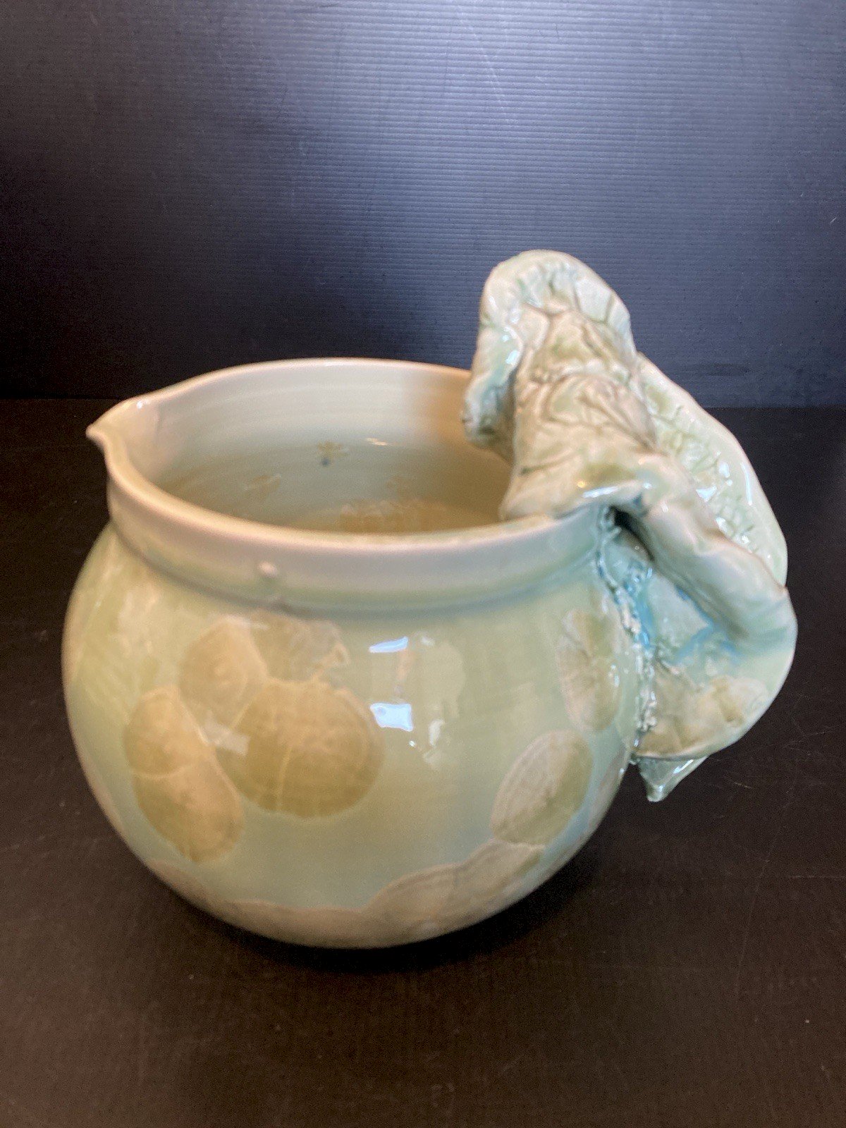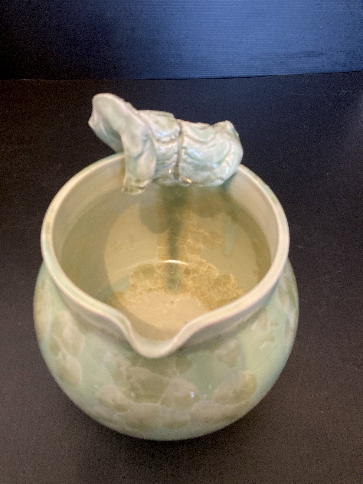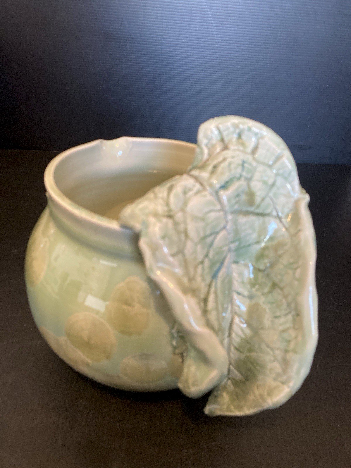 Beautiful hand-crafted celadon-glazed vase with cabbage leaf handle, signature to be identified. P Bedouin?? with no certainty. Good condition, maximum height 18 cm, internal diameter 11 cm, external diameter 15 cm, weight 1250 g. Please refer to the photos above, which will also serve as a description. Careful and secure packaging with the option for postal shipping to be selected during your purchase for the calculation of shipping fees. (otherwise, standard Mondial Relay shipping). Thank you all and happy hunting in my shop. Returns accepted within 14 days of receipt, in the original packaging, in its initial condition, no refunds for items returned damaged or lost by the carrier, return shipping at the buyer's expense. Authenticity: Original Type: Showcase item, Decorative Period: 20th Century Design Subtype: Vase Material: Ceramic.