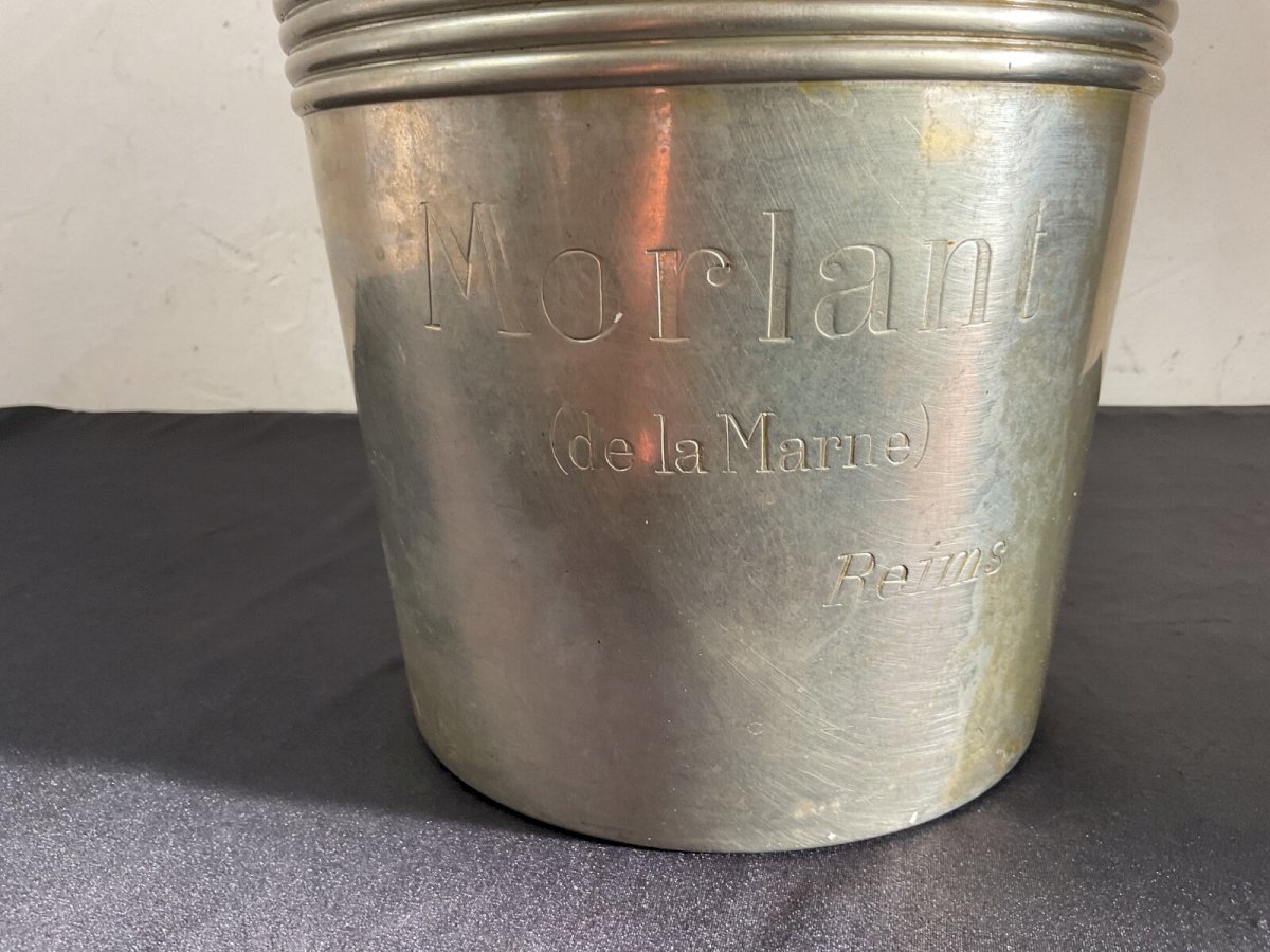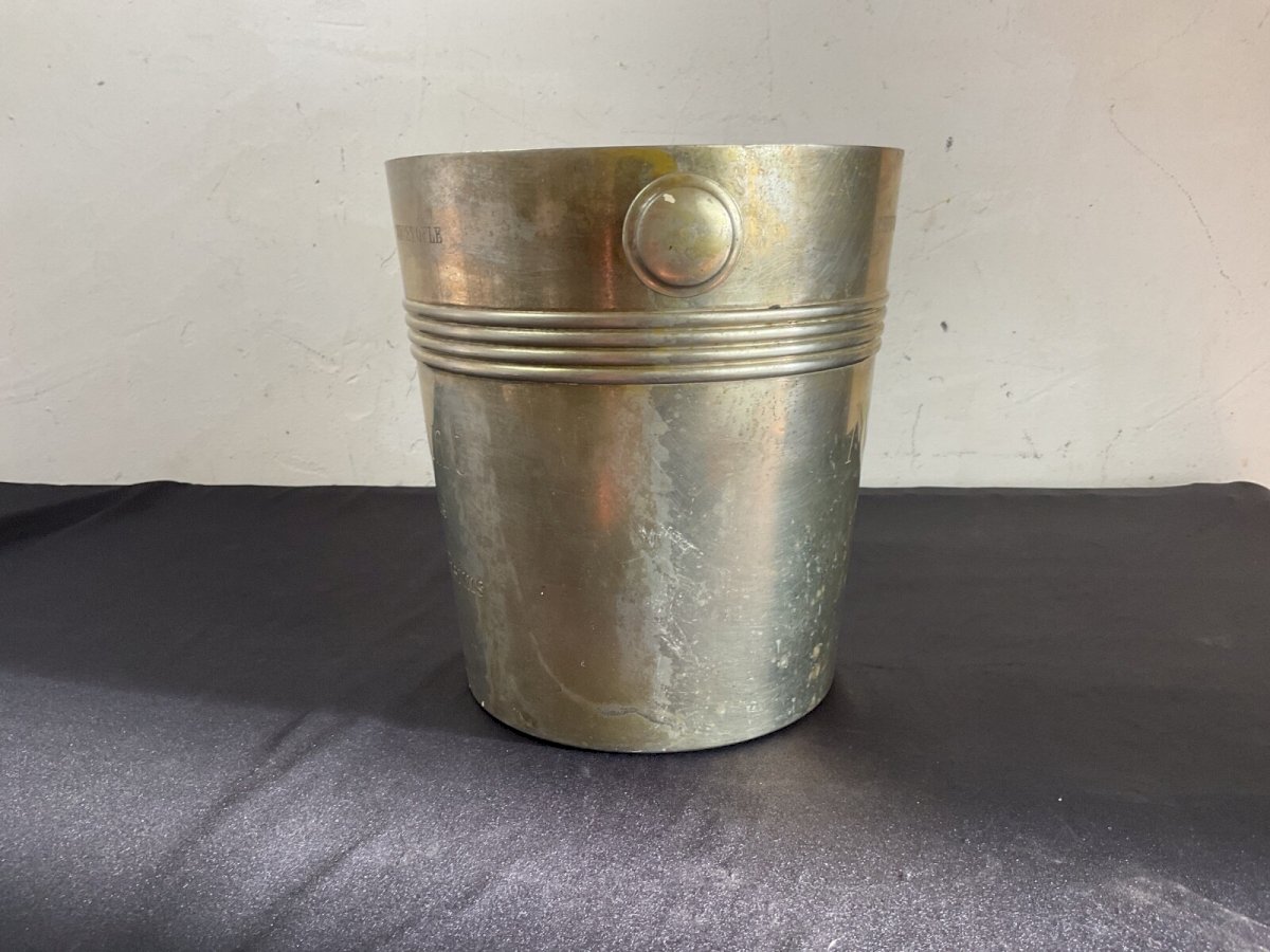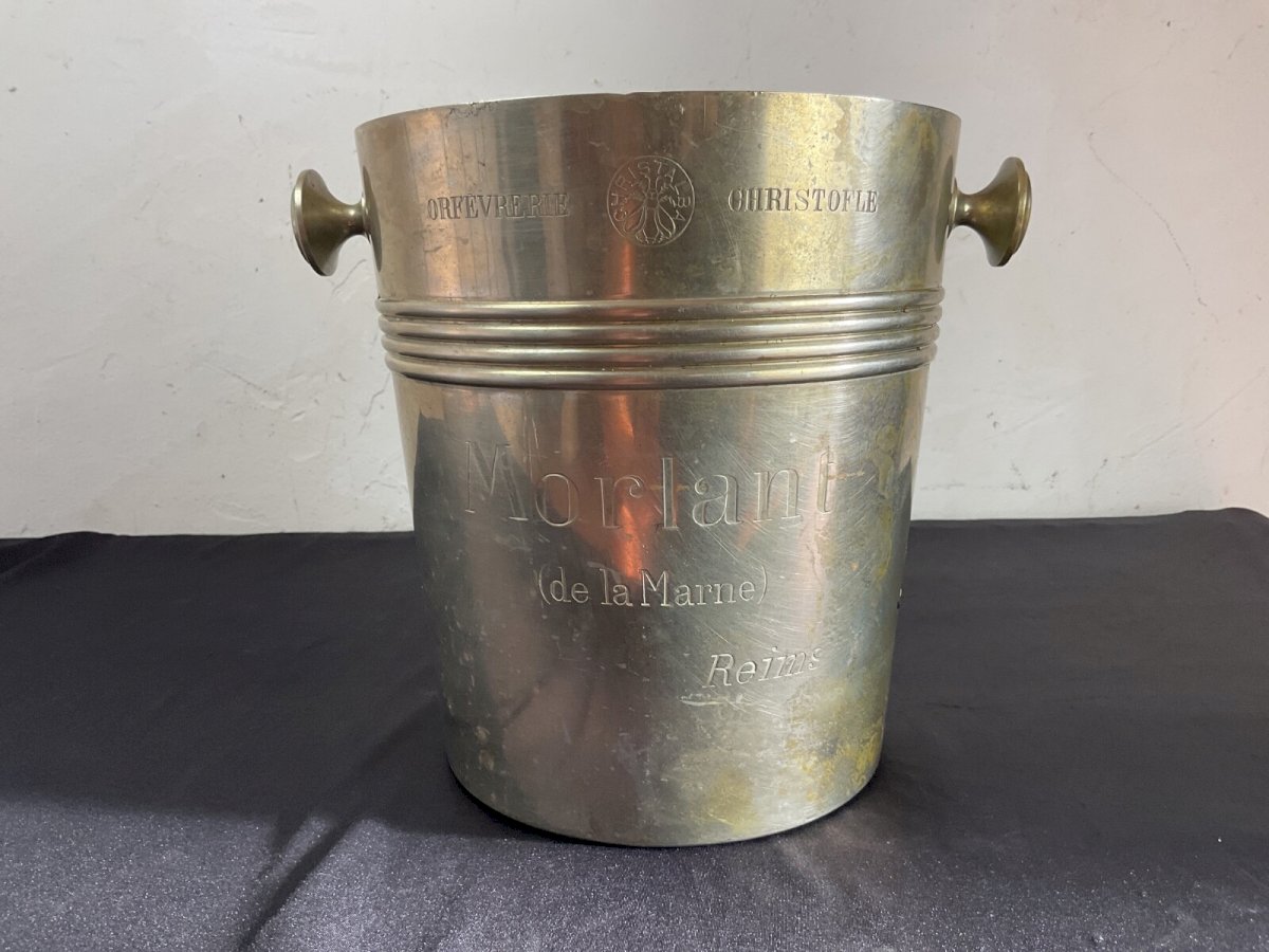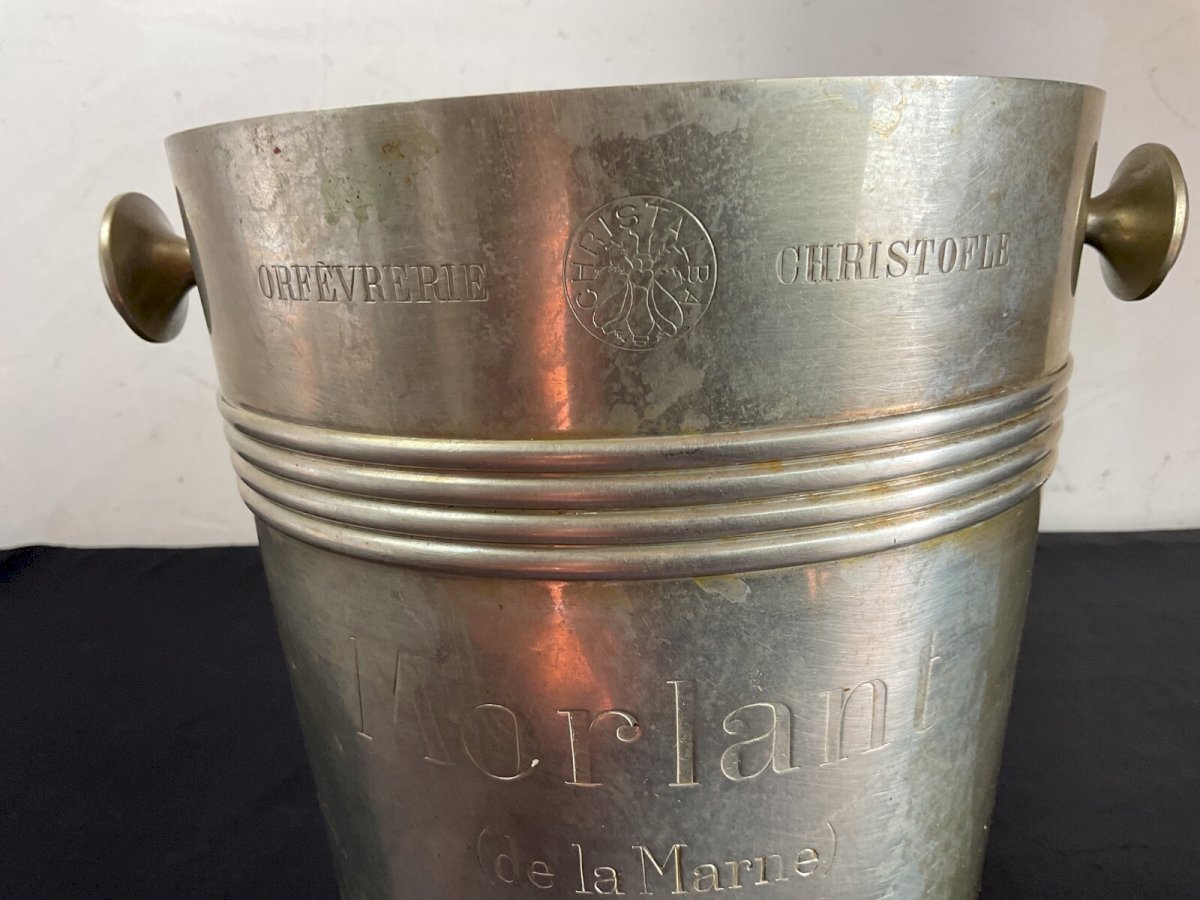Champagne bucket Christofle Morlant Reims Art Deco Design Luc Lanel Height: 21 cm Diameter: 19 cm Authenticity: Original Brand: Christofle Type: Tableware, Kitchen Period: 20th Century Design Origin: France Sub-type: champagne bucket Material: Silver-plated metal