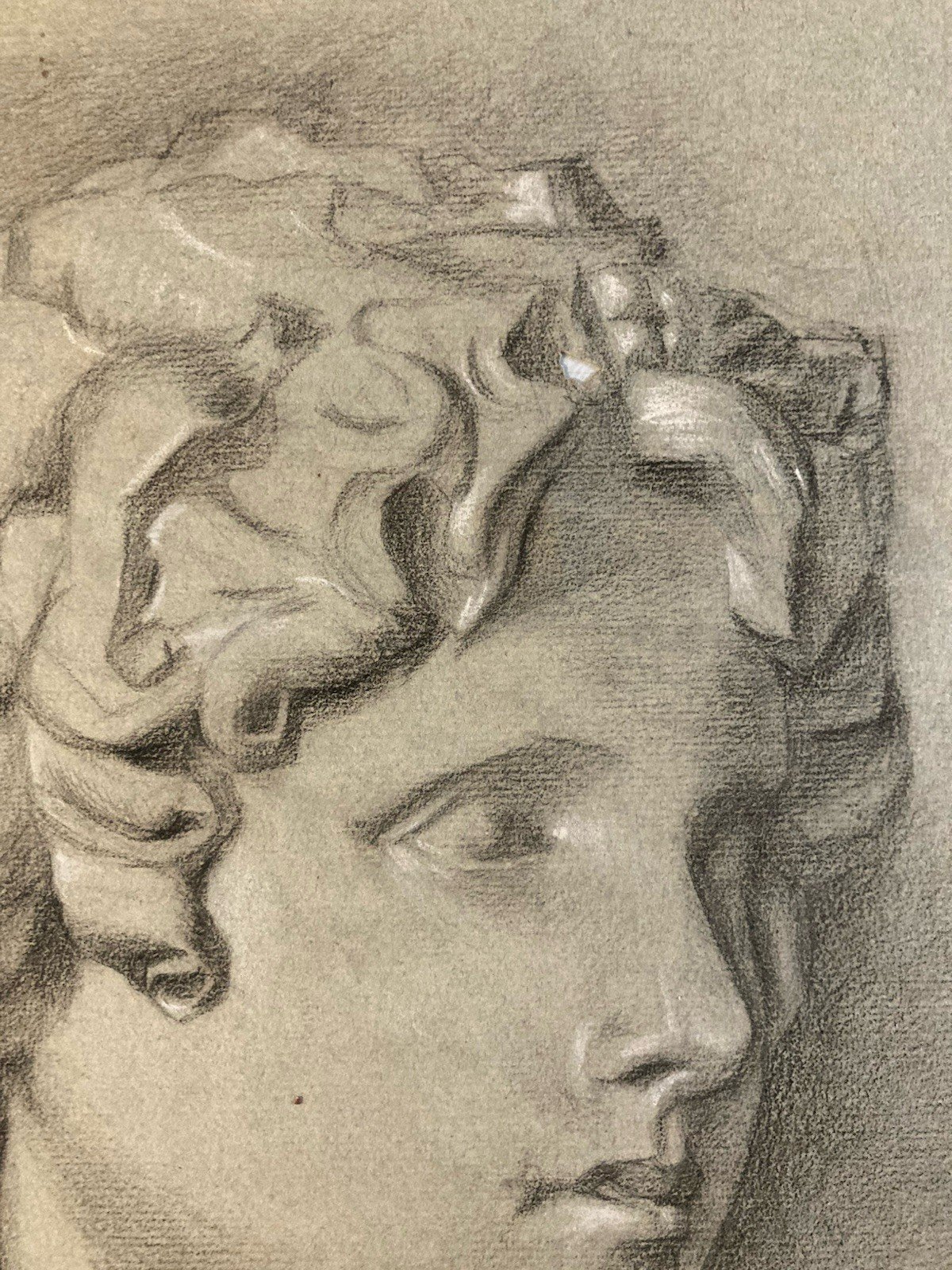 Note a small hole in the hair see photo Recommended products Provided by very nice charcoal drawing 19th century Foot head bust Man Sculpture to be identified Antique See product Type: Drawing Country of origin: France Material: Pencil lead