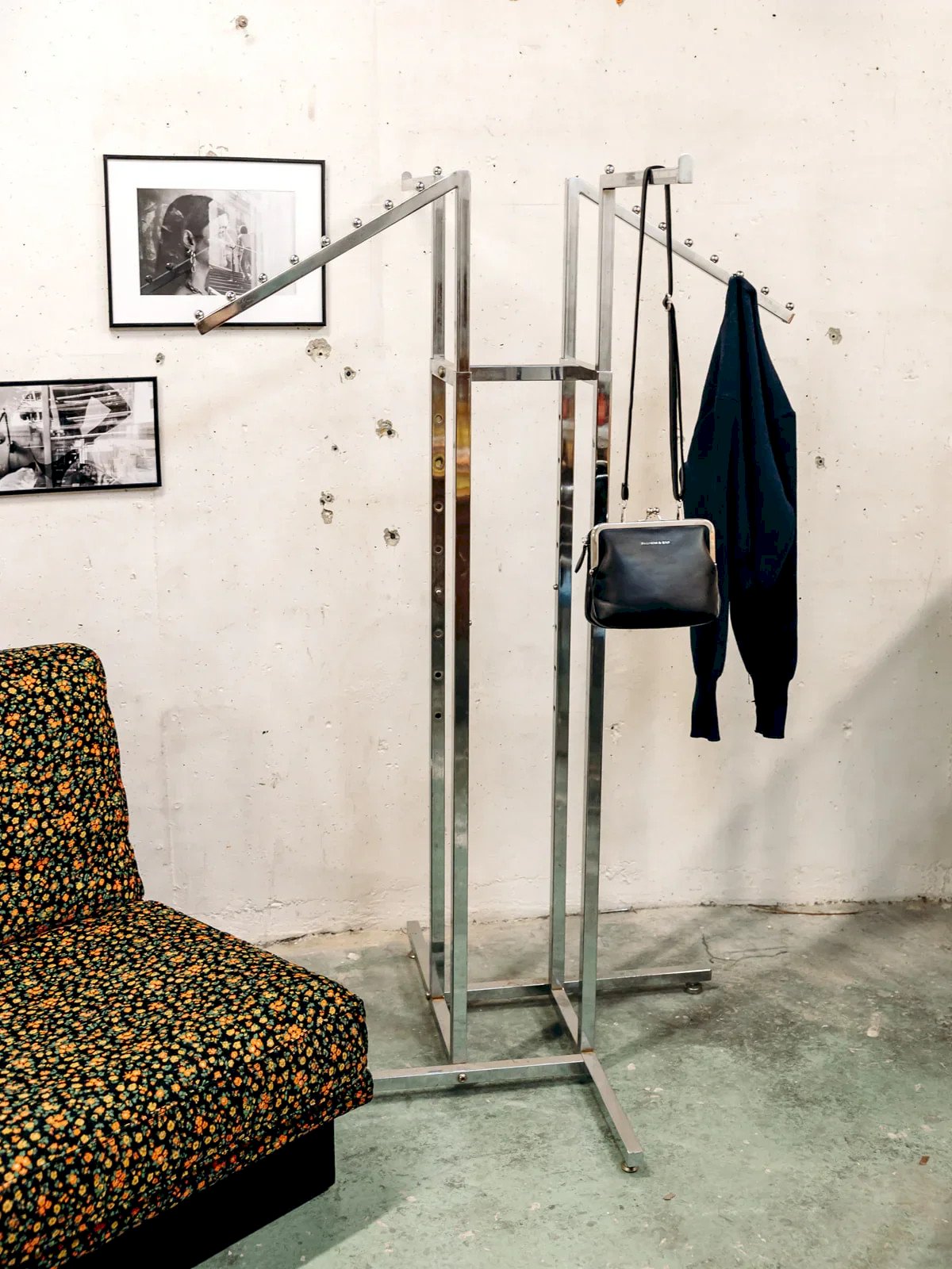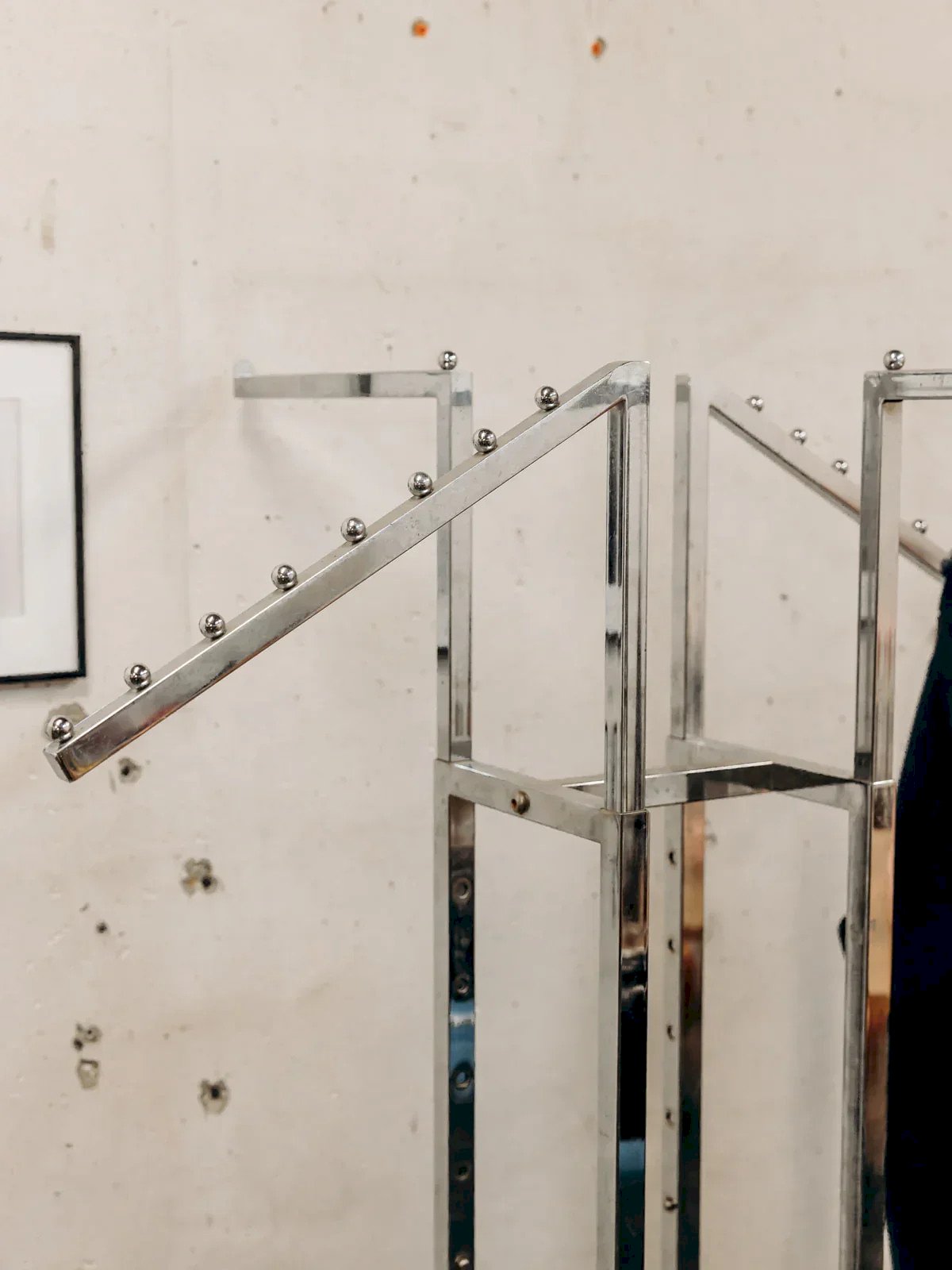 Bring functionality and style to your interior with this fully metal coat rack featuring an original design. Its small round hooks, either straight or curved, make it easy to hang jackets, bags, or accessories. With four sturdy branches and a crossed base, it ensures stability and practicality in everyday use. Its minimalist and robust look makes it an ideal piece for an entryway, office, or living space. This coat rack combines utility and aesthetics for elegant organization. Infinitely adjustable! Length: 87 cm Width: 87 cm Maximum height: 186 cm A brief history of the coat rack The term "coat rack" appeared in the 18th century, although the concept dates back to ancient times. Initially just simple hooks fixed to walls, it evolved into an elegant and functional support, often freestanding. First found in the halls of bourgeois houses, it held coats and hats, quickly becoming a must-have element of interior design. Today, coat racks adapt to all styles, blending practicality and aesthetics. Condition: Used: Item has been used. Item shows some signs of superficial wear... Used: Item has been used. Item shows some signs of superficial wear, fully operational and functioning properly. It may be a demonstration model or an item returned to the store after a short period of use. Possible imperfections. Brand: Debongout Type: Thrifted product Material: Metal Style: Contemporary