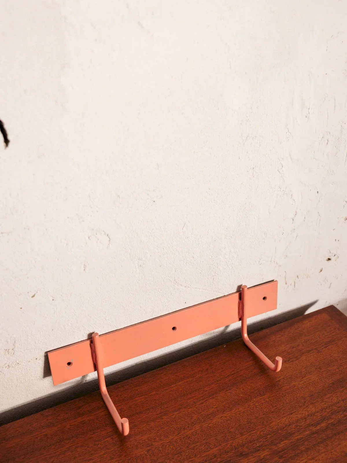 Add a touch of charm to your interior with this pink metal hook, featuring two practical hangers. Repainted to like new, it combines elegance and functionality, fitting perfectly into an entrance or a bedroom. Its soft color will bring a note of freshness while providing additional storage space for your clothes and accessories. An ideal decorative piece for a style that is both vintage and modern. Length: 43 cm Width: 13 cm Condition: Used: An item that has been used. Item showing some superficial signs of wear... Used: An item that has been used. Item showing some superficial signs of wear, fully operational and functioning correctly. It may be a display model or an item returned to the store after a short period of use. The possible imperfections. Brand: Debongout Type: Vintage product Material: Metal Style: Contemporary