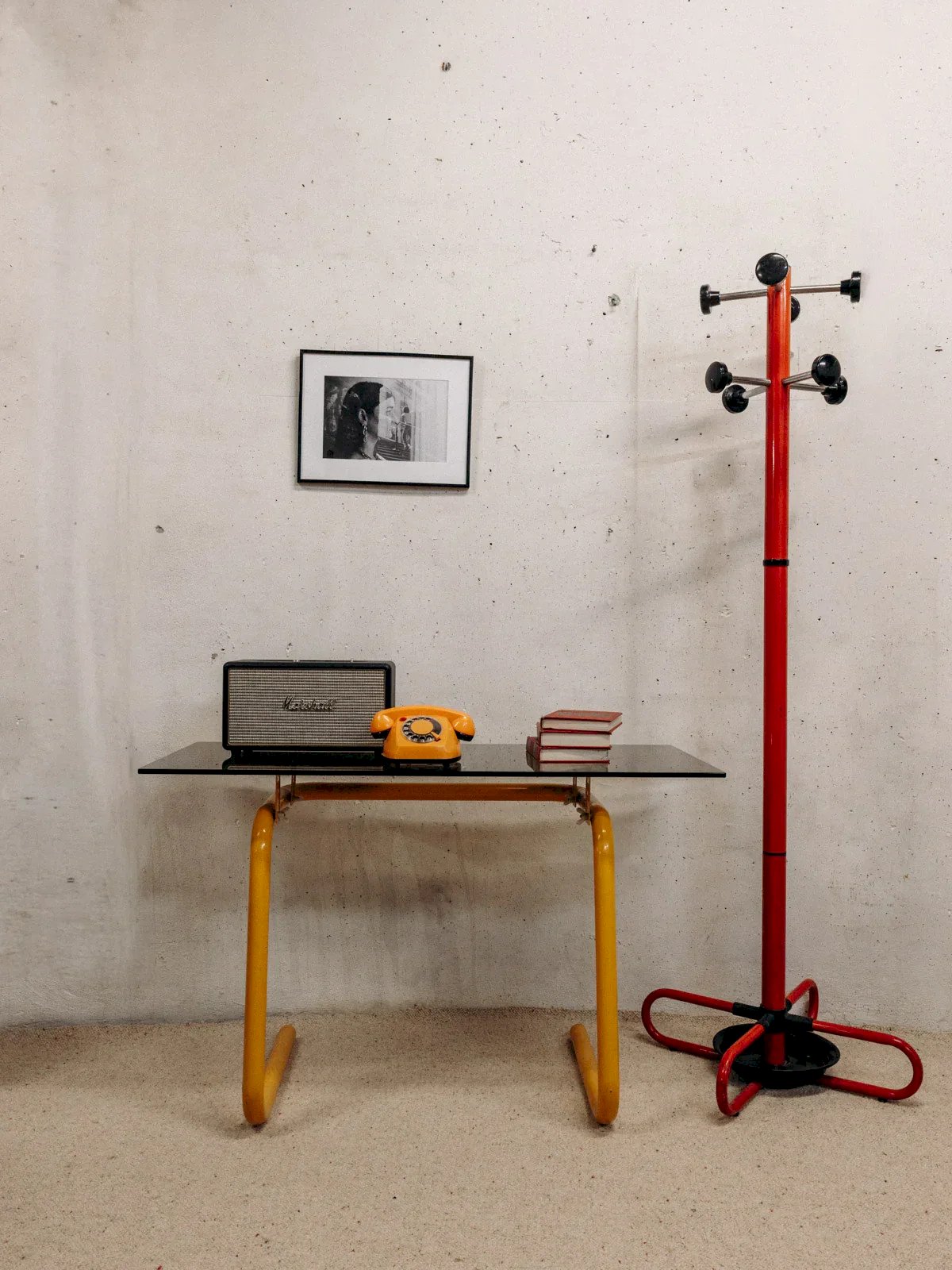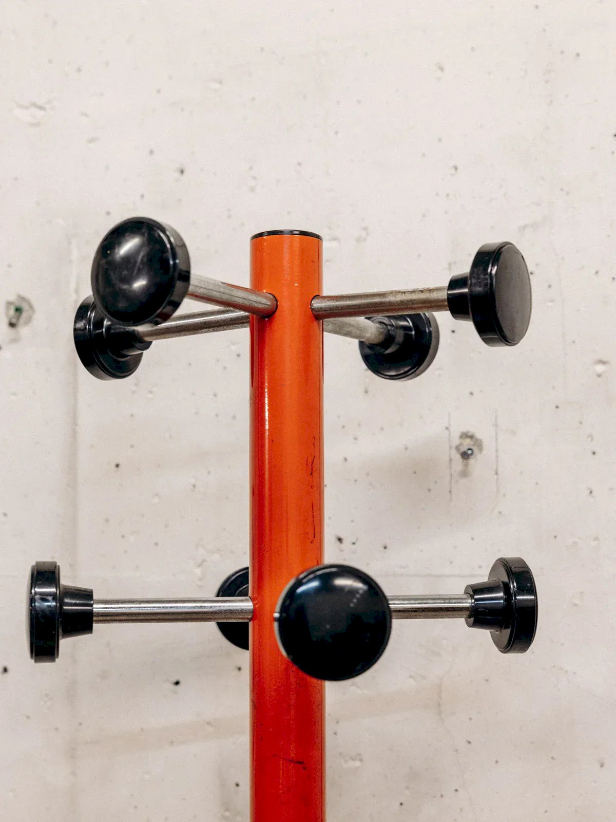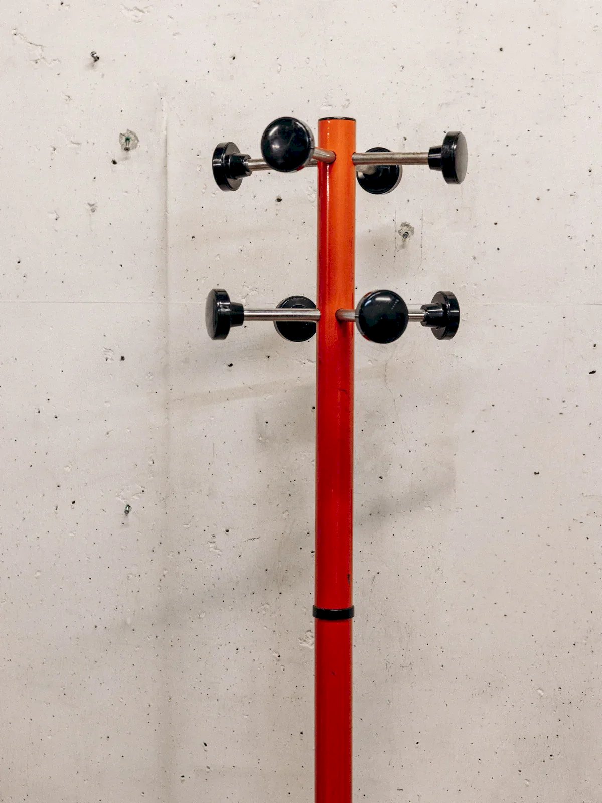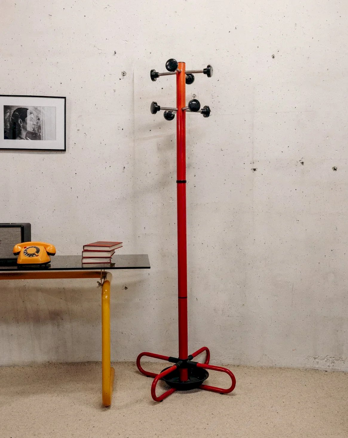 Add a touch of elegance to your entrance with this red and black coat rack, featuring 8 practical hooks. Its contemporary design fits perfectly into any space while providing optimal functionality. Although this item shows some signs of wear, it does not detract from its unique charm. Make your hallway a welcoming and stylish place with this must-have coat rack. Length: 46 cm Width: 46 cm Height: 174 cm A brief history of the coat rack The term "coat rack" appeared in the 18th century, although the concept dates back to antiquity. Initially simple hooks fixed to walls, it evolved into a stylish and functional support, often freestanding. First found in the halls of bourgeois houses, it held coats and hats, quickly becoming an essential element of interior design. Today, coat racks adapt to all styles, combining practicality and aesthetics. Condition: Used item. Item shows some superficial signs of wear, fully operational and working properly. It may be a demonstration model or an item returned to the store after a short period of use, with possible imperfections. Brand: Debongout Type: Thrifted Product Material: Metal Style: Contemporary