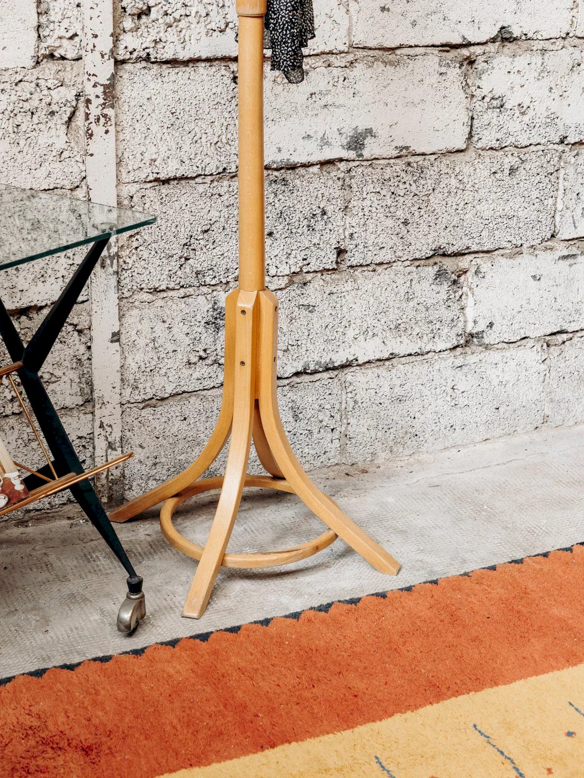 Discover this light wood parrot coat rack, both practical and full of charm. Its flared base ensures good stability while adding a beautiful visual presence. The structure consists of two removable parts, making it easy to transport or store. Perfect for an entryway, a bedroom, or an office with a natural or vintage style. A functional and elegant piece to hang jackets and accessories with style. Length (top): 48 cm Width of the base: 60 cm Height: 79 cm Depth (top): 48 cm Depth of the base: 60 cm A brief history of the coat rack The term "coat rack" appeared in the 18th century, although the concept dates back to antiquity. Initially simple hooks fixed to walls, it evolved into an elegant and functional support, often freestanding. First found in the halls of bourgeois homes, it accommodated coats and hats, quickly becoming an essential element of interior design. Today, coat racks adapt to all styles, combining practicality and aesthetics. Condition: Used: Item that has been used. Item showing some superficial wear marks, fully operational and functioning correctly. It may be a demonstration model or an item returned to the store after a short period of use. Any potential imperfections. Brand: Debongout Type: Vintage product Material: Wood Style: Contemporary