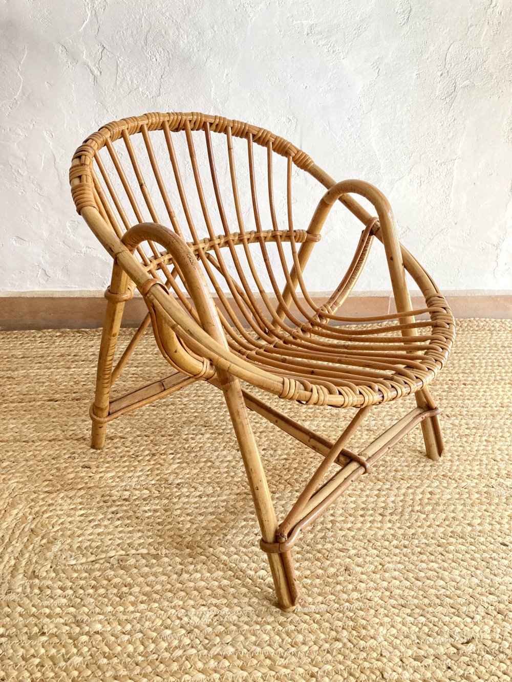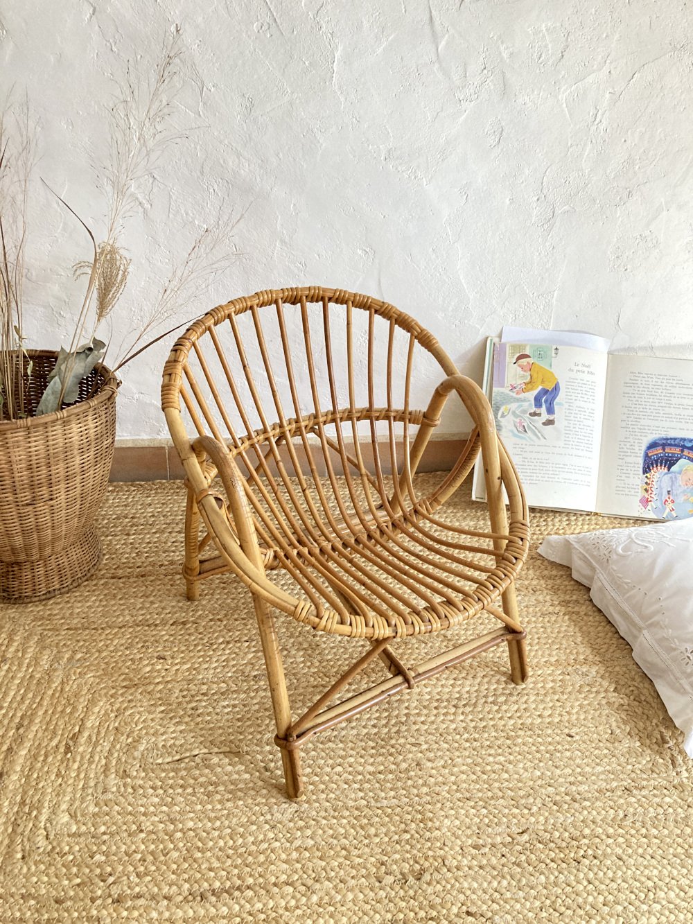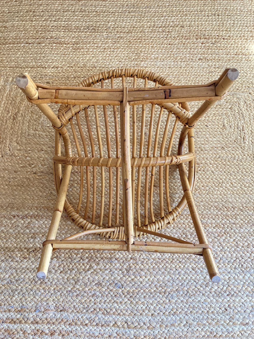 We never get tired of these little rattan chairs for children. Perfectly designed, with beautifully curved lines and in superb condition, it only lacks a small, well-matched cushion to complete its comfort. Softness guaranteed! Nothing to complain about except for a few small drops of varnish on the underside, but that’s just aesthetic (in the photo).