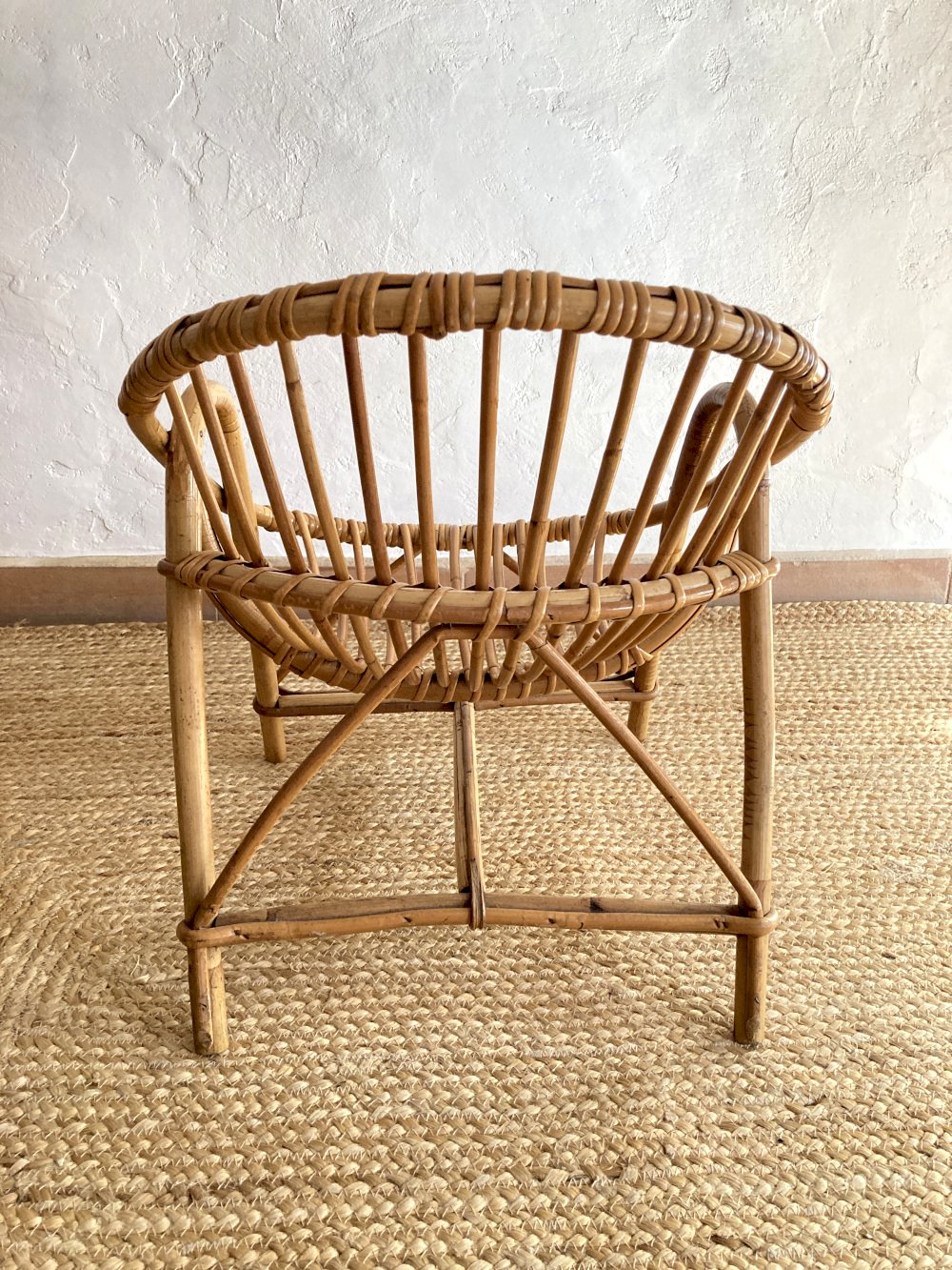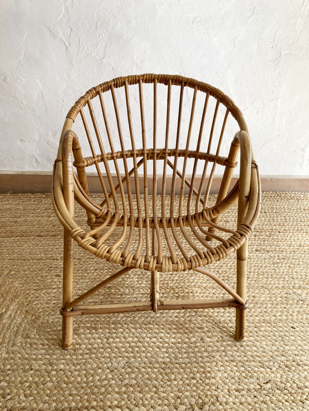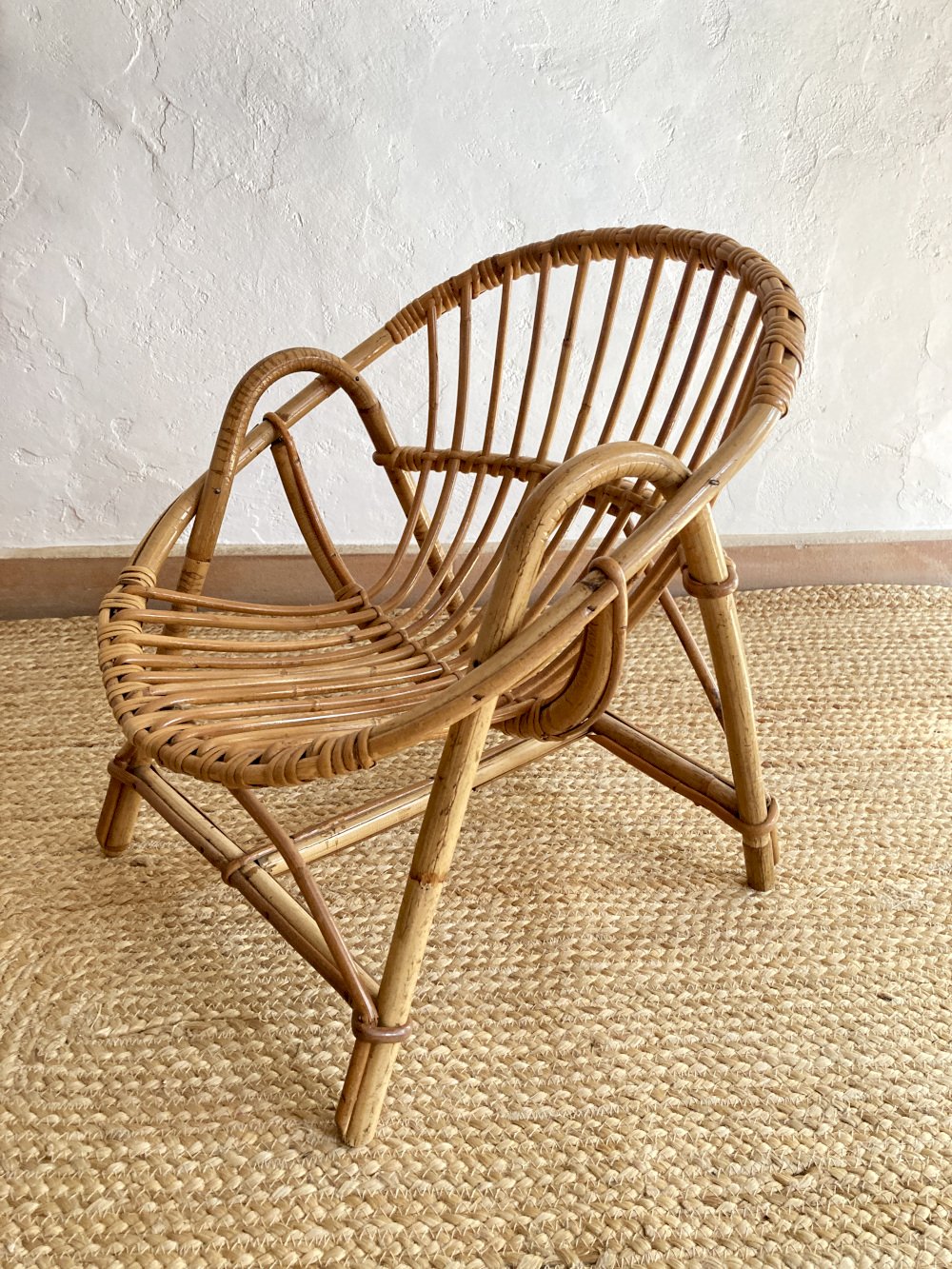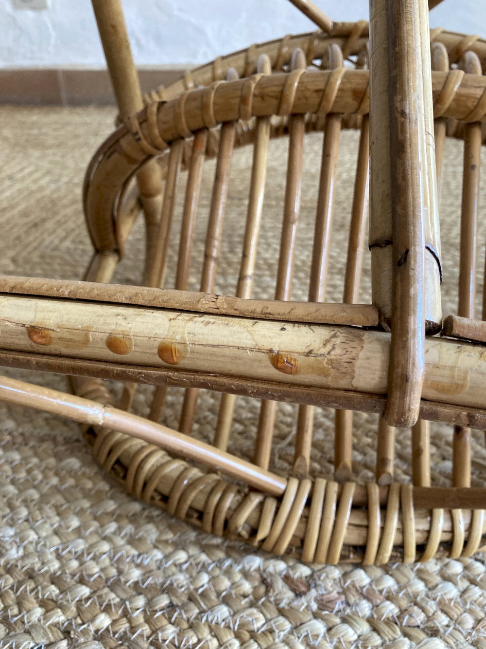 We never get tired of these little rattan chairs for children. Perfectly designed, with beautifully curved lines and in superb condition, it only lacks a small, well-matched cushion to complete its comfort. Softness guaranteed! Nothing to complain about except for a few small drops of varnish on the underside, but that’s just aesthetic (in the photo).
