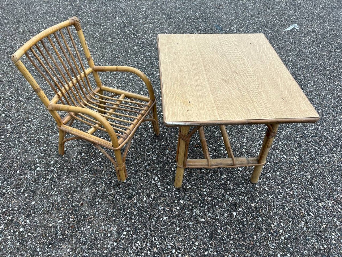 Child's rattan desk and chair
