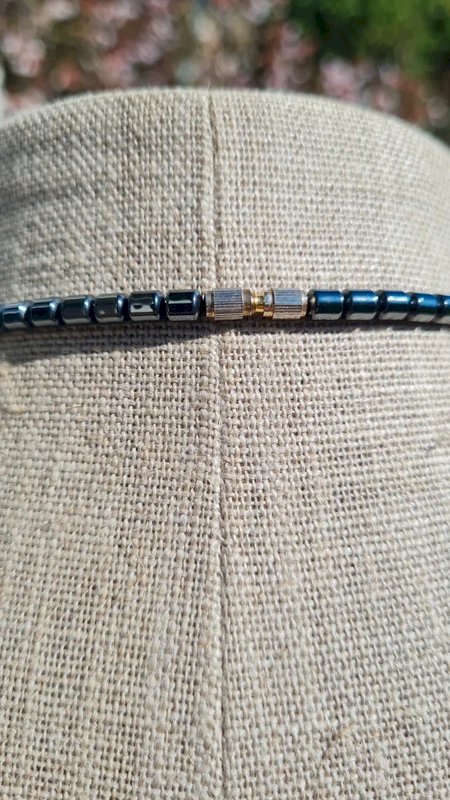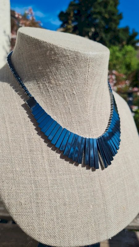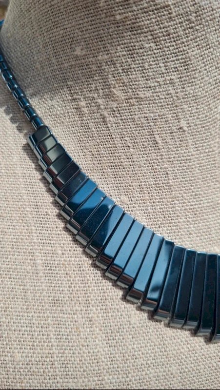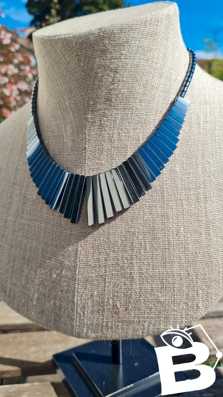 Above €25, please choose a carrier if possible. Take the opportunity to buy in bulk: - 5 items - 10% - 10 items - 20% - 20 items - 30%. Be sure to check the photos for imperfections. Microchips. Hematite necklace dimensions: width: 3.3 cm, neck circumference: 44.5 cm. #necklace #gift #chic #collection #vintage #jewel #stone necklace #lithotherapy #hematite...