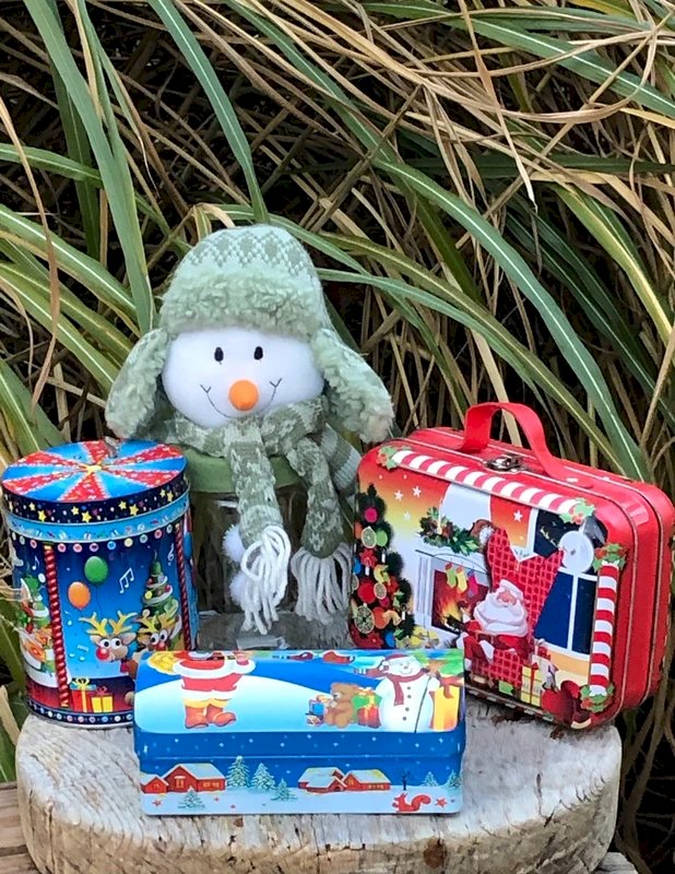 Set of 4 Christmas boxes including 1 music box (the metal round one) Very good condition