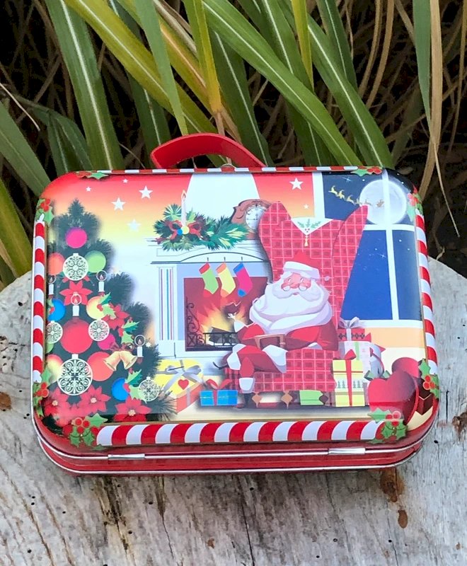Box, opaline barbotine candy box with holly: Santa Claus on his sleigh