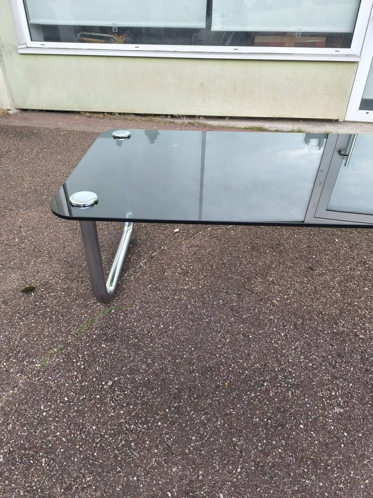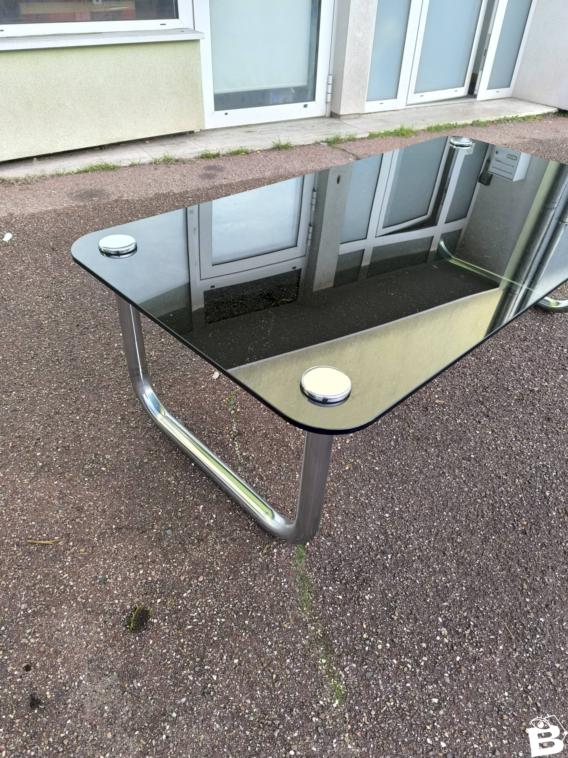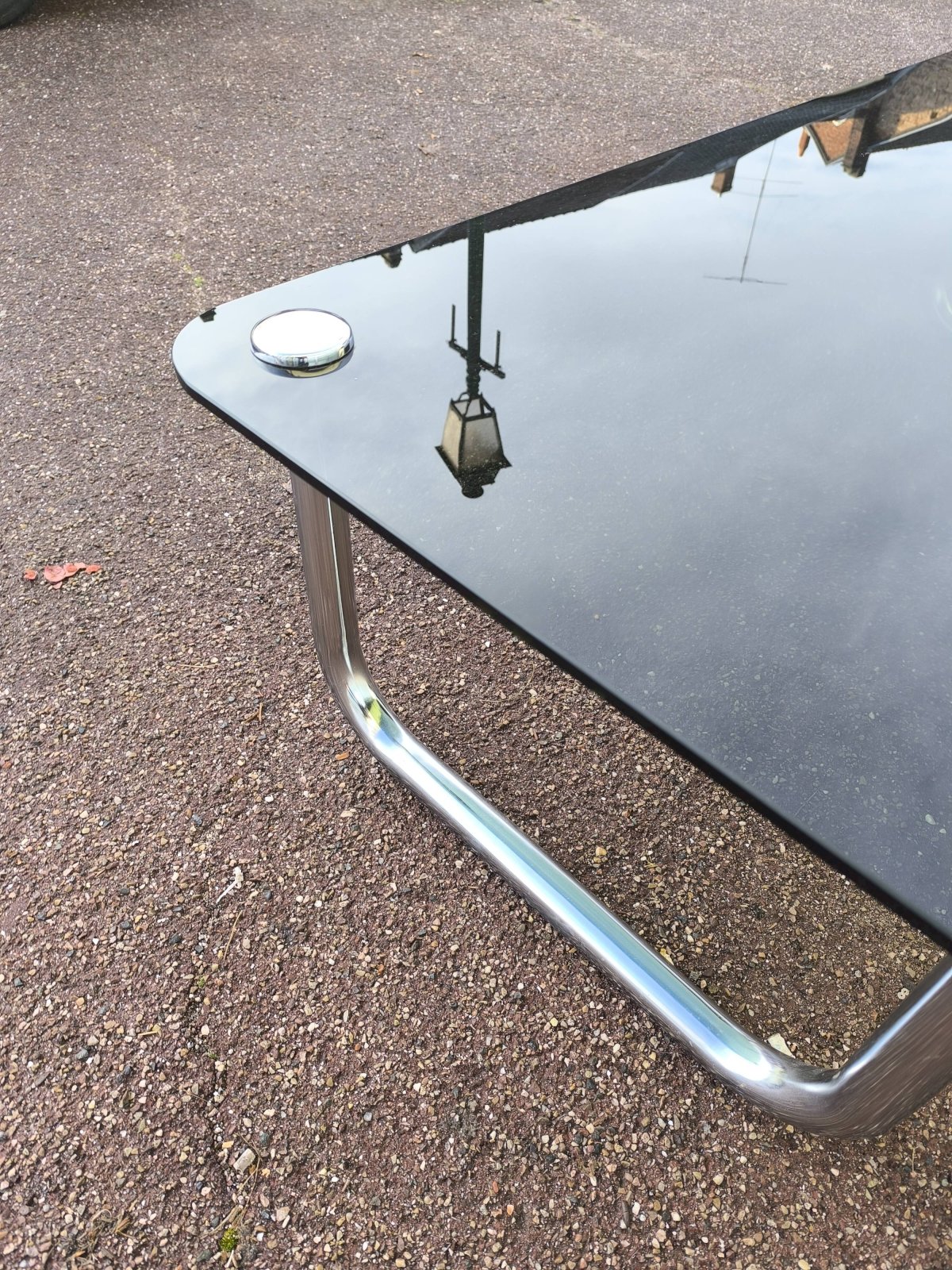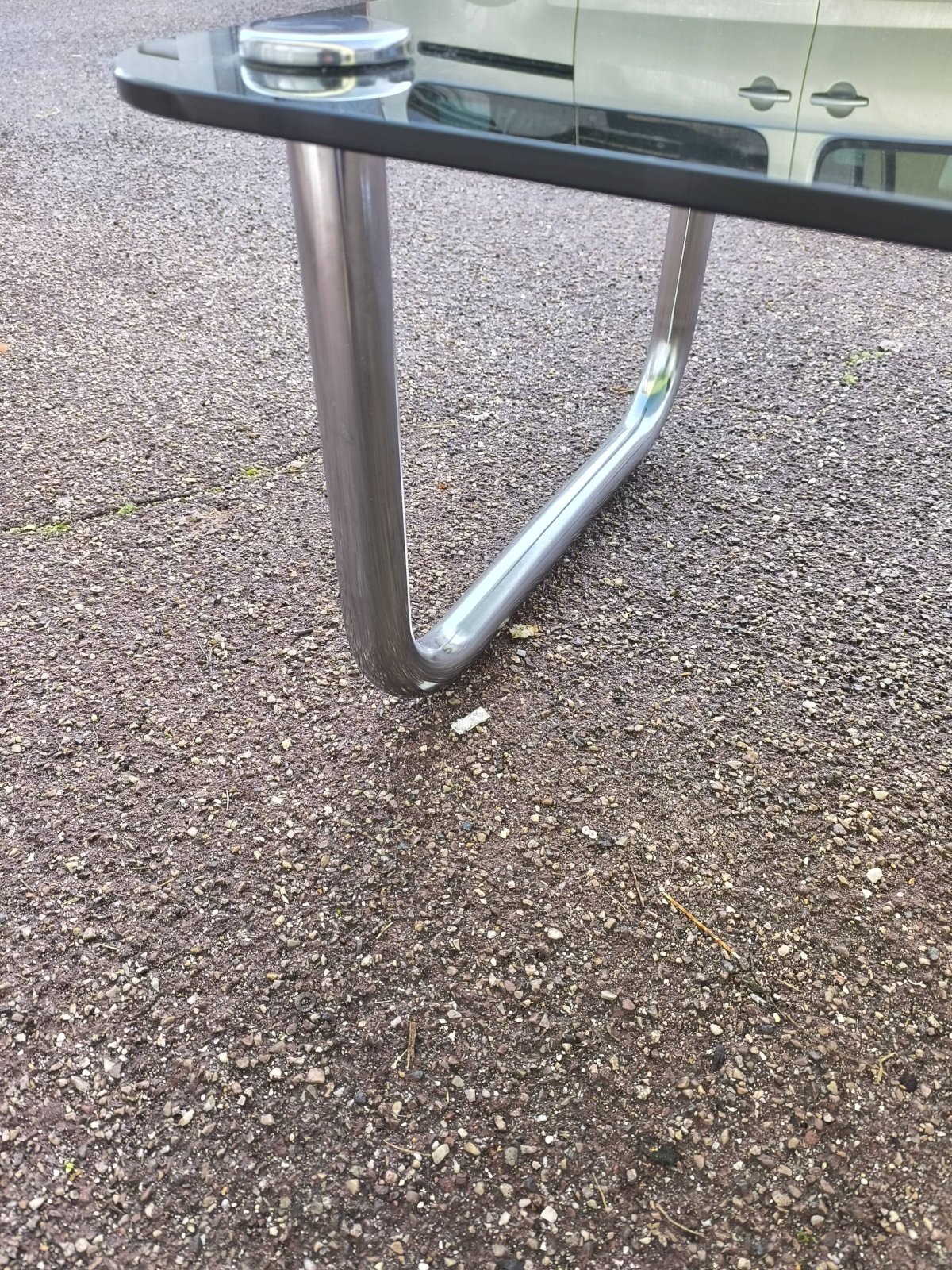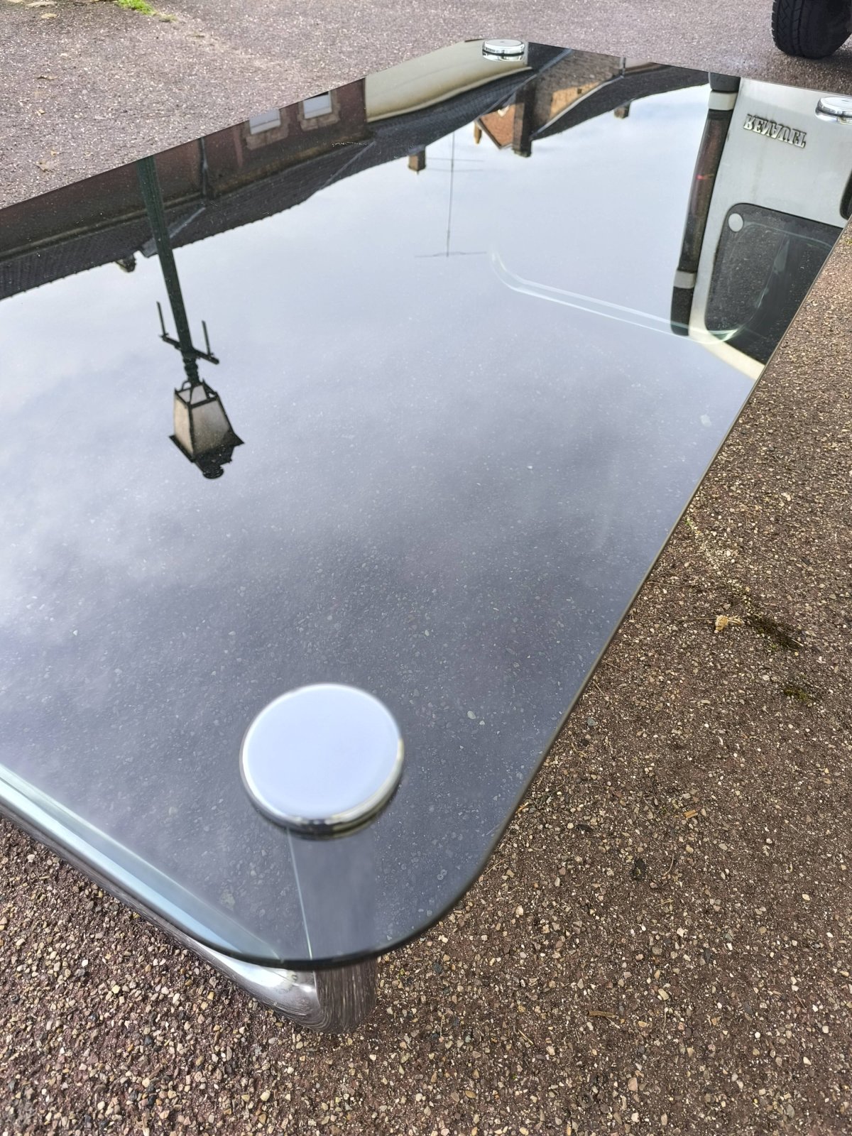 Chrome and smoked black glass coffee table Italian space age Vintage