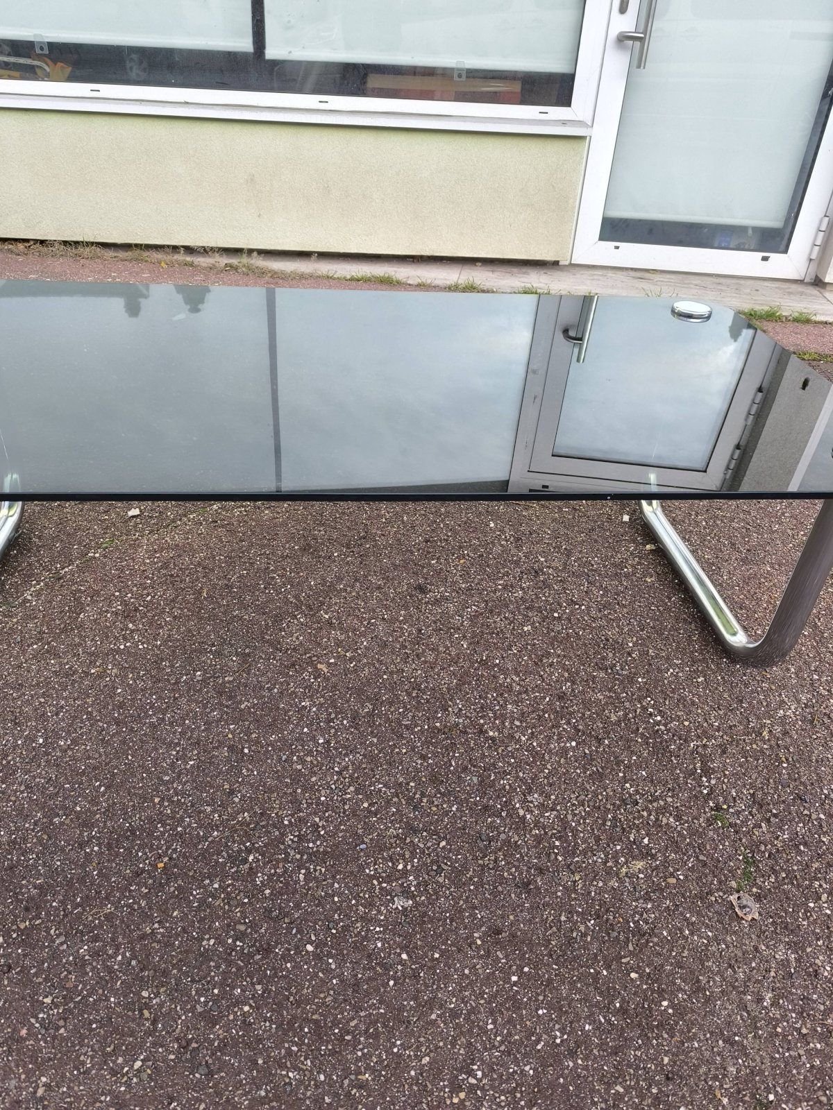 Designer coffee table - large glass top 120 x 120 - in the style of Giovanni Offredi