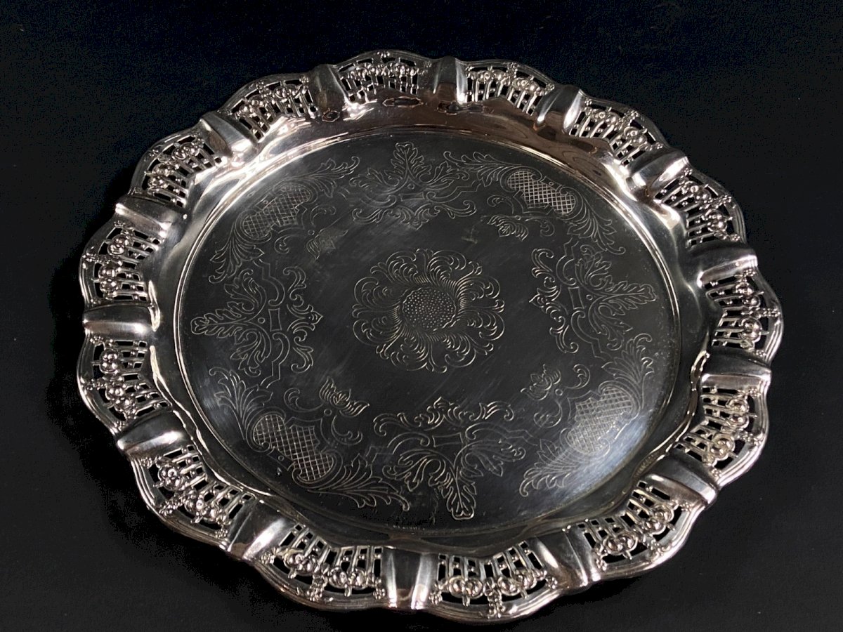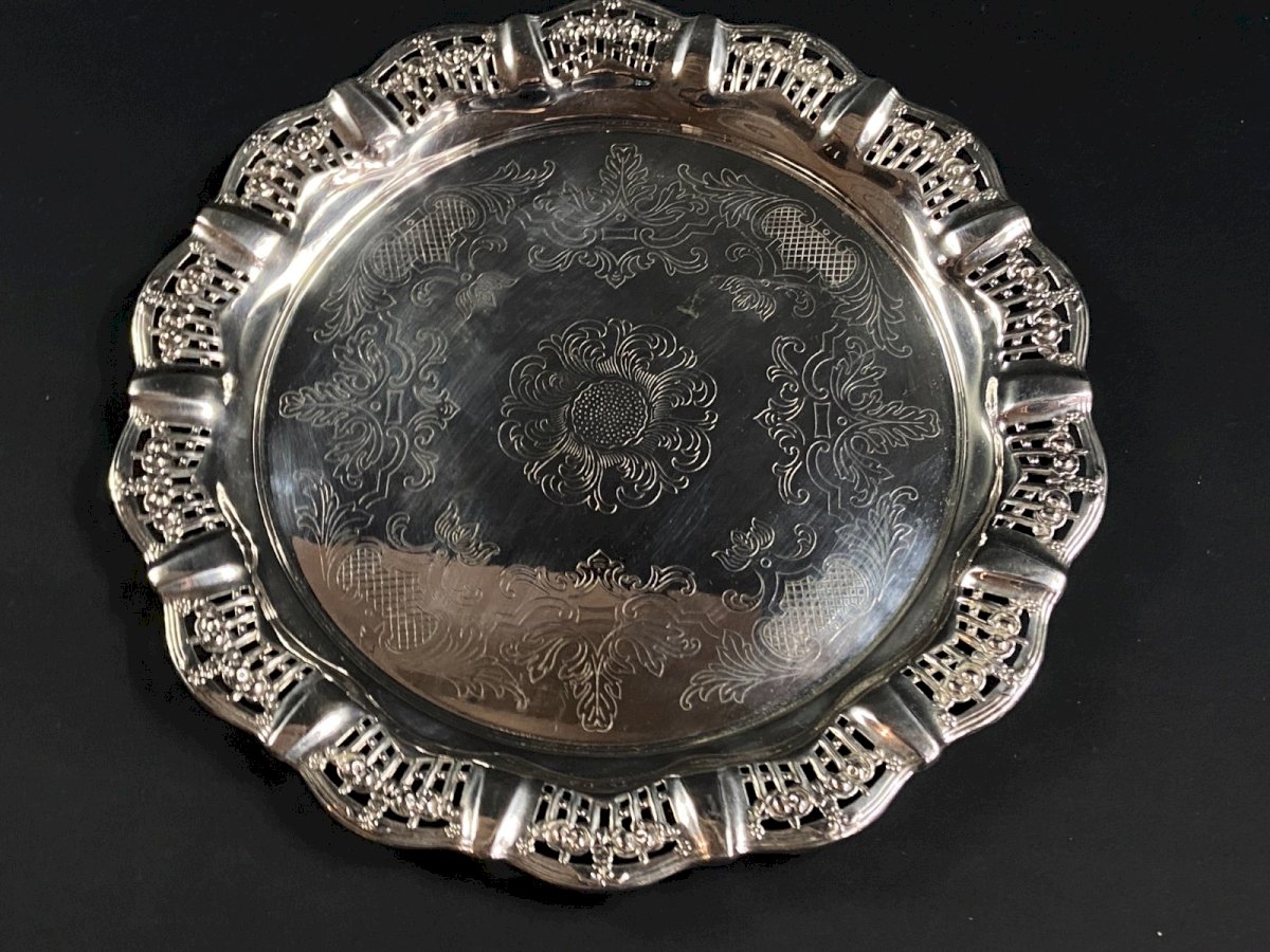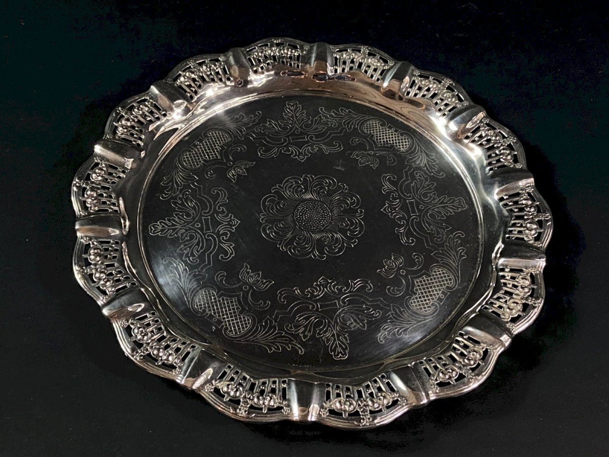 Circular tray with pierced border in Silver Plate Regency style, 20th century. Maximum dimensions: Diameter 33.3 x 2.2 cm. Weight: 447 grams. I will only mention fine usual scratches. Ultra-secure shipping worldwide - Order pickup available by appointment, 7 Rue Notre-Dame, 18000 Bourges. - Possibility of combining items in the same package: please contact me beforehand so I can calculate your optimized shipping costs. Authenticity: Original. Type: Tableware, Kitchen. Origin: United Kingdom. Country of origin: United Kingdom. Subtype: Tray. Material: Silver plate. Style: Regency.
