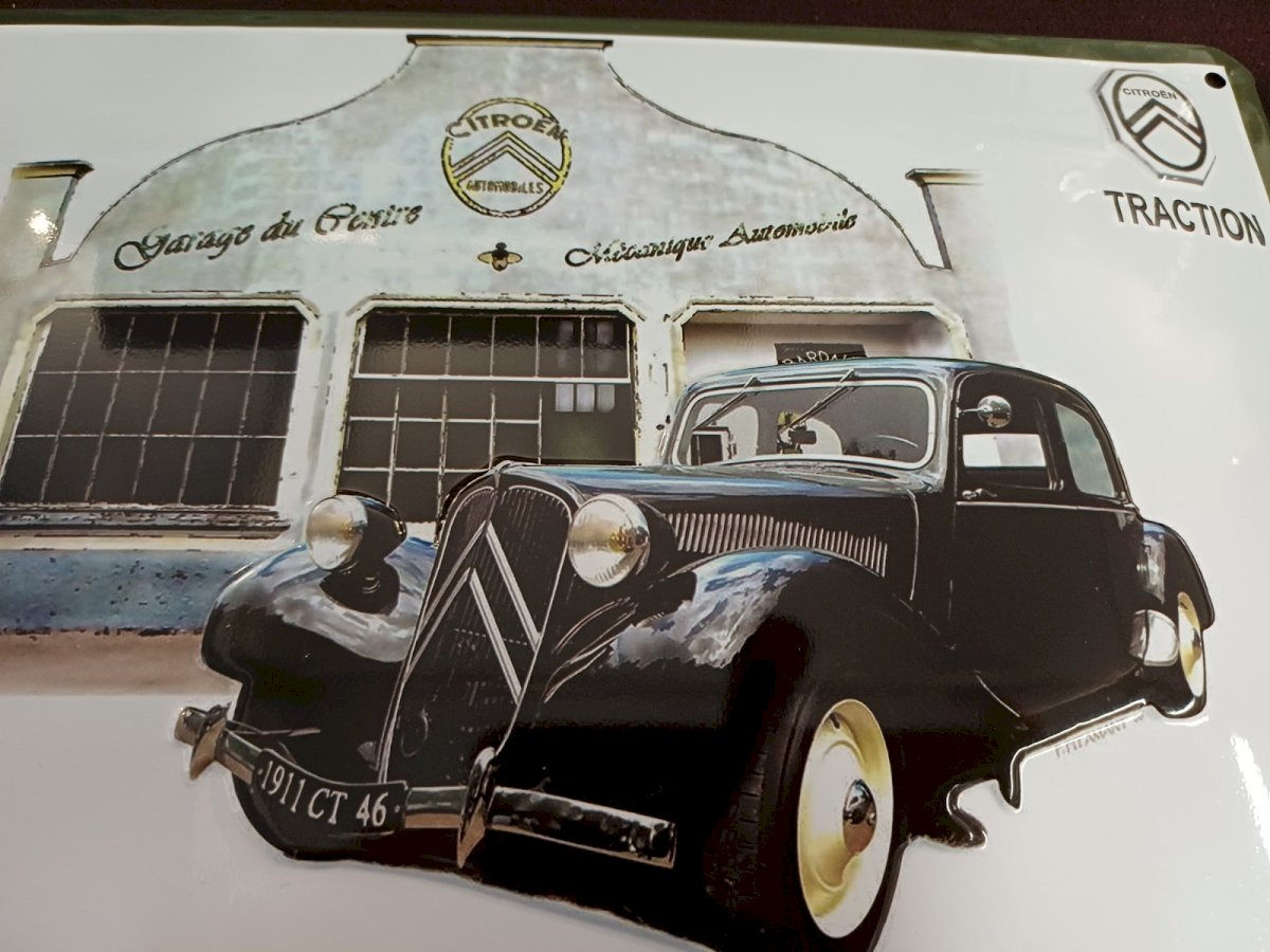 Citroën Traction metal sign reproduction of an old advertisement. Curved metal sign with a relief dimension of 30 x 20 cm. NEW ITEM Official Citroën Condition: New: Item is new and intact, never used, unopened. Check the seller's listing for... New: Item is new and intact, never used, unopened. Check the seller's listing for more details. Original/reproduction: Reproduction Type: Curved sign Origin: Europe Period: 2000s and after Country of origin: France Features: 3D pattern Theme: Automobile Edition: Reissue Shape: Rectangular Product: Citroën