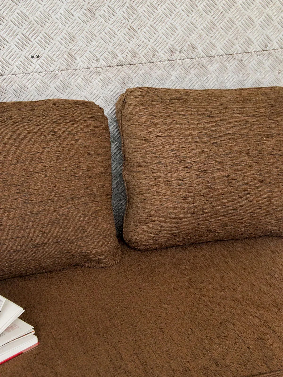 Discover this high bench to be positioned against a wall, ideal for dressing a space with style and sobriety. Its wooden structure blends two tones - light and dark - which contrast beautifully with the brown fabric featuring subtle black details. Mounted on wheels, it moves easily according to your needs. The fabric, in good condition, is not vintage but retains a nice retro look. Some marks on the back testify to its history without detracting from the overall appearance. Length: 194 cm Height: 92 cm Seat height: 49 cm Depth: 88.5 cm Condition: Used: An item that has been used. Item shows some signs of superficial wear... Used: An item that has been used. Item shows some signs of superficial wear, fully operational and functioning properly. It may be a demonstration model or an item returned to the store after a short period of use. The possible imperfections. Color: Multicolored Height: Wood, Fabric Width: Sofas and benches Brand: Debongout Type: Curated product Material: Wood, Fabric Style: Contemporary