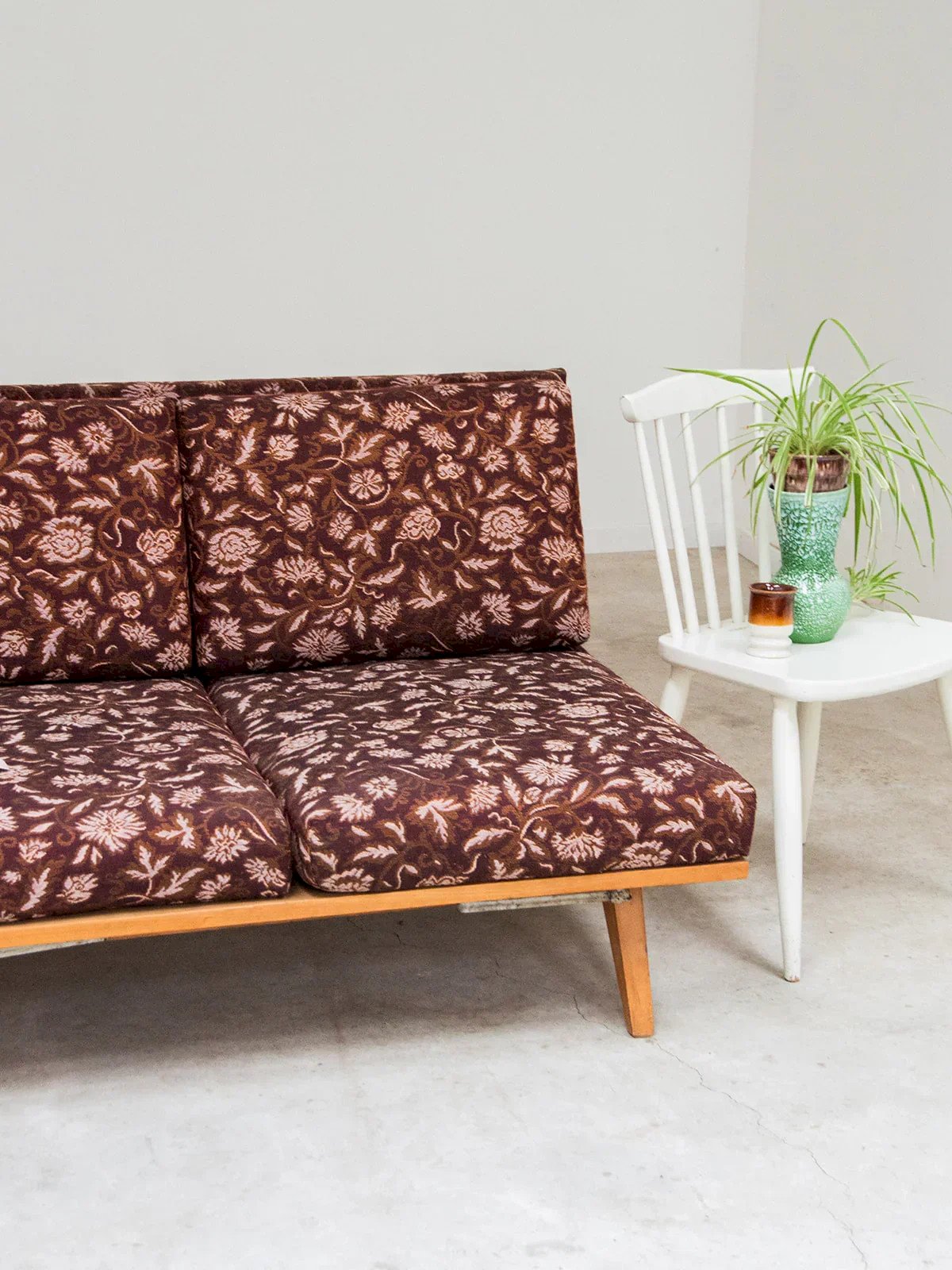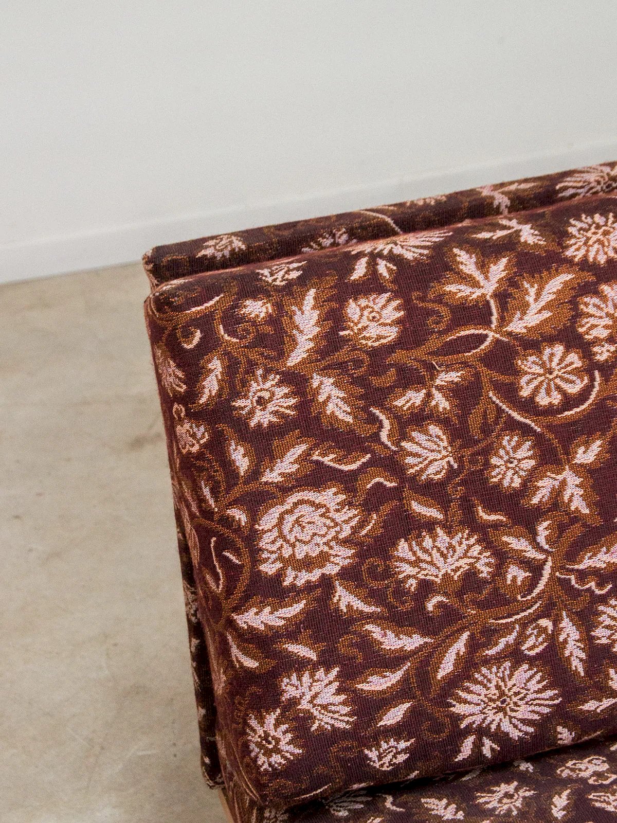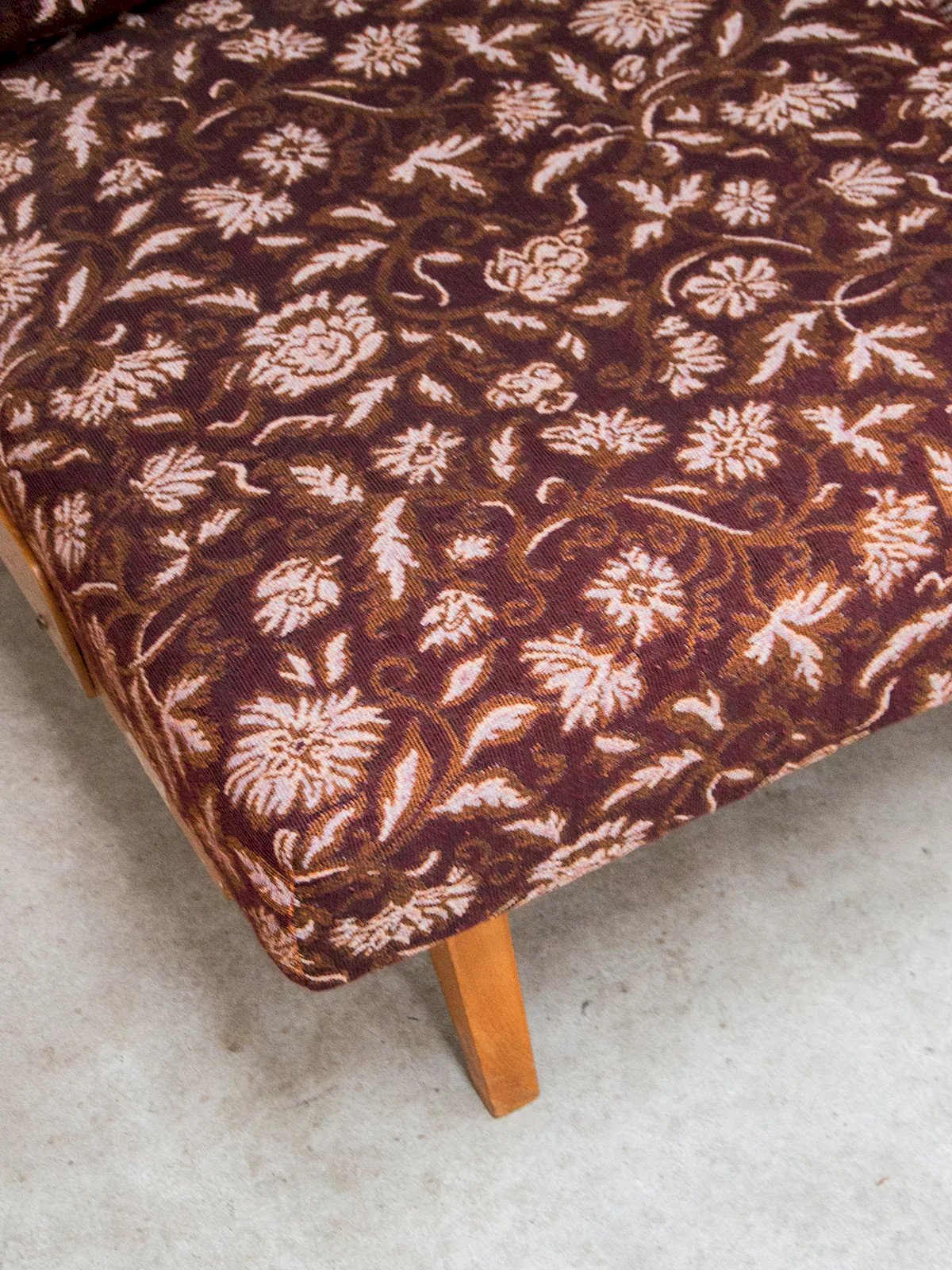 Add a colorful and practical touch to your interior with this light wood bench. Its purple fabric adorned with floral patterns brings charm and elegance, while its foldable design makes it ideal for comfortably hosting guests or relaxing moments. A piece that is both decorative and functional for the living room or bedroom! Length: 188 cm Width: 87 cm Width when opened: 150 cm Height: 80 cm Seat height: 40 cm Seat depth: 68 cm Condition: Used: Item that has been used. Item showing some signs of superficial wear... Used: Item that has been used. Item showing some signs of superficial wear, fully operational and functioning correctly. It may be a demo model or an item returned to the store after a short period of use. any imperfections. Color: Multicolor Height: Fabric, Wood Width: Sofas and benches Brand: Debongout Type: Thrifted product Material: Fabric, Wood Style: Contemporary