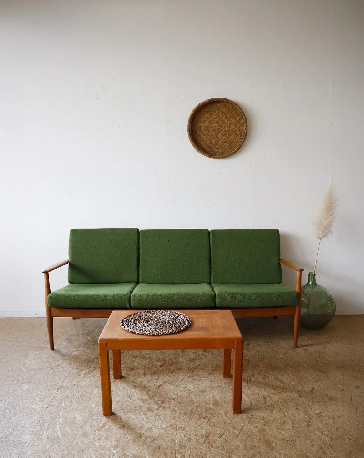 Discover this 1960s Scandinavian teak bench, featuring simple lines and a warm aesthetic. Its patented Free-Span seating system from 1949 ensures soft and durable comfort, while its generous dimensions comfortably accommodate two to three people. The original green cushions add an authentic touch of color and a plush seat, ideal for a bright living room or an inviting bedroom. Its natural patina gives it a discreet and timeless elegance. Length: 183 cm Width: 72 cm Height: 80 cm Seat depth: 52 cm Seat width: 163 cm Condition: Used: Item has been used. Item shows some superficial signs of wear, fully operational and functioning properly. It may be a demonstration model or a returned item after a short period of use. The possible imperfections. Color: Multicolor Height: Teak Width: Sofas and benches Brand: Debongout Type: Vintage product Material: Teak Style: Contemporary