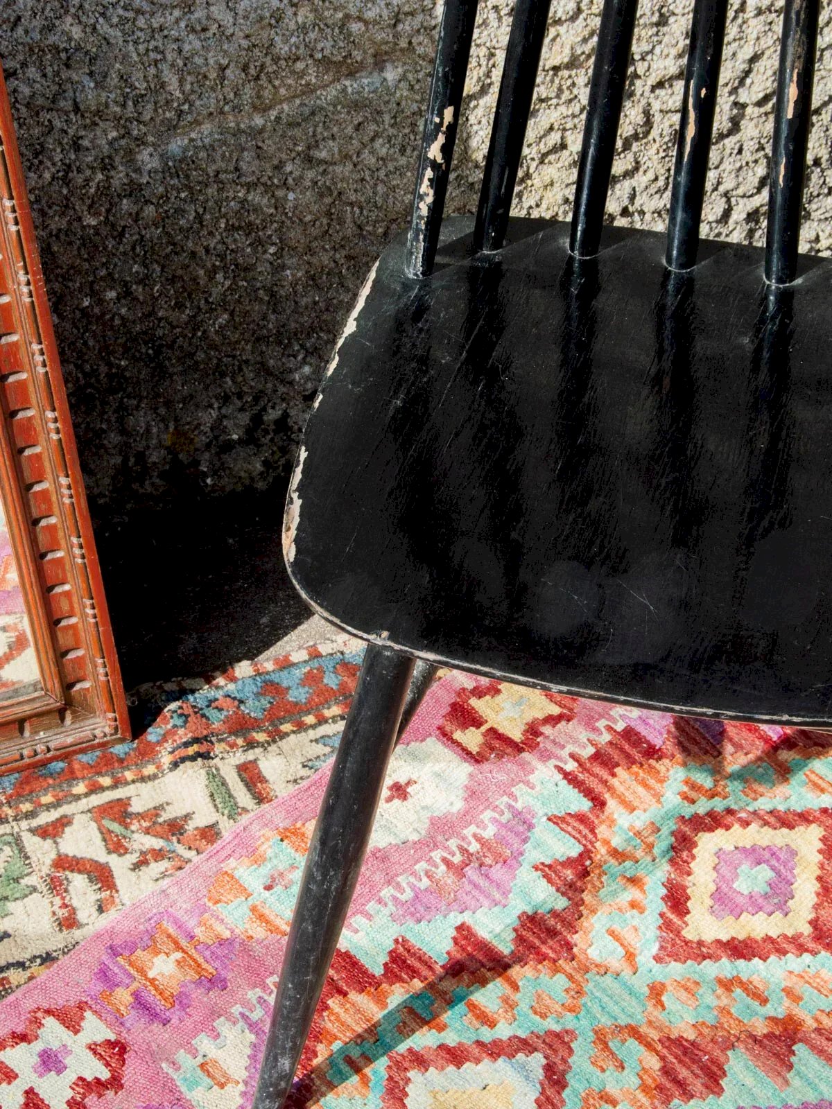 Discover this elegant black wooden chair with an 8-slat backrest, blending style and character. Although slight wear shows the passage of time, these imperfections add a unique charm to this piece. Perfectly suited to bring a vintage touch to your interior, it will find its place in both a dining room and a reading nook. Embrace this timeless-looking chair for a warm and welcoming atmosphere. Sold individually, 10 units are available! Length: 41 cm Width: 41 cm Height: 83 cm Seat height: 44 cm Condition: Used: Item that has been used. Item with some superficial signs of wear, fully operational and functioning correctly. It may be a demonstration model or an item returned to the store after a short period of use. Possible imperfections. Color: Multicolor Height: Wood Width: Chairs Brand: Debongout Type: Vintage product Material: Wood Style: Country
