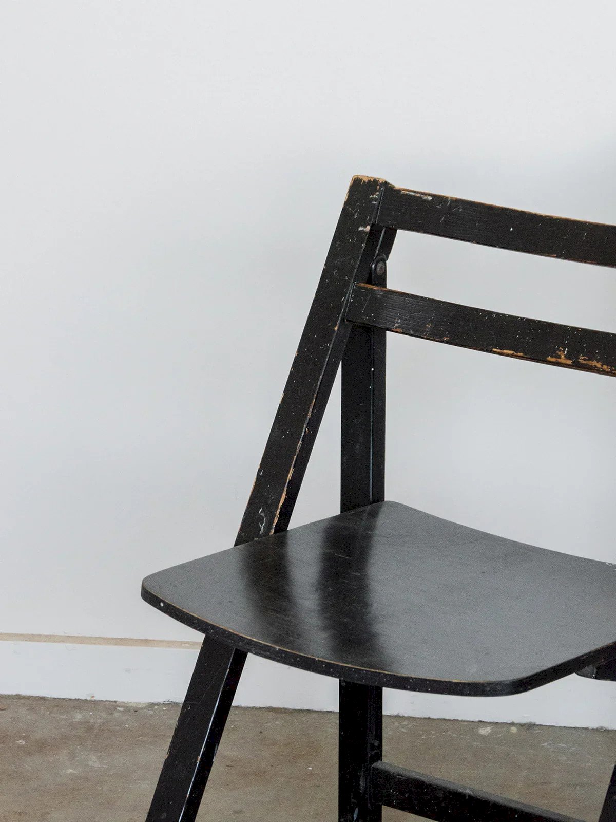 Invite this black folding chair made of wood, with a sleek design and fine proportions that easily integrate into contemporary interiors. Practical and lightweight, it folds in one motion to free up space, ideal in sets of four for spontaneous meals or intimate terraces. The seat and backrest offer simple comfort, while the black finish adds a subtle and adaptable elegance. A versatile choice for small spaces and convivial moments. Length: 41 cm Height: 77 cm Seat height: 47 cm Depth: 42 cm Condition: Used: Item has been used. Item shows some superficial signs of wear, fully operational and functioning correctly. It may be a demonstration model or an item returned to the store after a short period of use. any imperfections. Color: Multicolor Height: Wood Width: Chairs Brand: Debongout Type: Vintage product Material: Wood Style: Country
