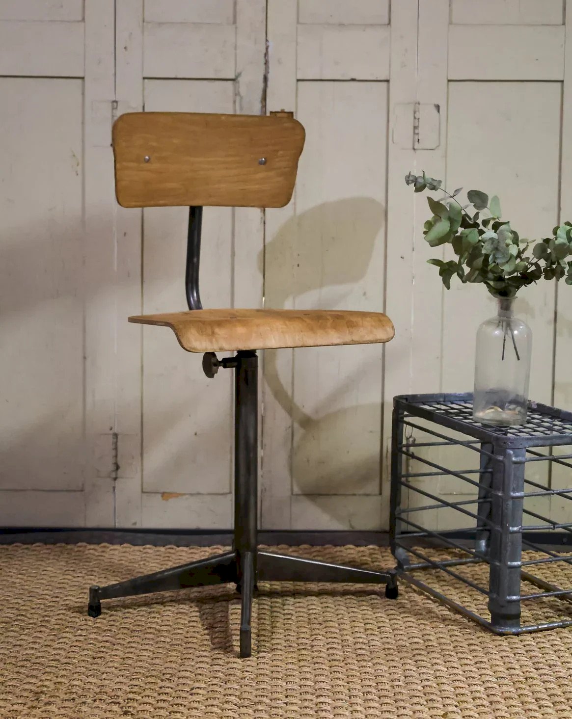Adopt this wooden and metal workshop chair with a straight profile and a high seat designed for comfortable posture, its high back supporting the back prominently. Its industrial silhouette, sober and functional, fits well with both a dining table and a creative desk. The combination of warm wood and metal legs ensures robustness and elegance, bringing a revamped workshop atmosphere to your interior. Height: 86 cm Seat height: 51 cm Seat diameter: 35 cm Condition: Used item. Item that has been used. Item shows some superficial signs of wear, fully operational and functioning properly. It may be a demonstration model or an item returned to the store after a short period of use. Any imperfections. Color: Multicolor Height: Metal, Wood Width: Chairs Brand: Debongout Type: Vintage product Material: Metal, Wood Style: Country