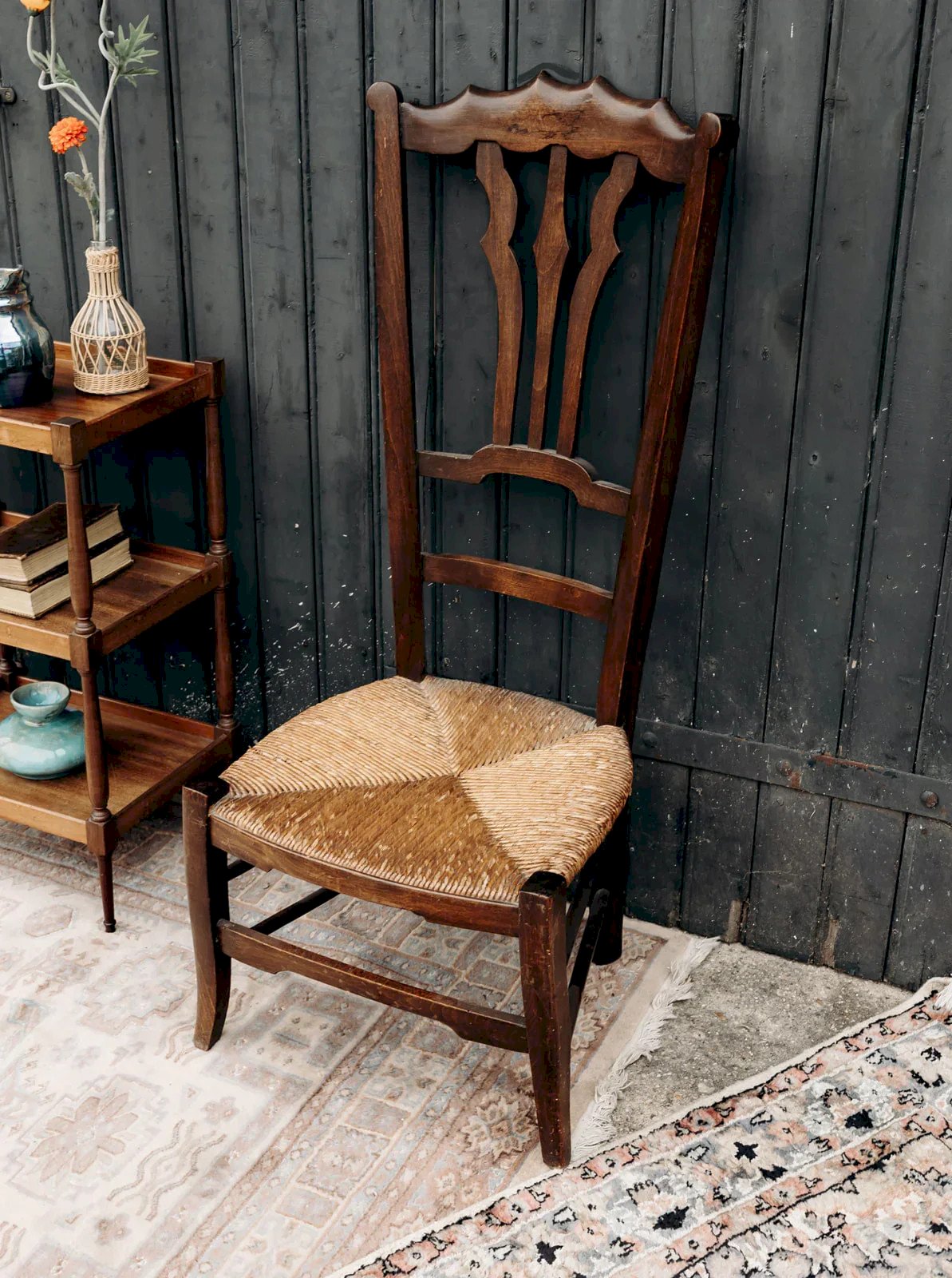 Add a touch of authenticity to your interior with this vintage wooden chair, exuding timeless charm. Its natural straw seat offers comfort and authenticity, while its sturdy structure ensures durability and stability. An elegant piece that combines traditional style and functionality, perfect for enhancing your decor with character. Length: 43 cm Width: 43 cm Height: 106 cm Seat height: 34 cm Condition: Used: Item has been used. Item shows some signs of superficial wear, ...Used: Item has been used. Item shows some signs of superficial wear, fully operational and functioning correctly. It may be a demonstration model or an item returned to the store after a short period of use, with possible imperfections. Color: Multicolor Height: Wood Width: Chairs Brand: Debongout Type: Thrifted product Material: Wood Style: Country
