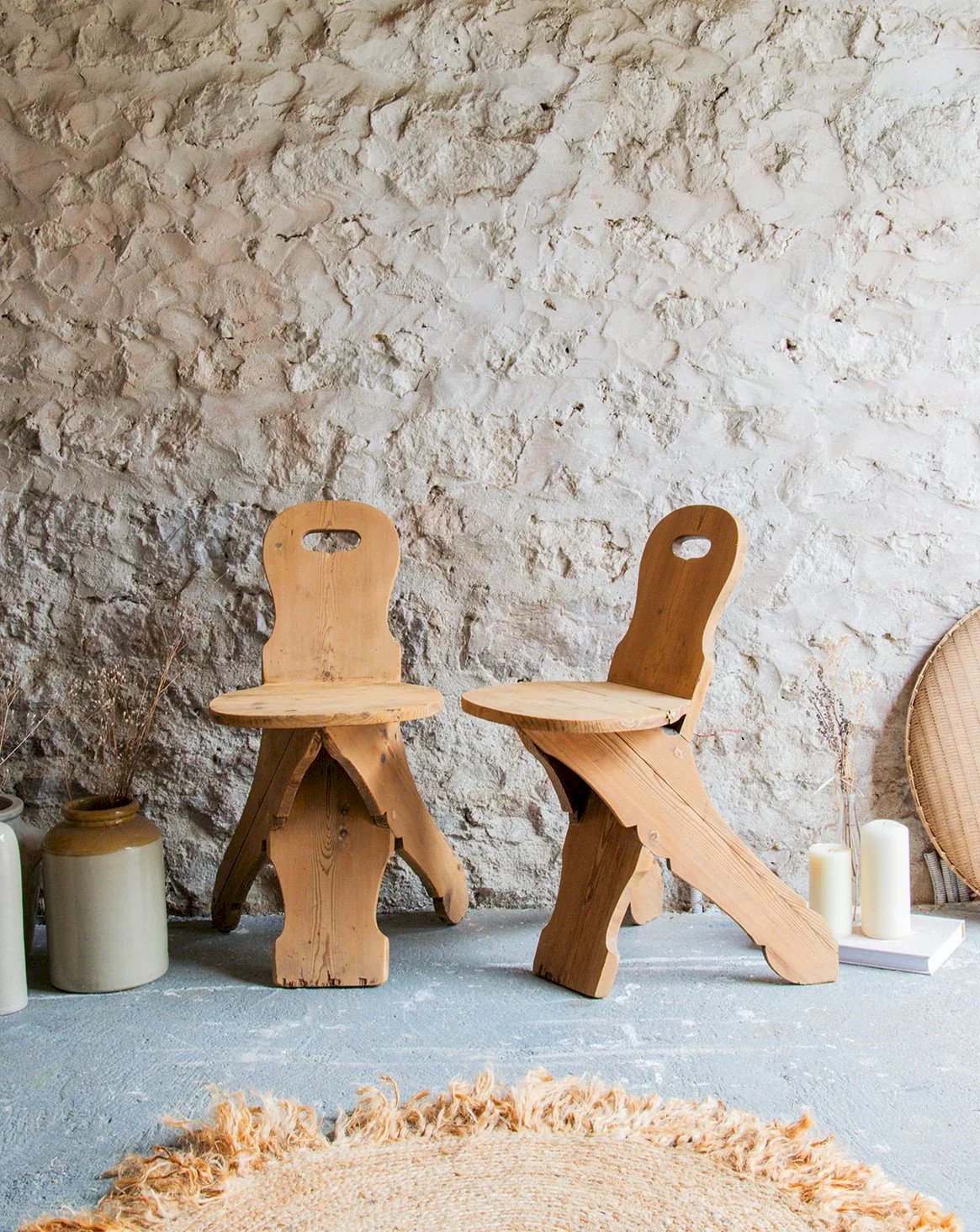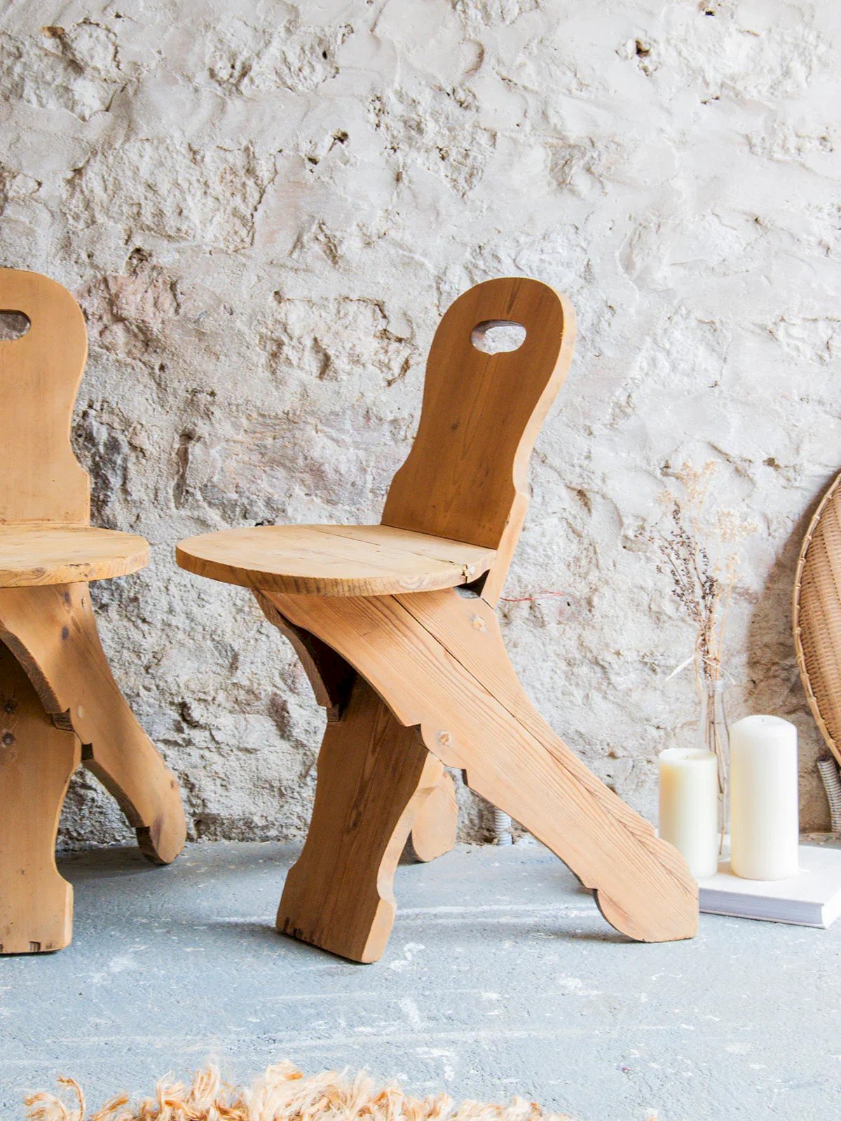 Treat yourself to this pair of rustic chairs, combining elegance and comfort. With their small rounded backrests, they add a touch of charm to your interior while providing pleasant support. Made from quality materials, these chairs are ideal for creating a friendly atmosphere in your dining room or kitchen. Their timeless design will appeal to fans of authentic decor. Online exclusive, delivery will be made to your home! Length: 35 cm Width: 39 cm Height: 73 cm Seat height: 44 cm Condition: Used: Item has been used. Item shows some superficial signs of wear... Used: Item has been used. Item shows some superficial signs of wear, fully operational and functioning correctly. It may be a demonstration model or an item returned to the store after a short period of use, along with any possible imperfections. Color: Multicolor Height: Wood Width: Chairs Brand: Debongout Type: Vintage product Material: Wood Style: Country