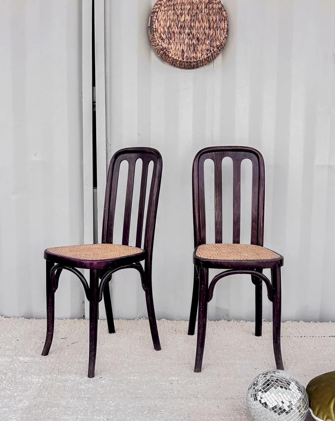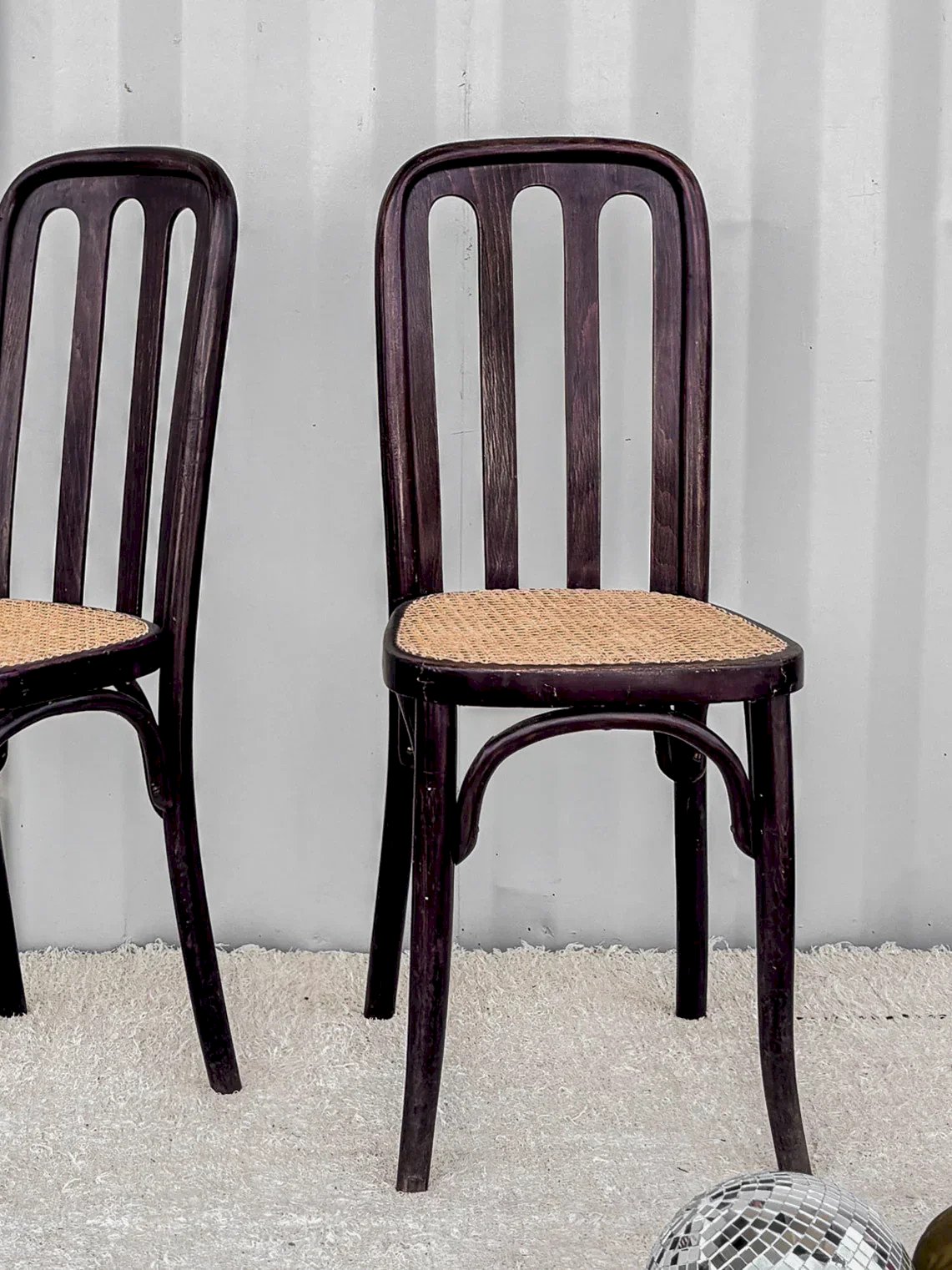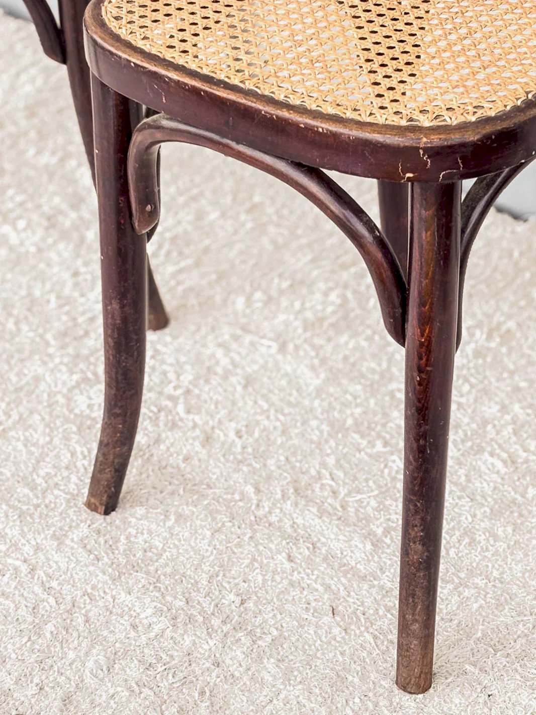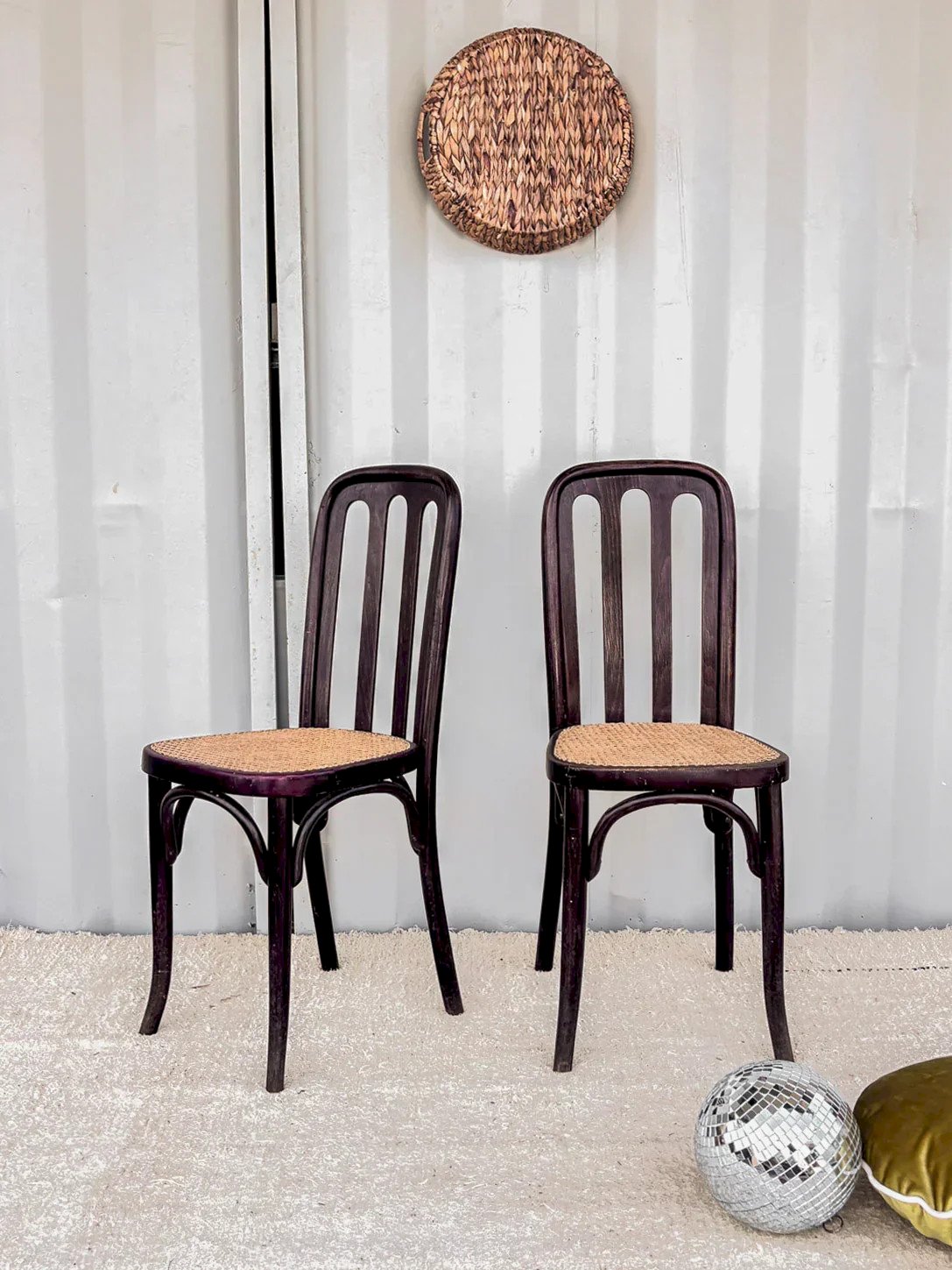 Discover our pair of vintage Thonet chairs, a timeless classic that combines elegance and comfort. With their delicately woven cane seat, these chairs add a touch of timeless charm to your interior. Crafted with artisanal expertise, they stand out with their curved wooden structure, emblematic of the Thonet style. Ideal for a dining room or an office, they will enhance your space while offering optimal comfort. Add a note of sophistication to your décor with this iconic piece! Width: 36.5 cm Height: 92 cm Seat height: 46.5 cm Depth: 40 cm Condition: Used: Item that has been used. Item showing some signs of superficial wear ... Used: Item that has been used. Item showing some signs of superficial wear, fully operational and functioning correctly. It may be a demonstration model or an item returned to the store after a short period of use, with possible imperfections. Color: Multicolor Height: Wood Width: Chairs Brand: Debongout Type: Vintage product Material: Wood Style: Country