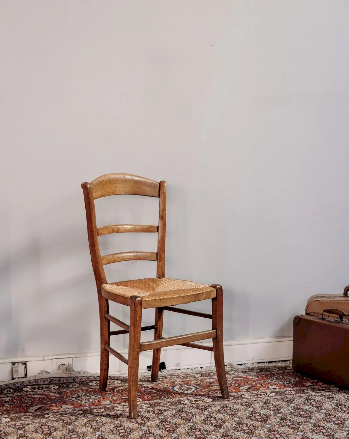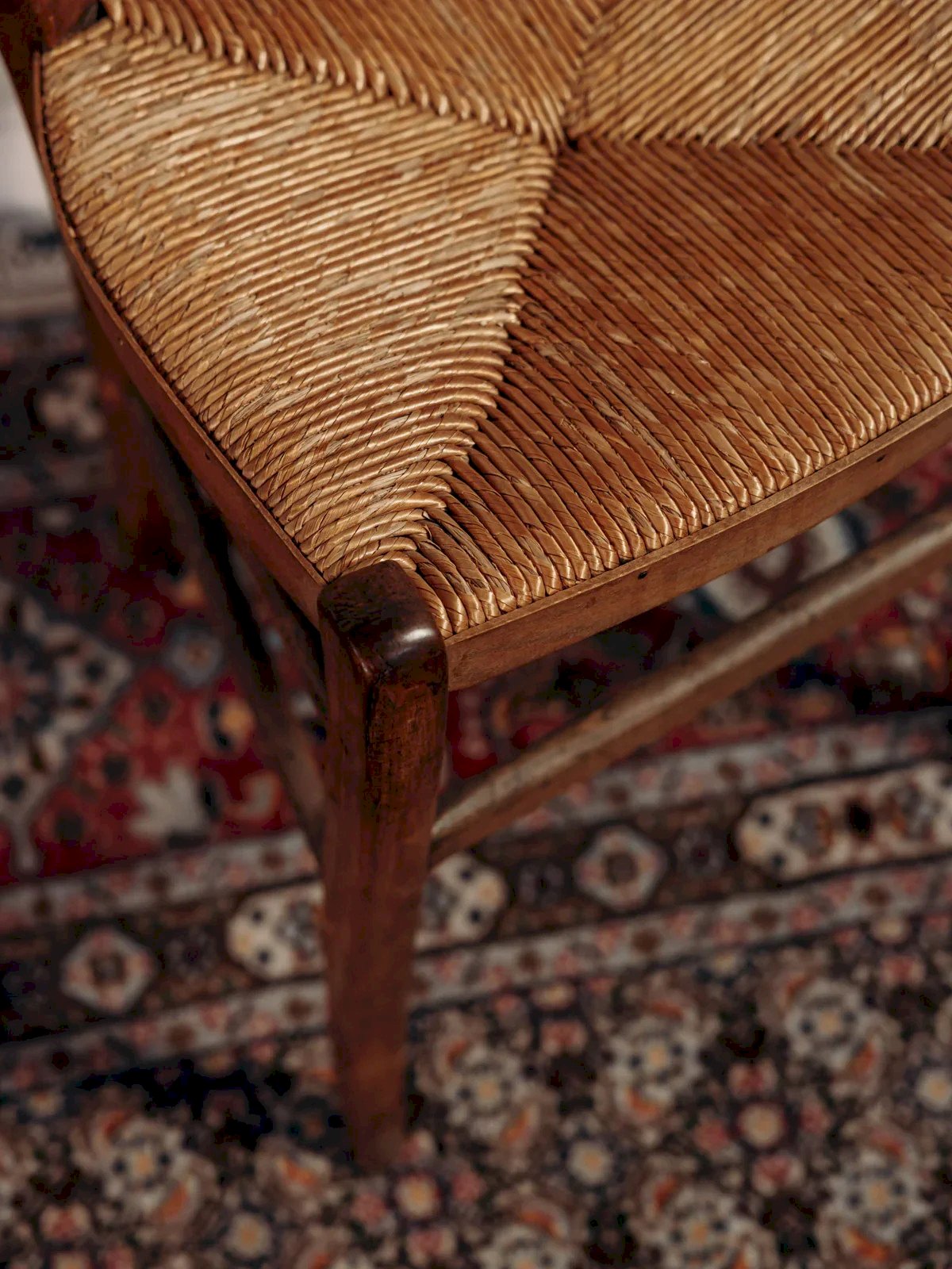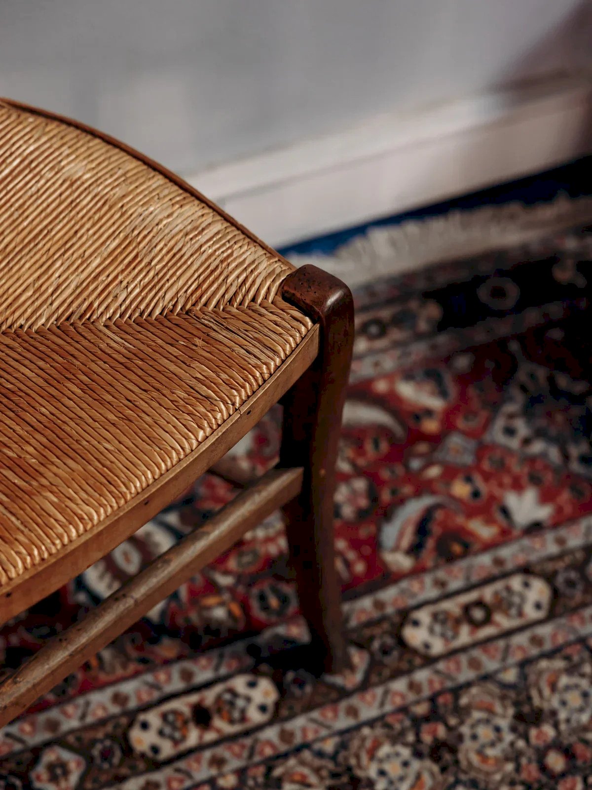 Adopt this light wood bistro chair with a straw seat, featuring simple and warm charm. Its slender silhouette and two-bar backrest provide discreet comfort and an authentic look, perfect for a kitchen table or in a coffee corner. The light wood and woven straw bring a natural and bright touch, easy to integrate into a contemporary or chic country interior. Its compact proportions make it ideal for small spaces. Length: 40 cm Width: 36 cm Height: 86 cm Seat height: 44 cm Condition: Used: Item has been used. Item shows some signs of superficial wear, fully operational and functioning correctly. It may be a demonstration model or an item returned to the store after a short period of use. Any imperfections. Color: Multicolor Height: Wood, Straw Width: Chairs Brand: Debongout Type: Vintage product Material: Wood, Straw Style: Country