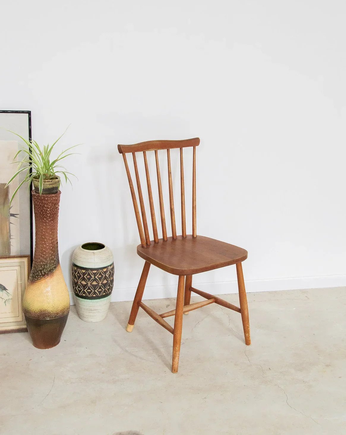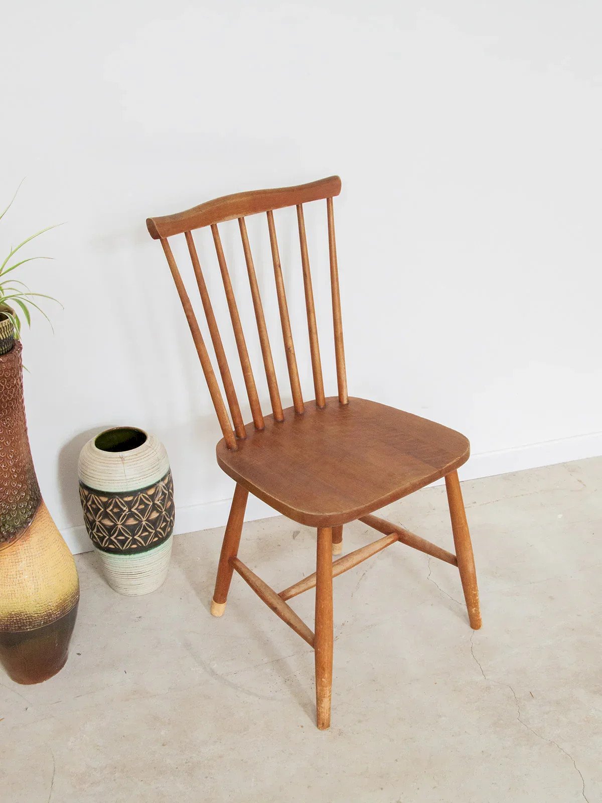Offer this uniquely charming wooden chair, featuring an airy backrest that provides optimal support. Although showing some signs of wear, these marks testify to its history and add to its unique character. Perfect for creating a warm atmosphere in your home or garden, it combines elegance and functionality. Don't miss the opportunity to add this timeless piece to your decor! Sold individually, 8 quantities are available. Online exclusive, the meeting will take place at your home! Length: 41 cm Width: 40 cm Height: 86 cm Seat height: 44 cm Condition: Used: Item that has been used. Item showing some superficial signs of wear, ... Used: Item that has been used. Item showing some superficial signs of wear, fully operational and functioning properly. It may be a demonstration model or an item returned to the store after a short period of use. any possible imperfections. Color: Multicolored Height: Wood Width: Chairs Brand: Debongout Type: Vintage product Material: Wood Style: Country