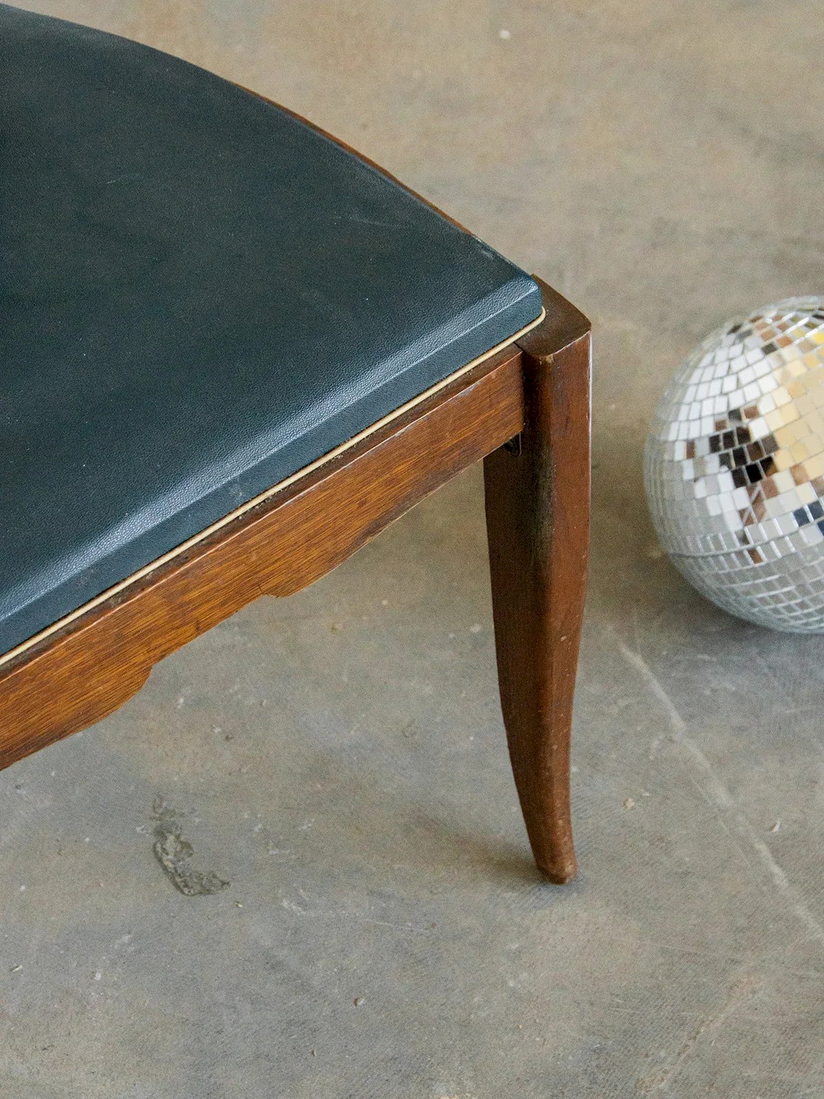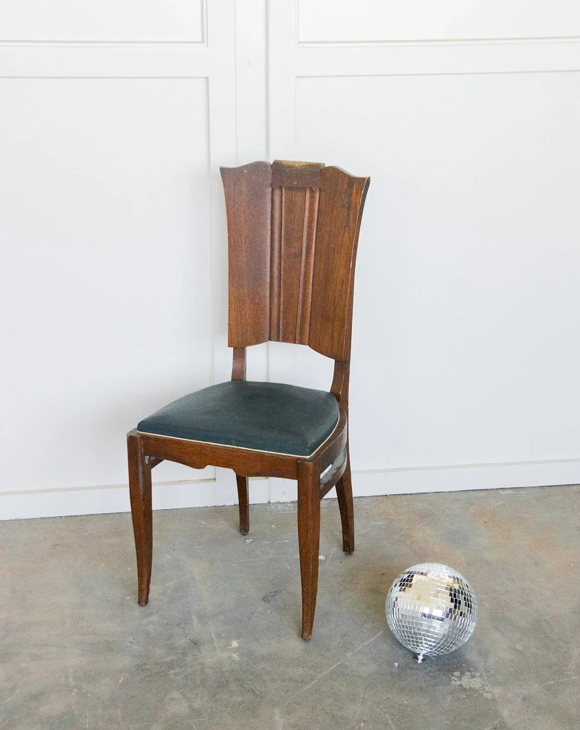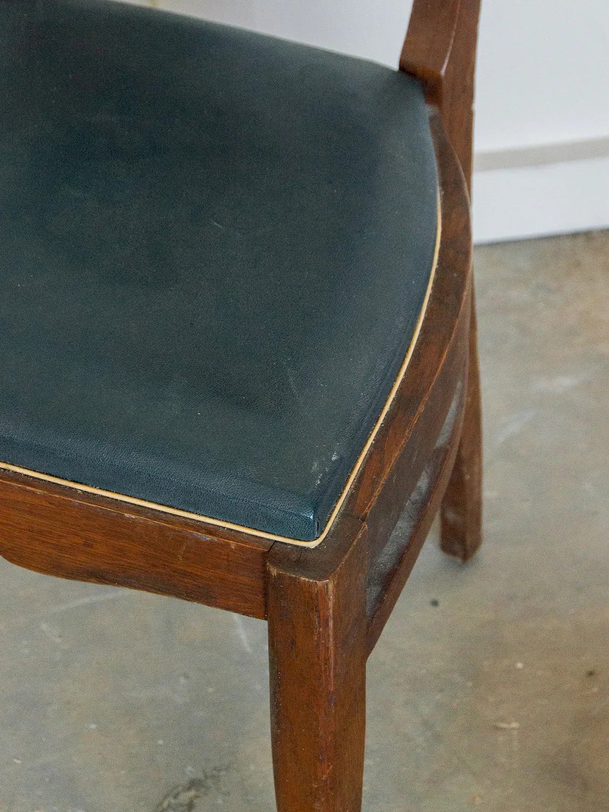 Discover this chair with a sleek and functional design. The bluish vinyl seat ensures comfort and is easy to maintain, while the dark wood structure guarantees sturdiness and stability. Its high back provides good support for added comfort in daily use. Perfect for a dining room, an office, or a reading nook, it fits all interior styles. A piece of furniture that is both practical and elegant, ideal for completing your space! Sold individually, 2 quantities are available. Length: 45 cm Height: 99 cm Seat height: 46 cm Depth: 42 cm Condition: Used: Item has been used. Item shows some superficial wear marks, ... Used: Item has been used. Item shows some superficial wear marks, fully operational and functioning correctly. It may be a demonstration model or a returned item to the store after a short period of use. Any possible imperfections. Color: Multicolor Height: Wood, Vinyl Width: Chairs Brand: Debongout Type: Thrifted product Material: Wood, Vinyl Style: Country