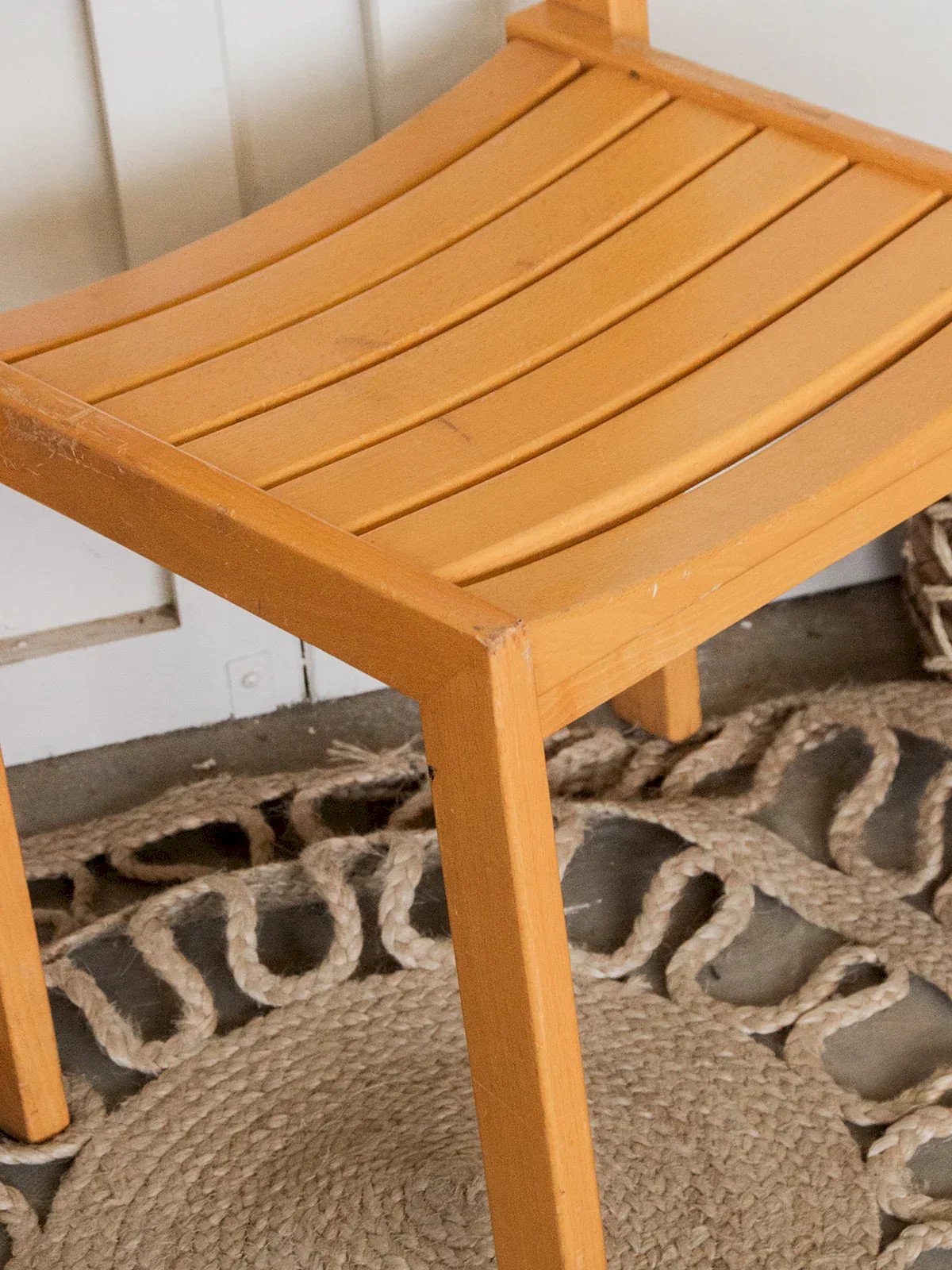 Add a sophisticated touch to your interior with this vintage solid wood chair. Its sleek design, complemented by three bars on the back, combines elegance and comfort. It fits perfectly in a dining room, an office, or even a reading nook. An ideal choice for those who appreciate the charm of vintage while staying contemporary. Sold individually, 15 units are available. Length: 49 cm Width: 43 cm Height: 82 cm Seat height: 46 cm Condition: Used: Item has been used. Item shows some superficial wear marks... Used: Item has been used. Item shows some superficial wear marks, fully operational and functioning correctly. It may be a demonstration model or an item returned to the store after a short period of use. any imperfections. Color: Multicolor Height: Wood Width: Chairs Brand: Debongout Type: Vintage product Material: Wood Style: Country