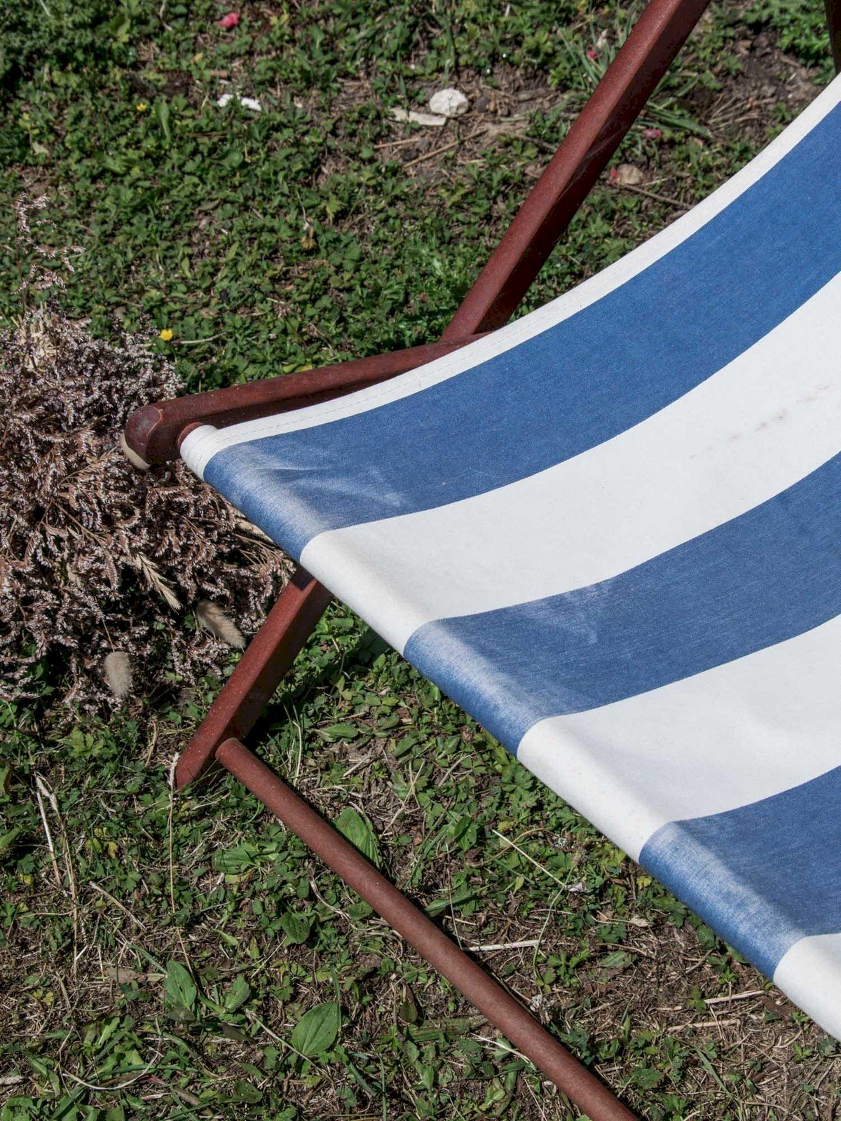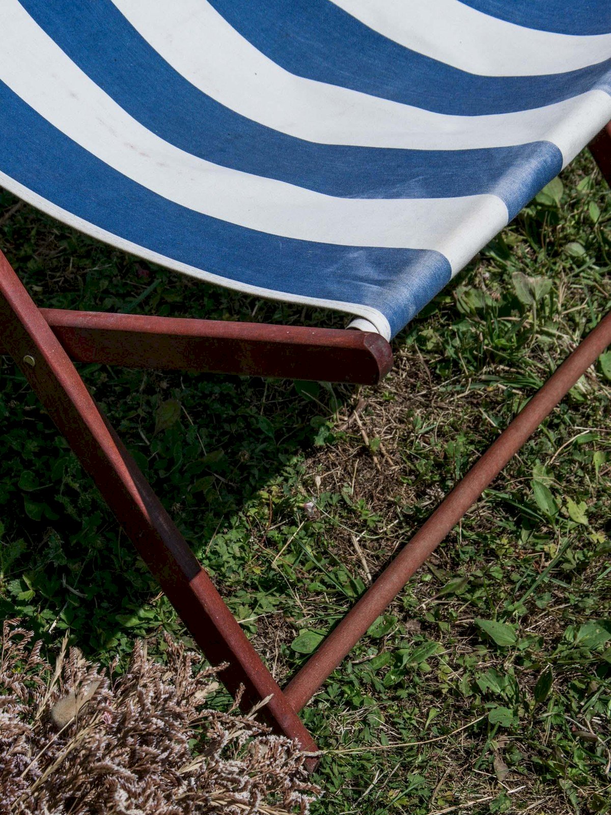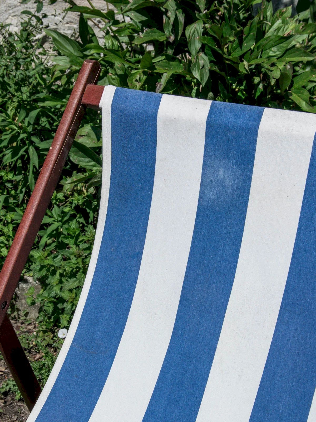 Discover a charming deck chair with a vintage look that we love. Its wooden frame and blue and white striped fabric give it a timeless appearance, perfect for lounging both indoors and outdoors. Some signs of wear and a slight crack testify to its history without compromising its comfort. A beautiful piece to adopt for stylish relaxation moments. Maximum width: 71 cm Maximum height: 95 cm Seat height: 30 cm Maximum depth: 103 cm Seat depth: 50 cm Condition: Used: An item that has been used. Item shows some signs of superficial wear... Used: An item that has been used. Item shows some signs of superficial wear, fully operational and functioning correctly. It may be a demonstration model or an item returned to the store after a short period of use. any imperfections. Color: Multicolor Height: Fabric, Wood Width: Chairs Brand: Debongout Type: Vintage product Material: Fabric, Wood Style: Contemporary